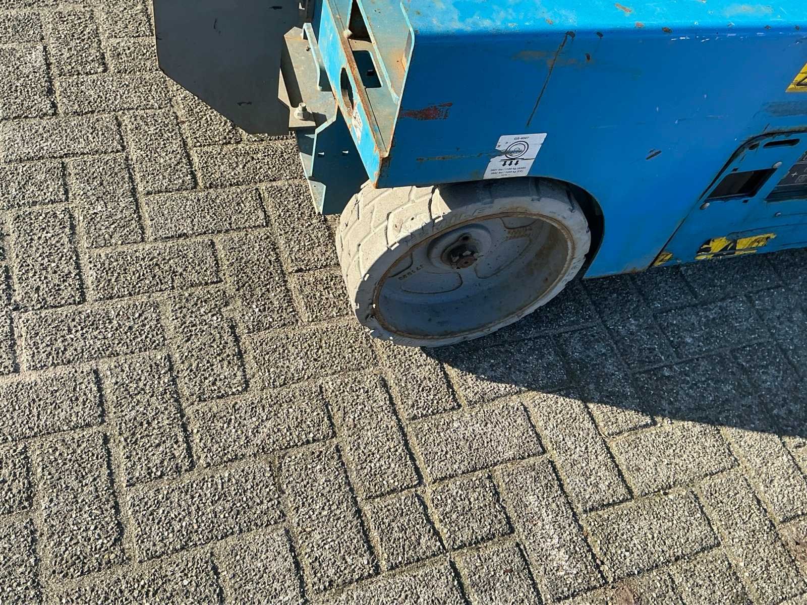 Voorzien van uitschuifbaar platform; non marking banden, geïntegreerde acculader, aansluiting 230v Merk: Genie Type: GS4047 Bouwjaar: 2018 Serienummer: GA47D-7419 Elektrisch: true Motorvermogen (kW): 3.3kW Schaarhoogwerker: true Werkhoogte: 14000mm Plateau afm. l: 2200mm Plateau afm. b: 1150mm Platform capaciteit: 350kg Afgelezen urenstand: 358 Eigen gewicht: 3306kg Totale afmeting L: 2500mm Totale afmeting Breedte: 1200mm Totale afmeting Hoogte: 2500mm