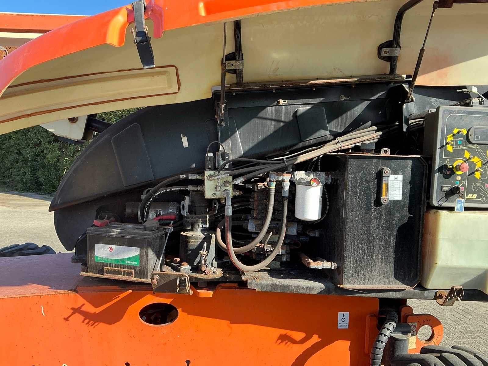 Voorzien van 4-cilinder “Deutz” dieselmotor (49PK); 2 wiel aandrijving; bandenmaat 39X15-22.5; transport afmetingen circa. 1030x250x270 cm Merk: JLG Type: 660SJ Bouwjaar: 2014 Serienummer: 0300179822 Diesel: true Telescoop hoogwerker: true Werkhoogte: 20000mm Plateau afm. l: 1800mm Plateau afm. b: 900mm Platform capaciteit: 230kg Afgelezen urenstand: 4068 Eigen gewicht: 12500kg