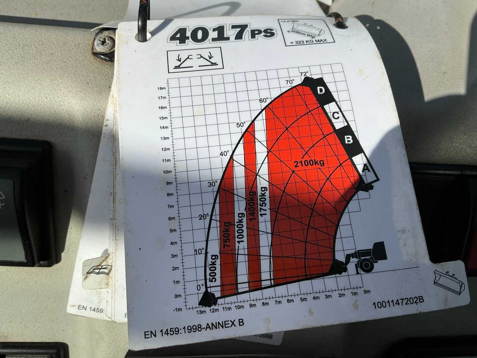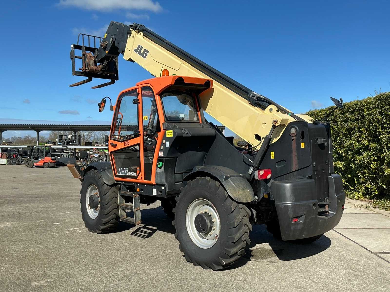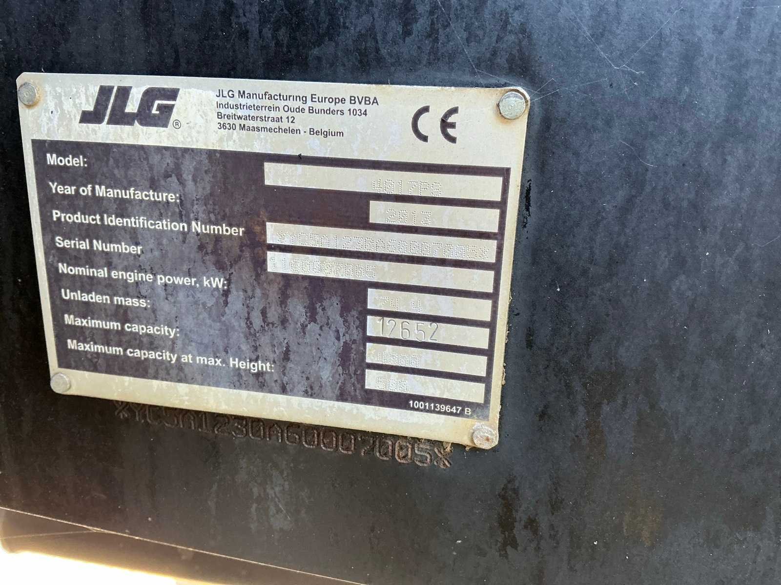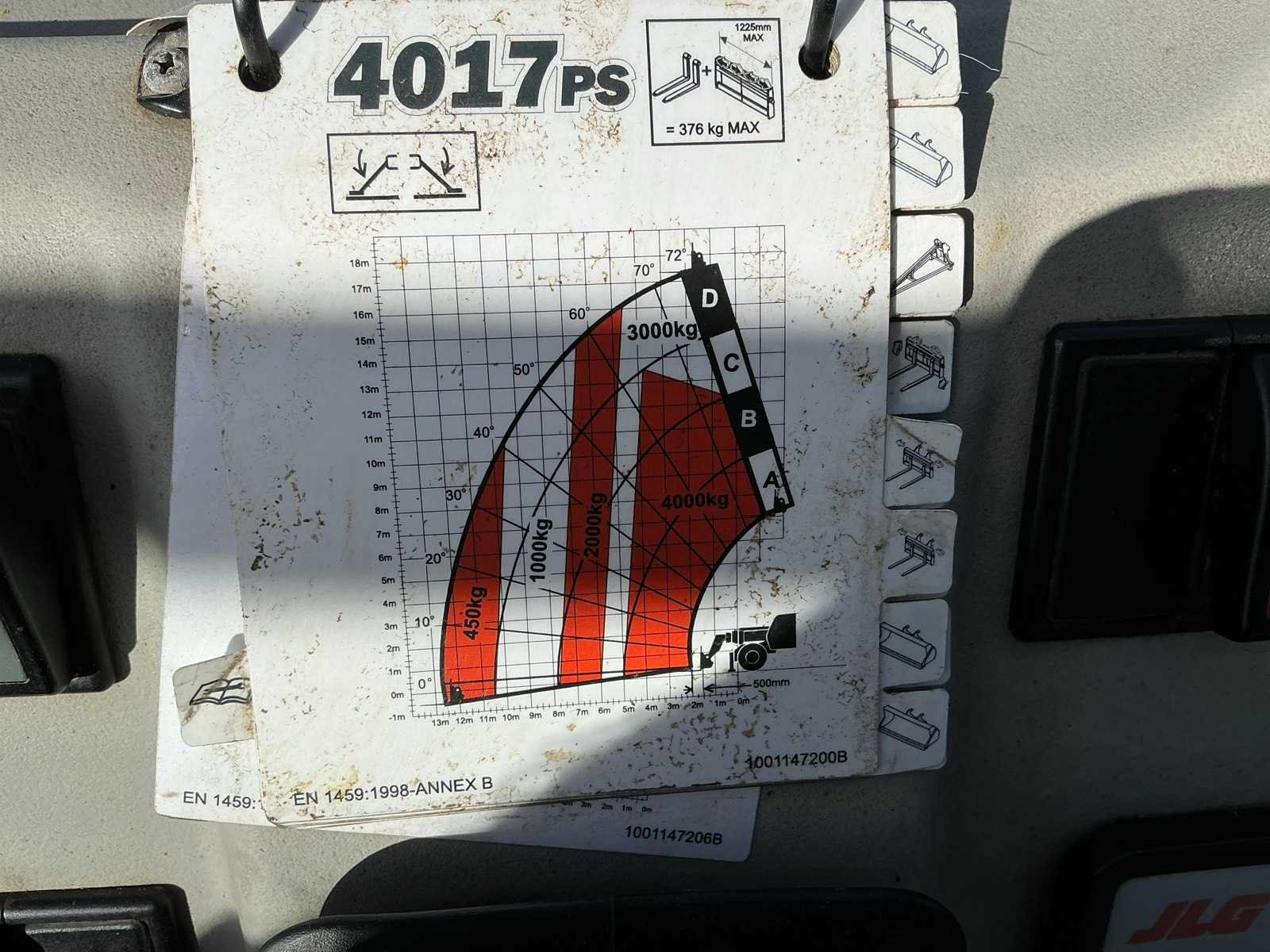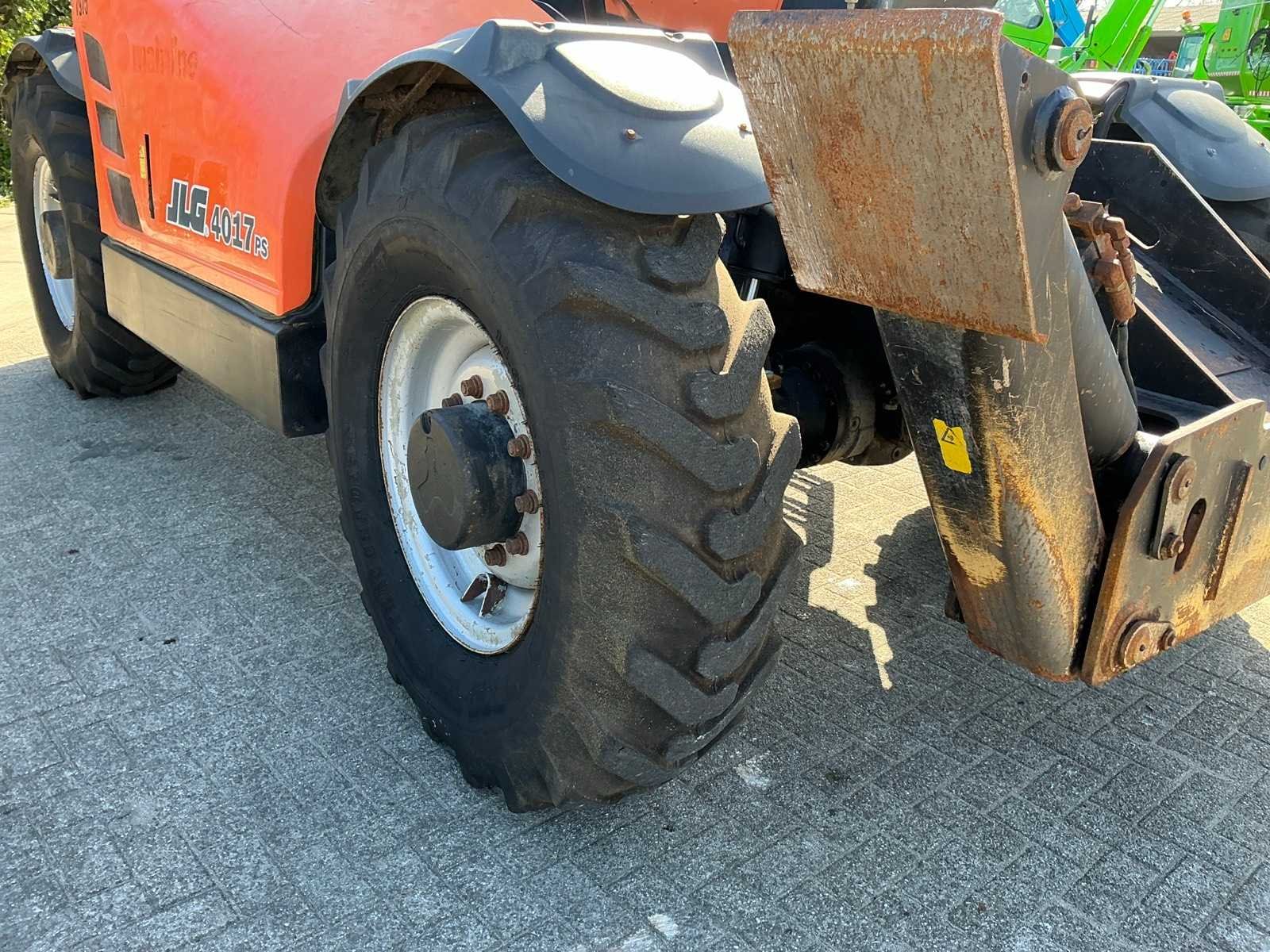 Voorzien van Deutz 4 cilinder Turbodiesel motor, extra hydraulische aansluiting, bandenmaat 14.00-24IND BKT, geen kentekenregistratie Merk: JLG Type: 4017ps Bouwjaar: 2013 Serienummer: YD5A1230A60007005 Kenteken: Geen registratie Motorvermogen (kW): 74kW Vierwielaandrijving 4x4: true Luchtbanden: true Afgelezen urenstand: 5105 Eigen gewicht: 13000kg Totale afmeting L: 8500mm Totale afmeting Breedte: 2500mm Totale afmeting Hoogte: 3050mm
