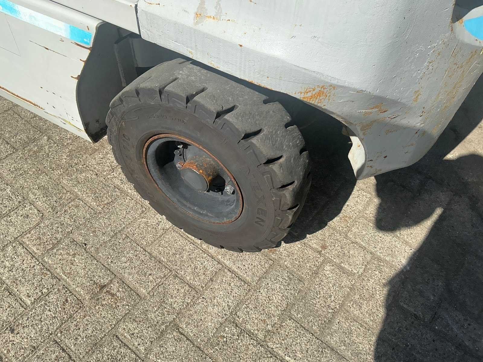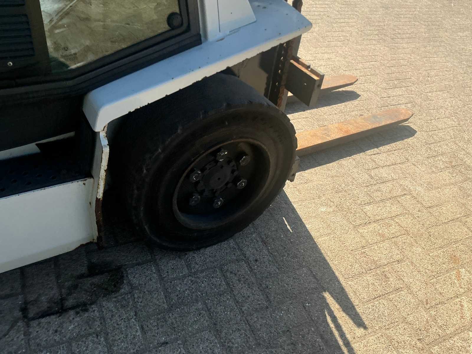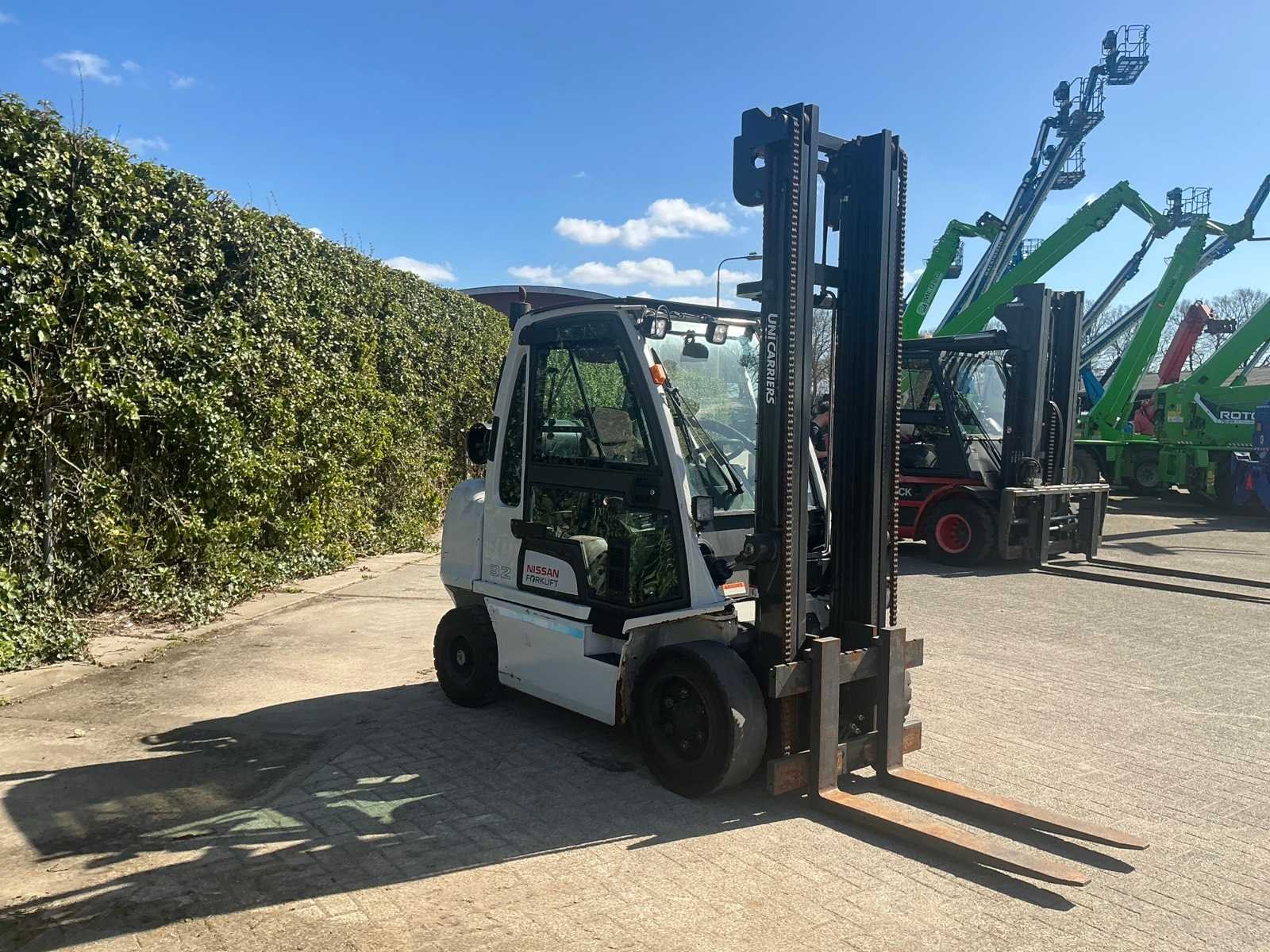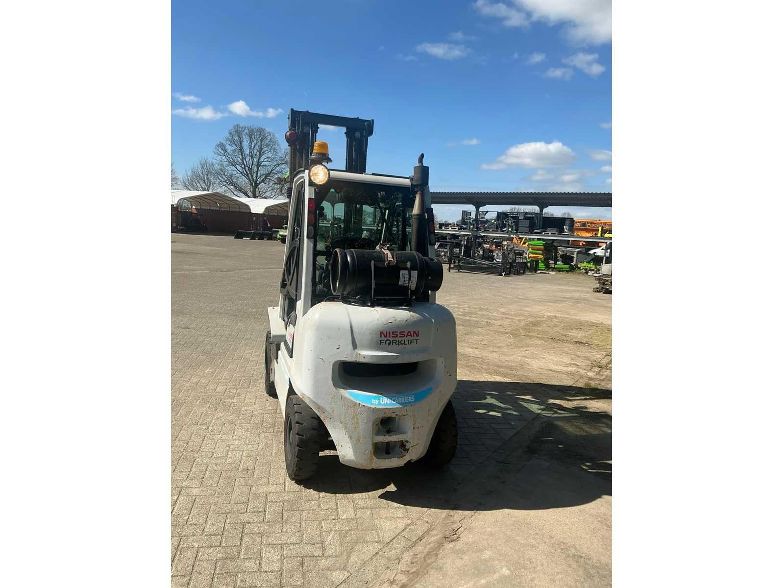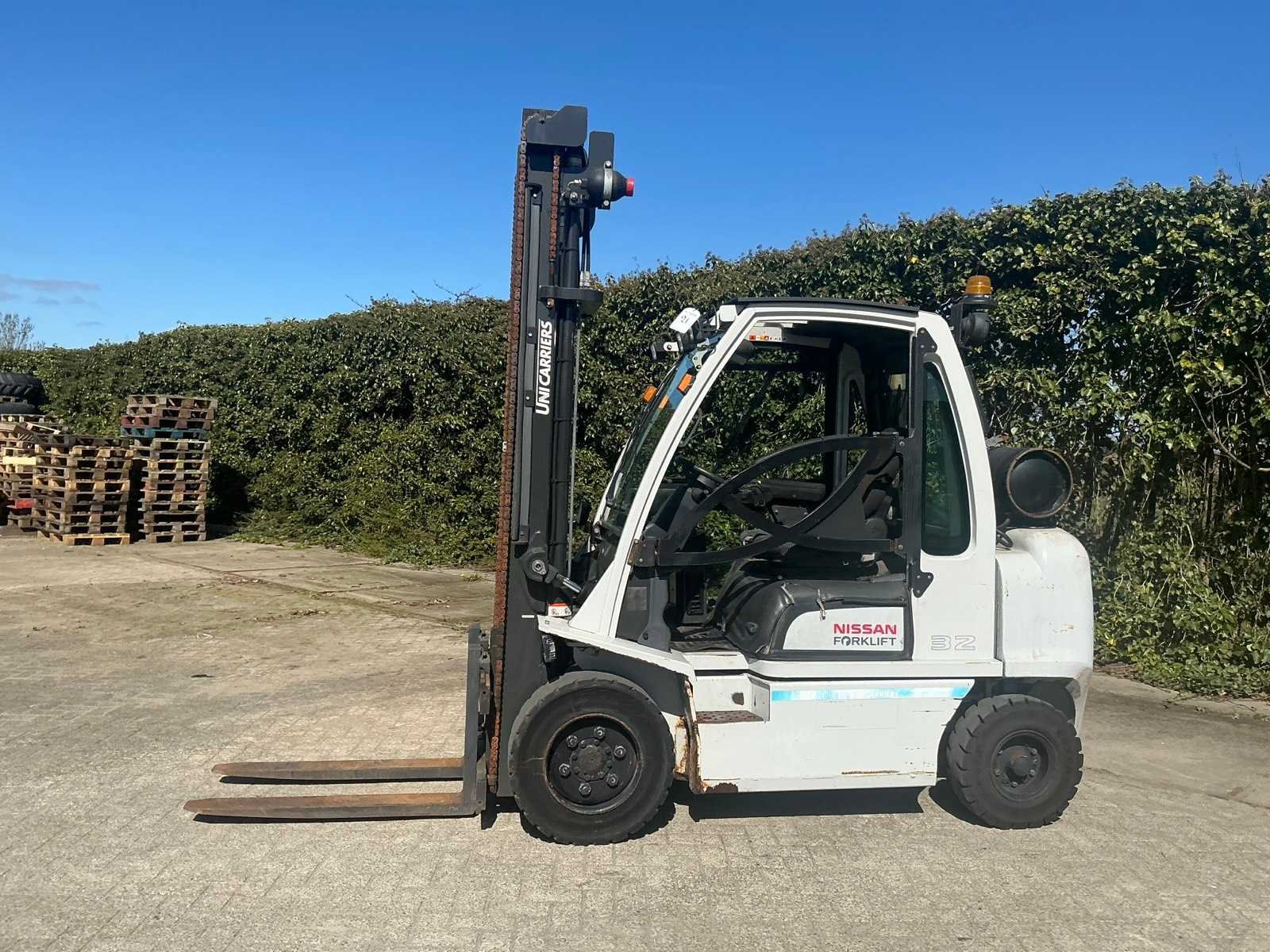 Urenstand onbekend, voorzien extra hydraulische functies Merk: Nissan/ Unicarriers Type: UG1D2A32LQ Bouwjaar: 2015 Serienummer: UG1D2E701378 Brandstof: LPG Mast: Duplex Soort band: Volrubber banden Aantal wielen: 4 Eigen gewicht: 4800kg Hefvermogen: 3200kg Lepellengte: 1050mm Max. hefhoogte: 4500mm Minimale doorrijhoogte: 2930mm Totale afmeting L: 4000mm Totale afmeting Breedte: 1250mm Totale afmeting Hoogte: 2900mm