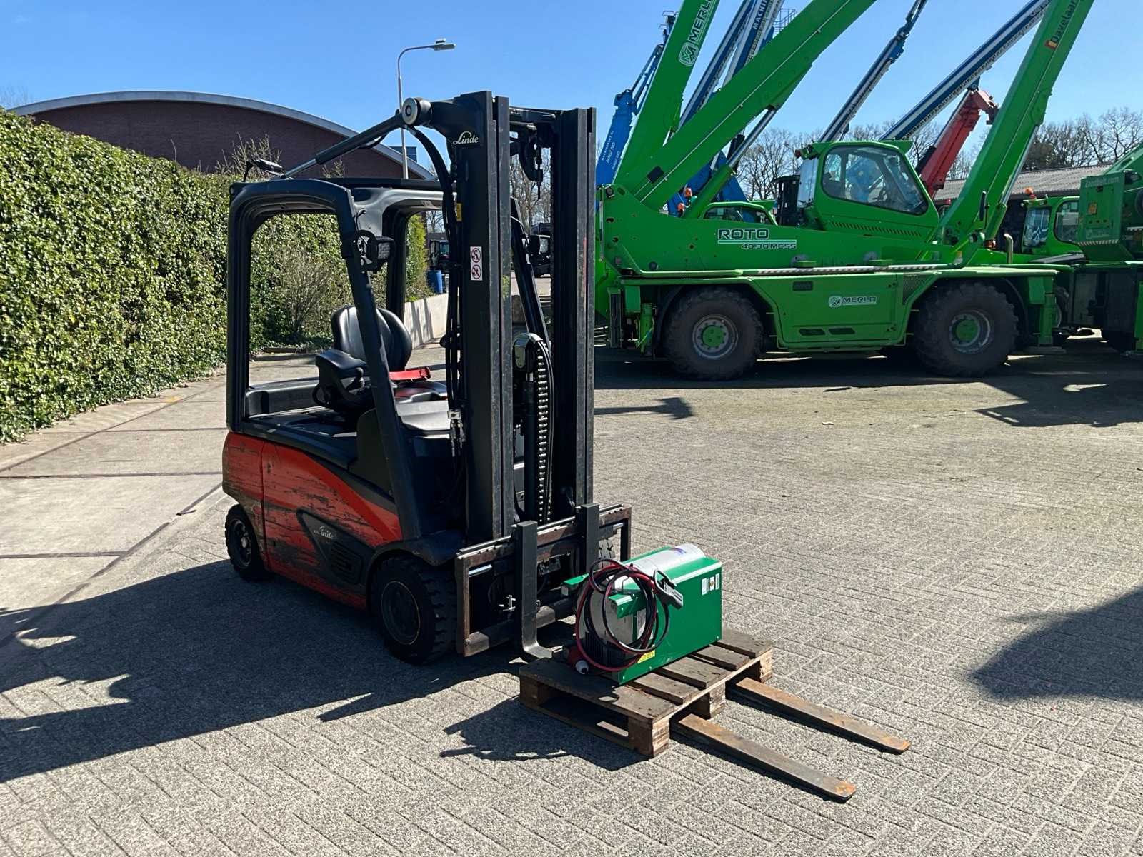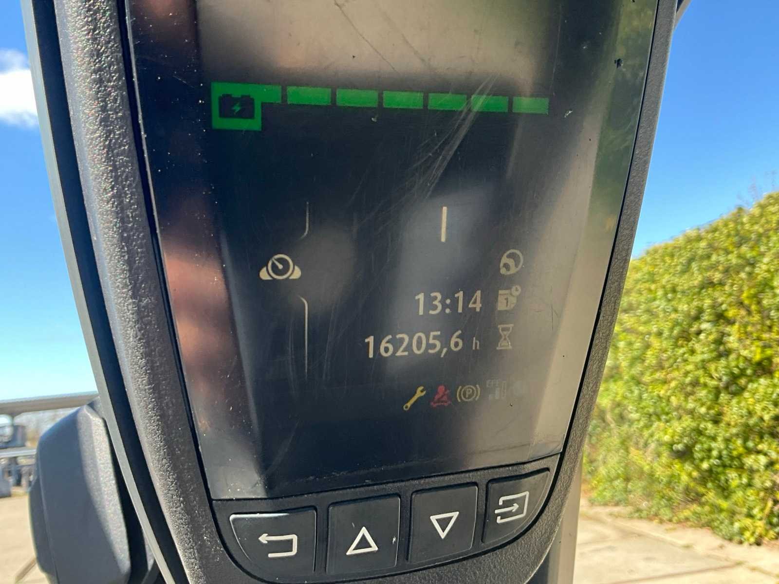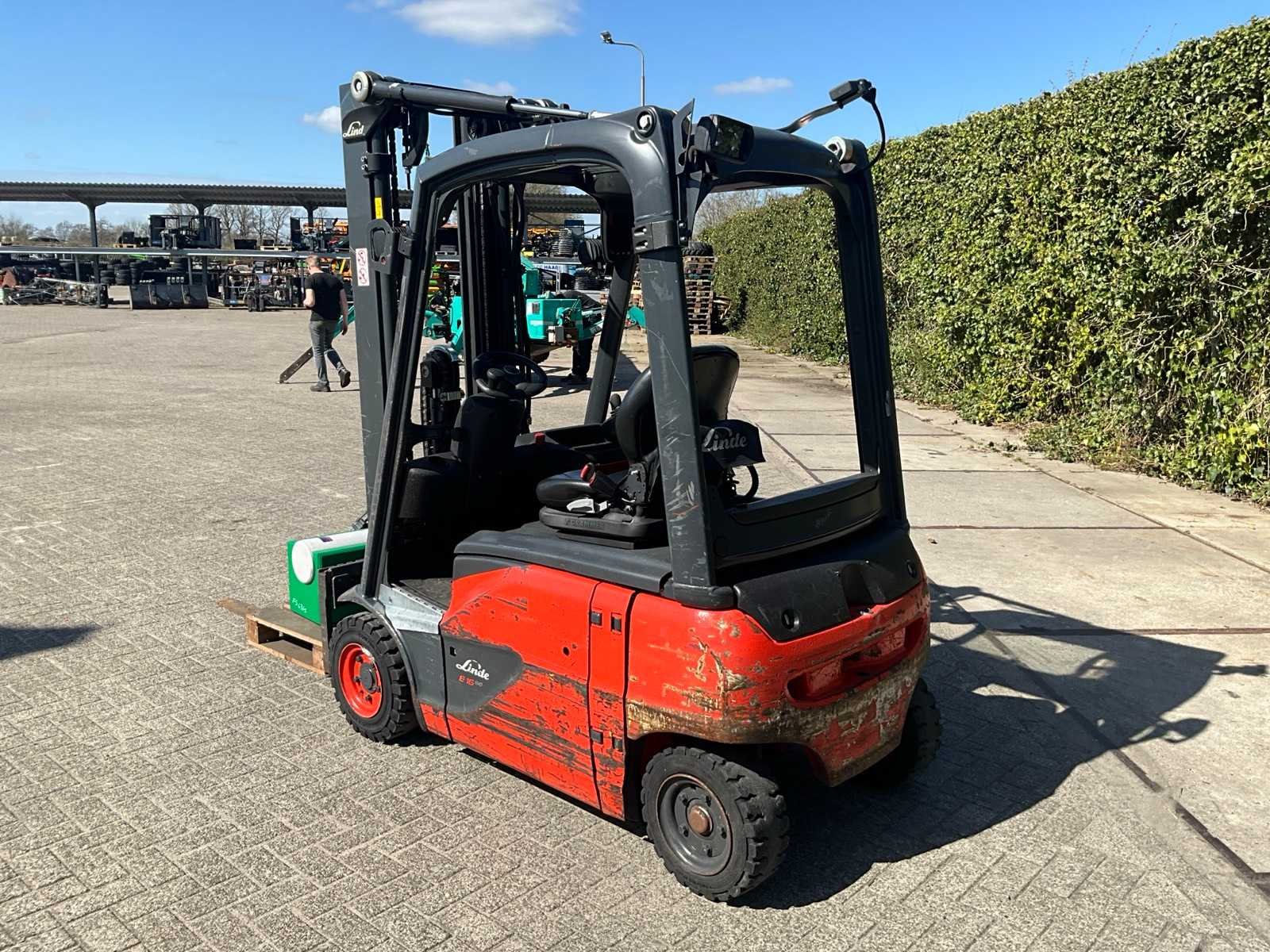 Voorzien van werklampen; acculader en digitale uitlezing Merk: Linde Type: E16P-02 Bouwjaar: 2019 Serienummer: H2X386V08737 Brandstof: Elektrisch Kenteken: Geen registratie Mast: Triple Soort band: Volrubber banden Aantal wielen: 4 Afgelezen urenstand: 16206 Accu lader: true Free-lift: true Side-shift: true Triple mast: true Eigen gewicht: 3409kg Hefvermogen: 1600kg Lepellengte: 1380mm Hefhoogte: 4965mm Vol rubber banden: true Minimale doorrijhoogte: 2250mm Totale afmeting L: 3500mm Totale afmeting Breedte: 1100mm Totale afmeting Hoogte: 2250mm