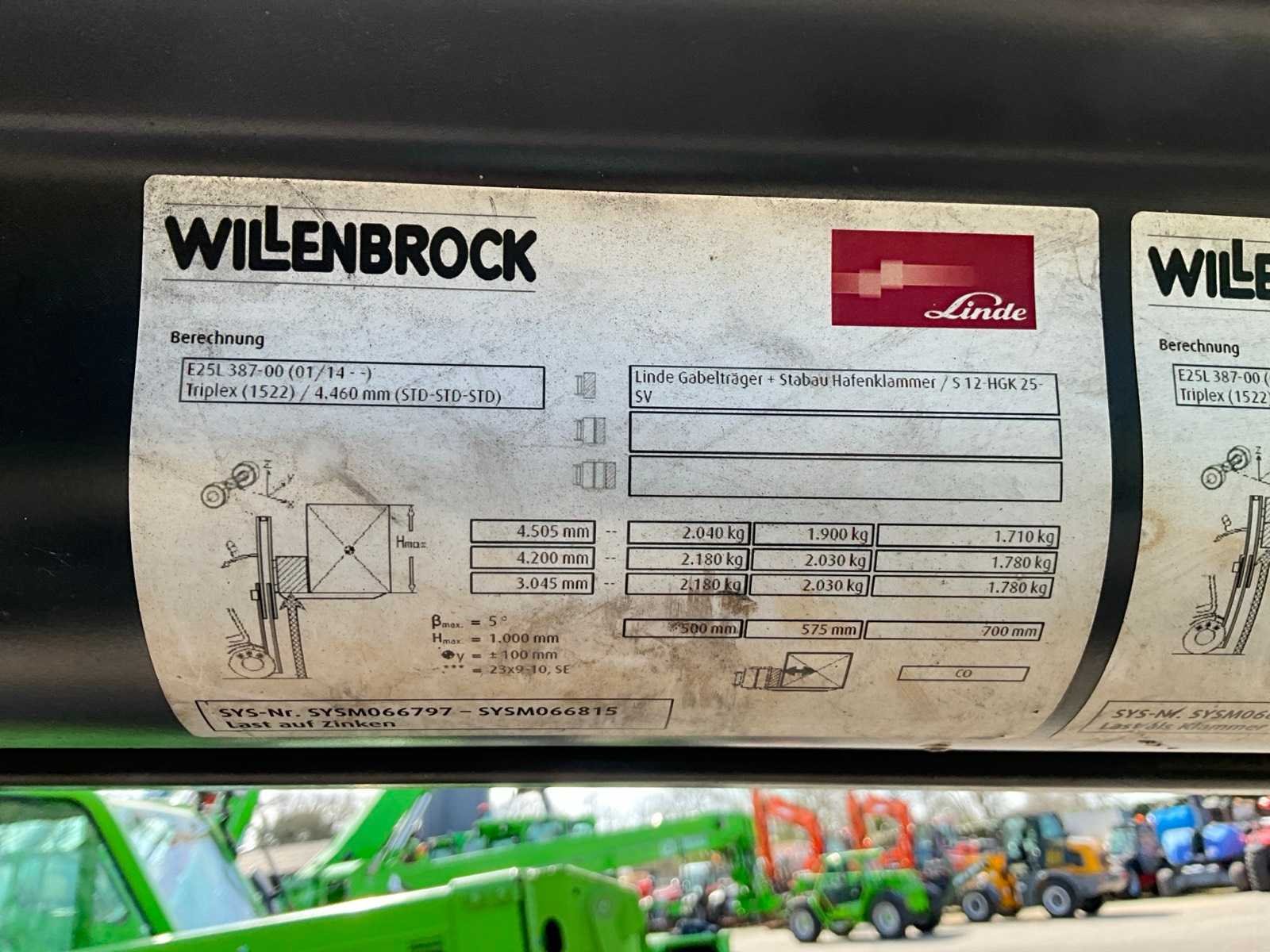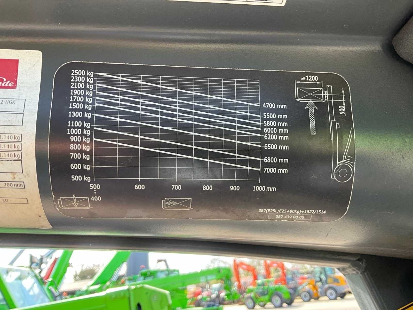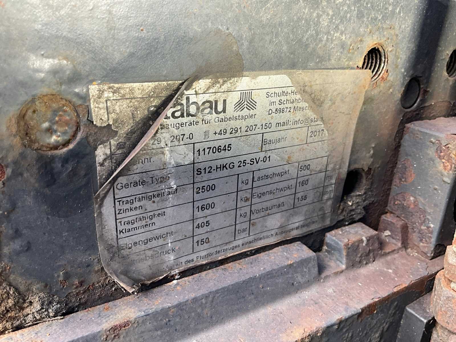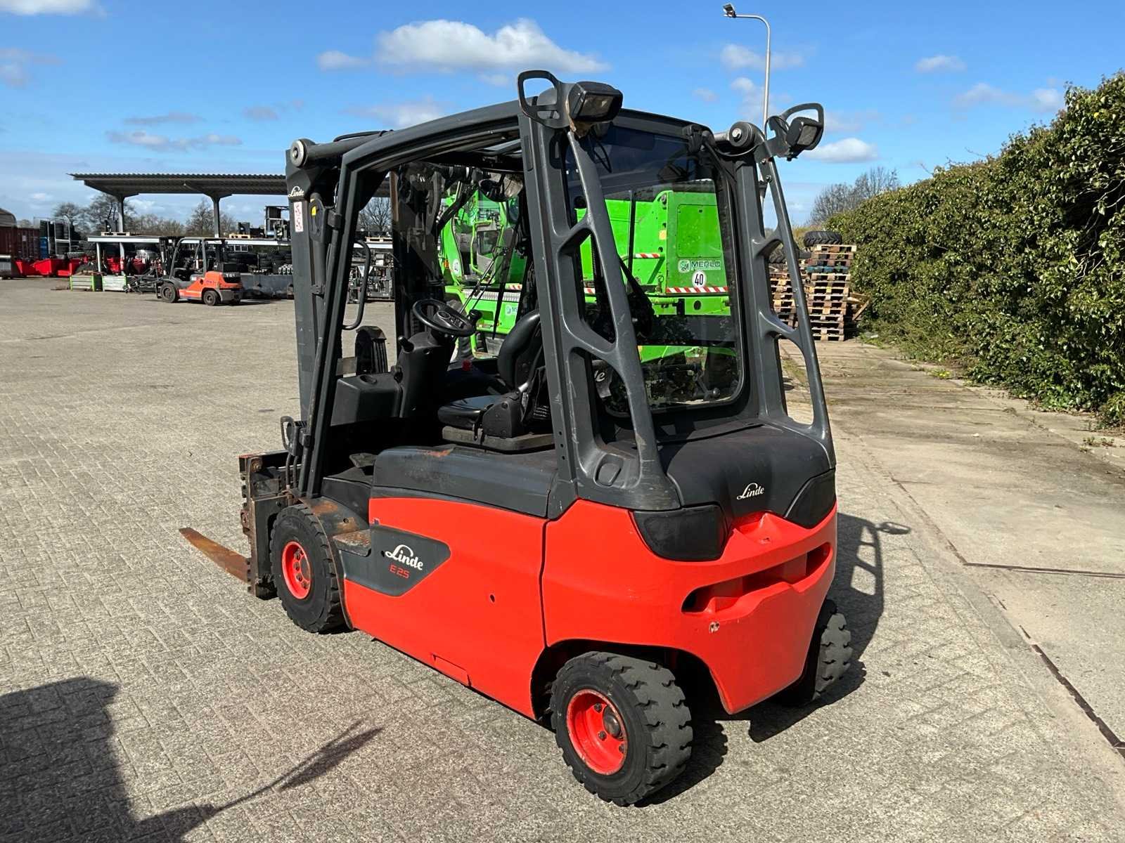 Voorzien van “Stabau” S12-HKG vorkenbord met hydraulisch verstelbare lepels tot 185 cm breed; geïntegreerde acculader 380V; ruitenwissers en werklampen Merk: Linde Type: E25L-01 Bouwjaar: 2017 Serienummer: H2X387H03118 Brandstof: Elektrisch Mast: Triple Soort band: Volrubber banden Aantal wielen: 4 Afgelezen urenstand: 5980 Free-lift: true Side-shift: true Hydraulisch verstelbare lepels: true Duplex mast: true Eigen gewicht: 4596kg Hefvermogen: 2500kg Lepellengte: 1150mm Hefhoogte: 4505mm Totale afmeting L: 3800mm Totale afmeting Breedte: 1250mm Totale afmeting Hoogte: 2150mm