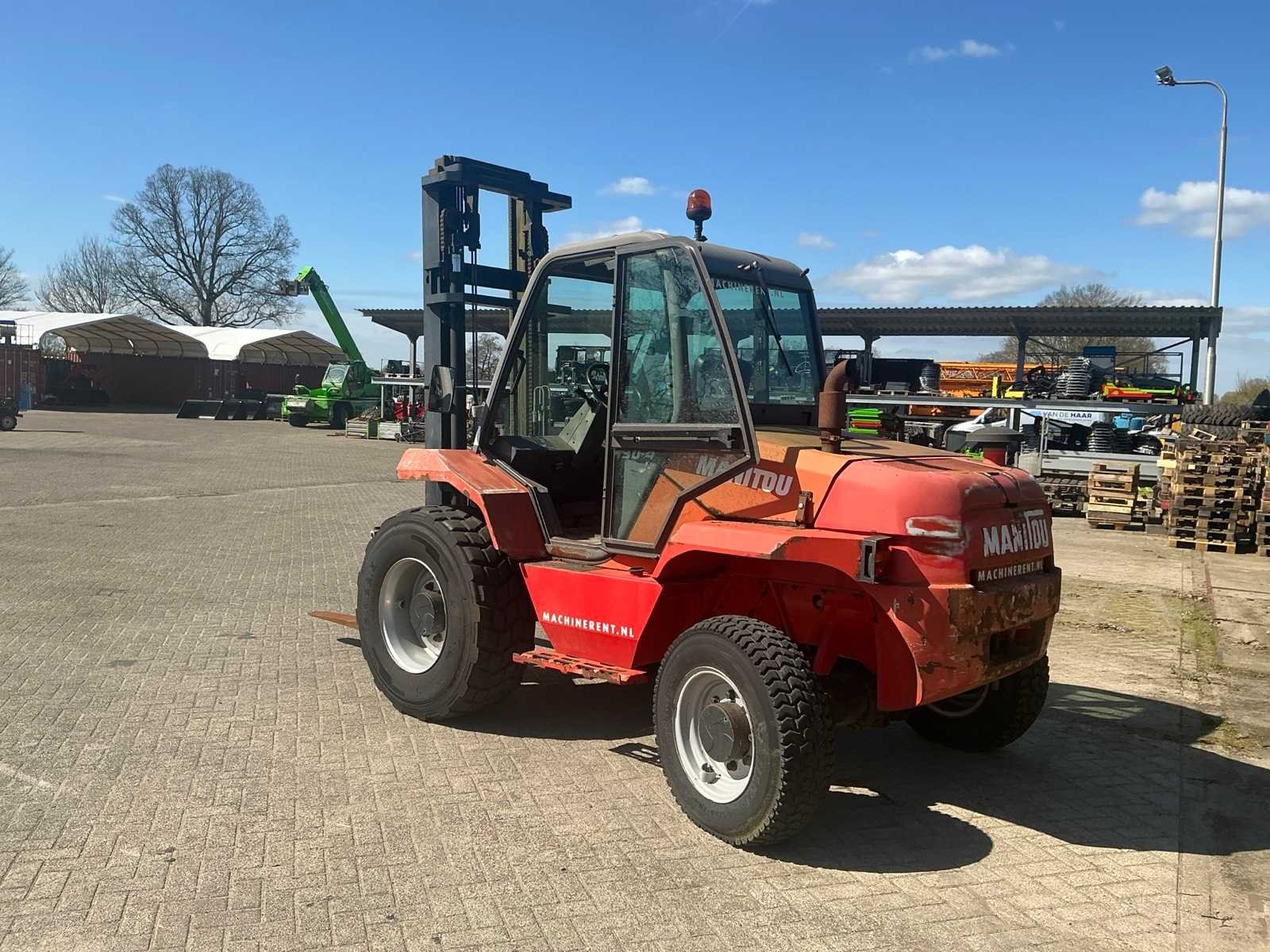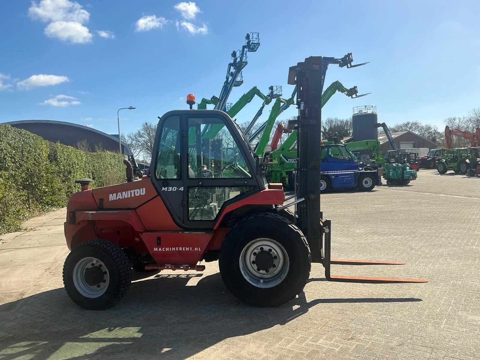 Merk: Manitou Type: M30-4 Bouwjaar: 2008 Serienummer: 244950 Brandstof: Diesel Mast: Triple Aantal wielen: 4 Afgelezen urenstand: 103628 Ruw terrein: true Eigen gewicht: 6300kg Hefvermogen: 3000kg Lepellengte: 1180mm Hefhoogte: 4000mm Minimale doorrijhoogte: 3000mm Totale afmeting L: 5300mm Totale afmeting Breedte: 2150mm Totale afmeting Hoogte: 3050mm