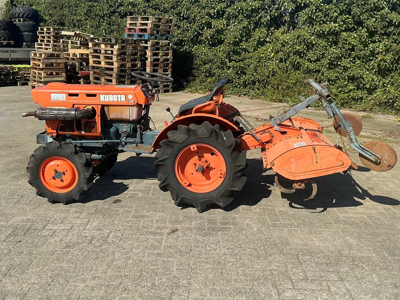 Geen kentekenregistratie Merk: Kubota Type: B7001 Versnellingsbaktype: Handgeschakeld Bandenmaat voor: 5.00-12 Bandenmaat achter: 8-16 Totale afmeting L: 3200mm Totale afmeting Breedte: 1250mm Totale afmeting Hoogte: 1300mm