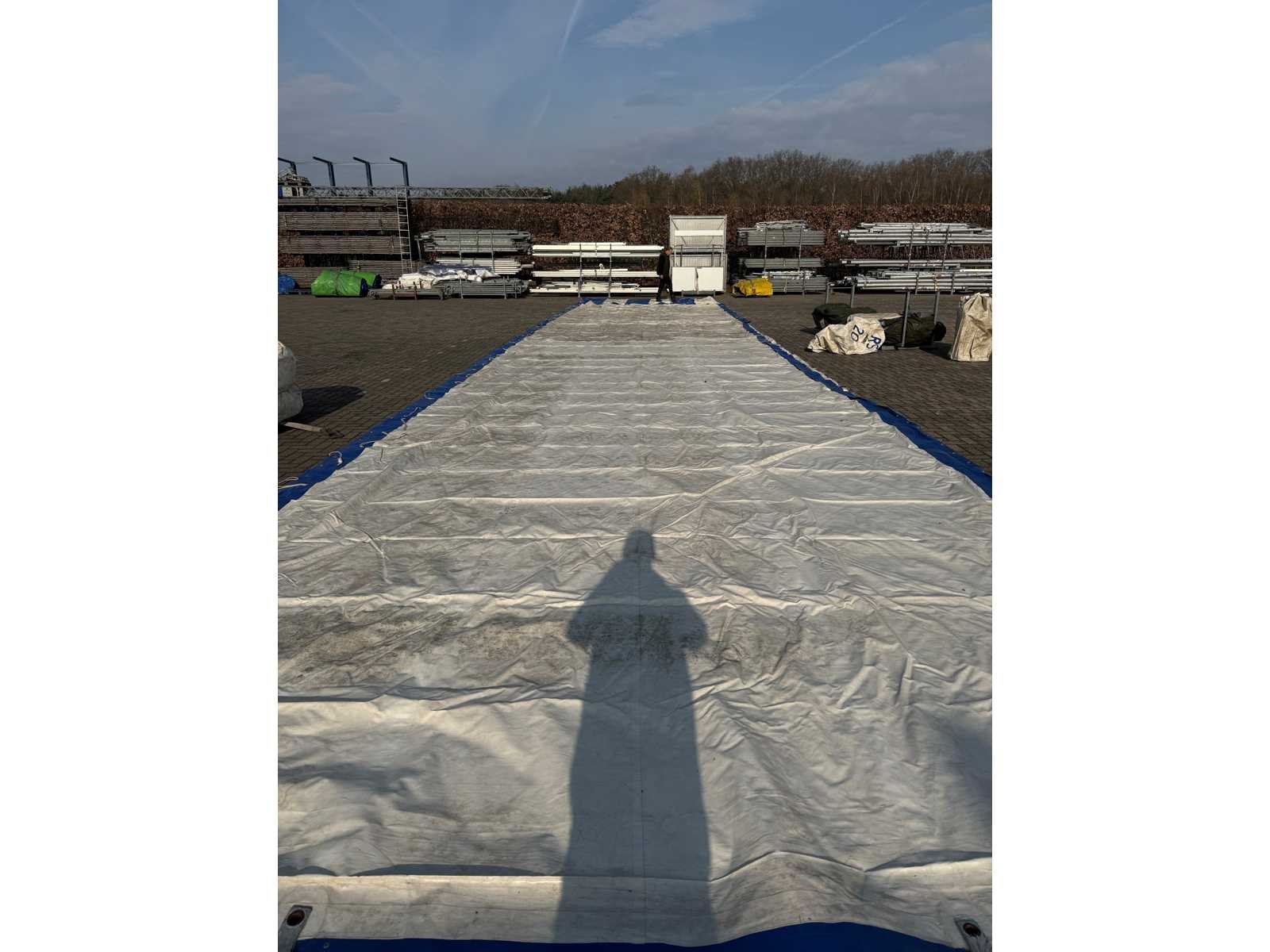 Zeil voor opslagtent 20x45 / 900m2. Het betreft hier alleen de zeilen, dus zonder constructie; Zeil is geschikt voor opbouw in de volgende maten: 20x20 20x25 20x30 20x35 20x40 20x45 ; Tent bestaat uit: 2x kopset (2x5m= 10m) 8x tussendeel (7x5m= 35m) Tent heeft een nokhoogte van 7m en een zijhoogte van 2,50m; Tent is voorzien van Tentboek met constructie berekening en Brandcertificaat en word meegeleverd op USB stick.