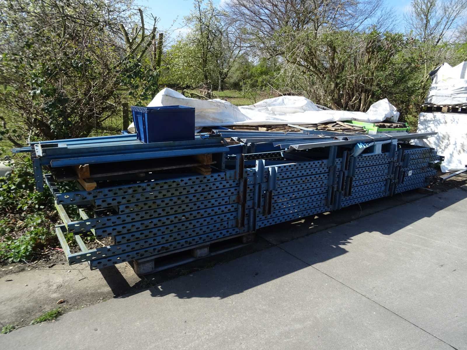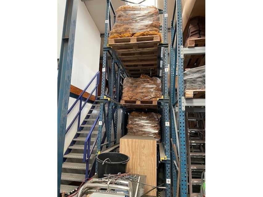 Bestaande uit 8 staanders 508x67cm, 6x geleiderails ca 250cm, 6x geleiderails ca 120cm, 15x verbindingstuk 140cm