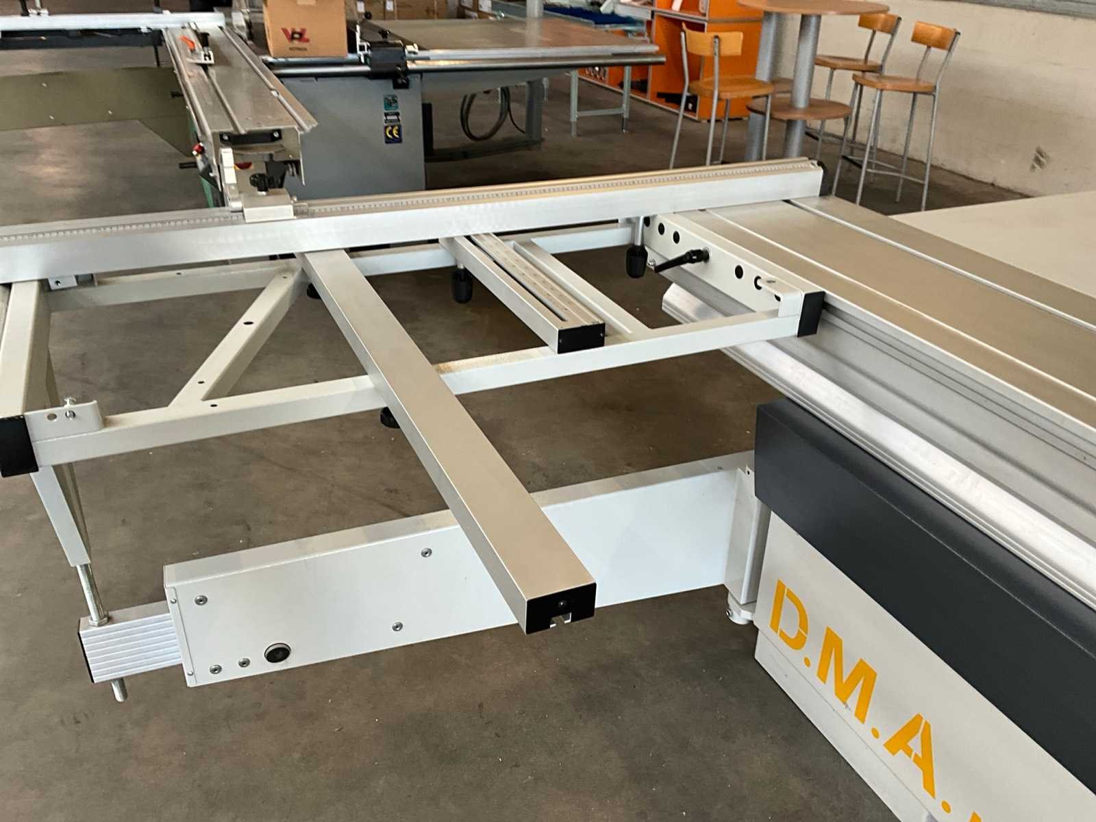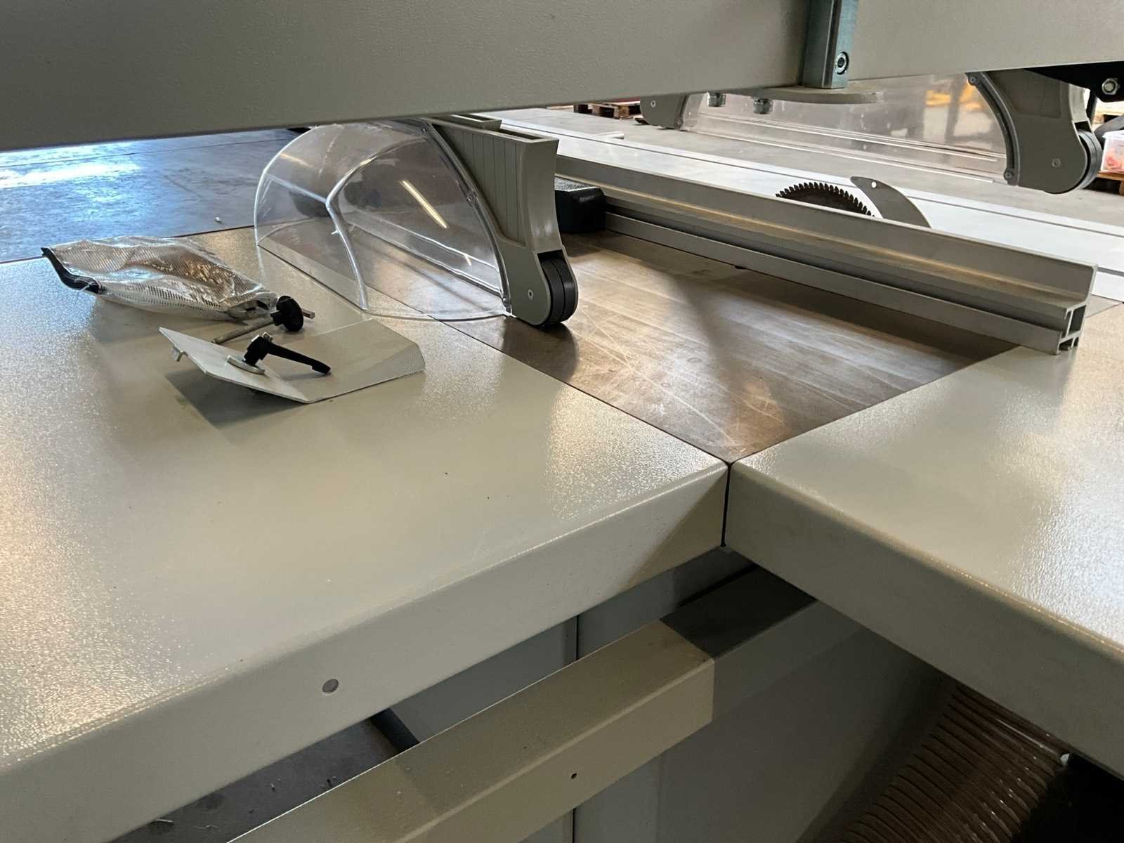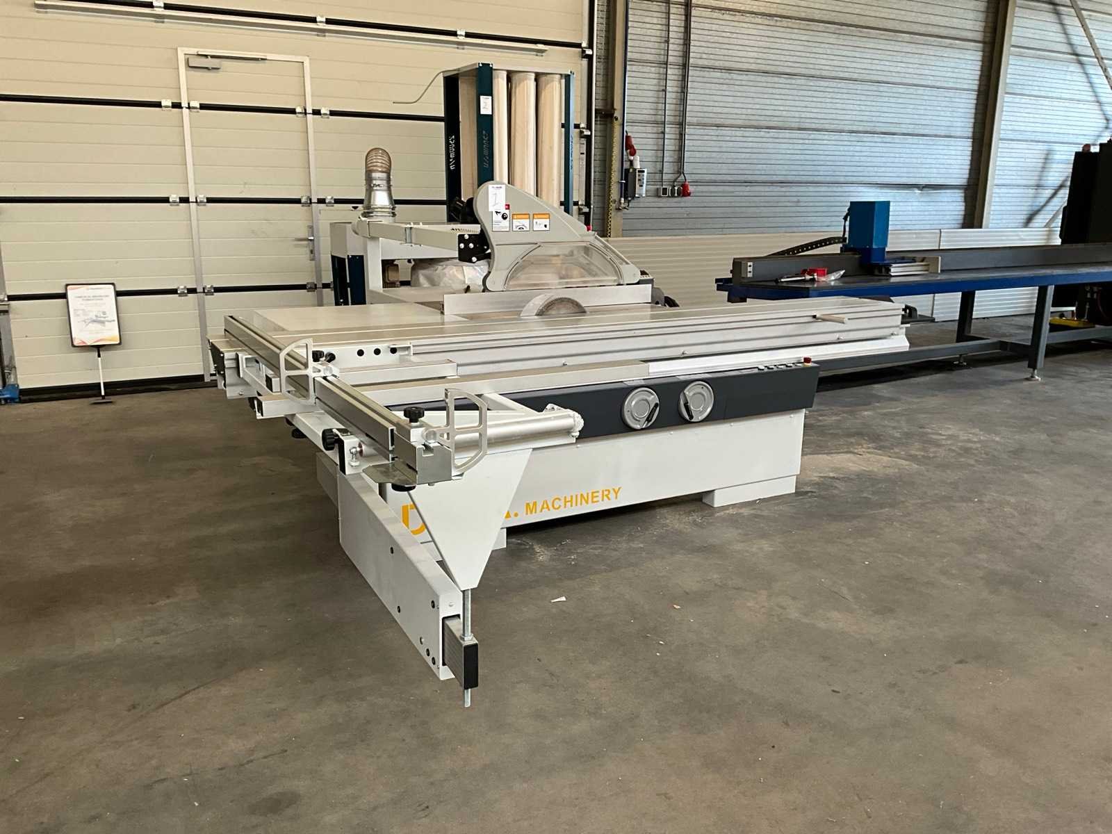 Voorzien van TSUN MG10L digitale lengte uitleesapparaat, stof afzuig kappen, inclusief flexibele stof afzuigslang, Merk: OAV Type: P405M Bouwjaar: 2024 Serienummer: 2401001PS4EM Lengte geleidetafel: 3200mm Zaagblad Ø: 300mm Schuinstelbereik max.: 45° Aantal snelheden: 3 Snelheid van n =: 3000rpm Snelheid tot n =: 5000rpm Motorvermogen (kW): 5.5kW Aansluiting: 400V Afmeting l: 3200mm Afmeting b: 3700mm Afmeting h: 1500mm