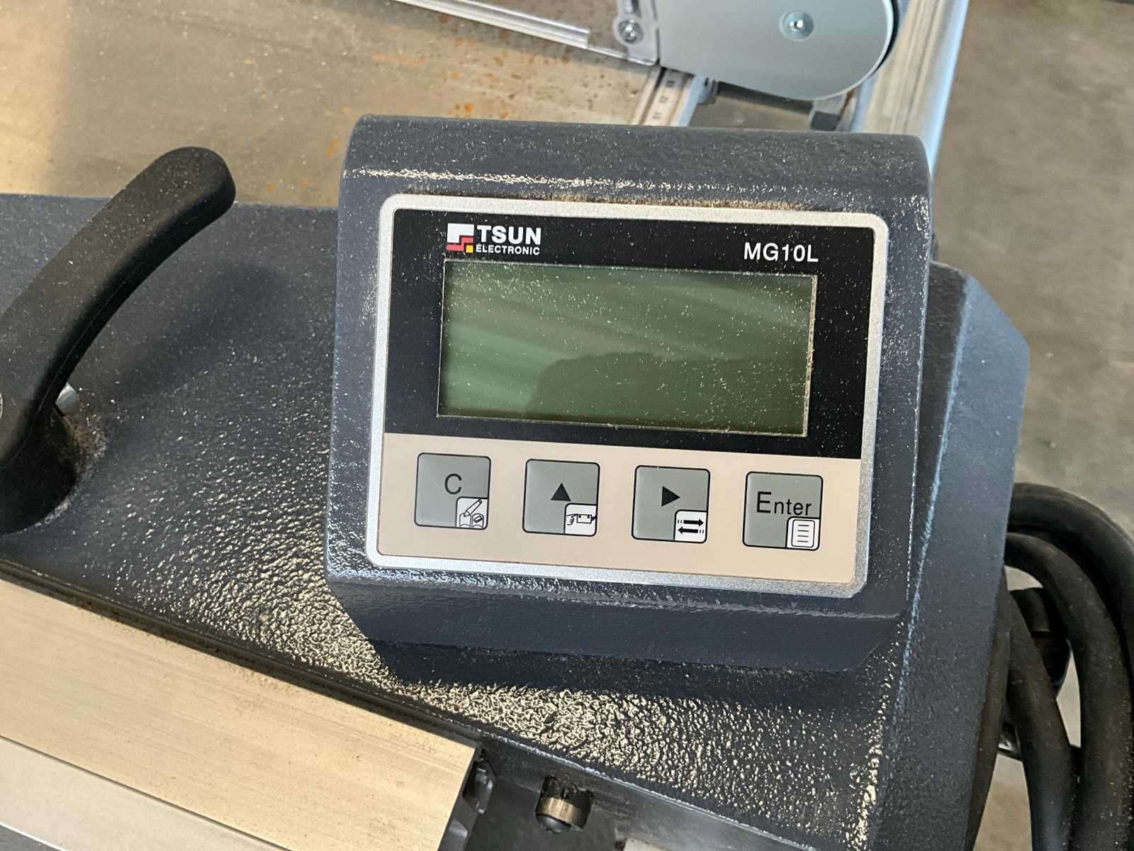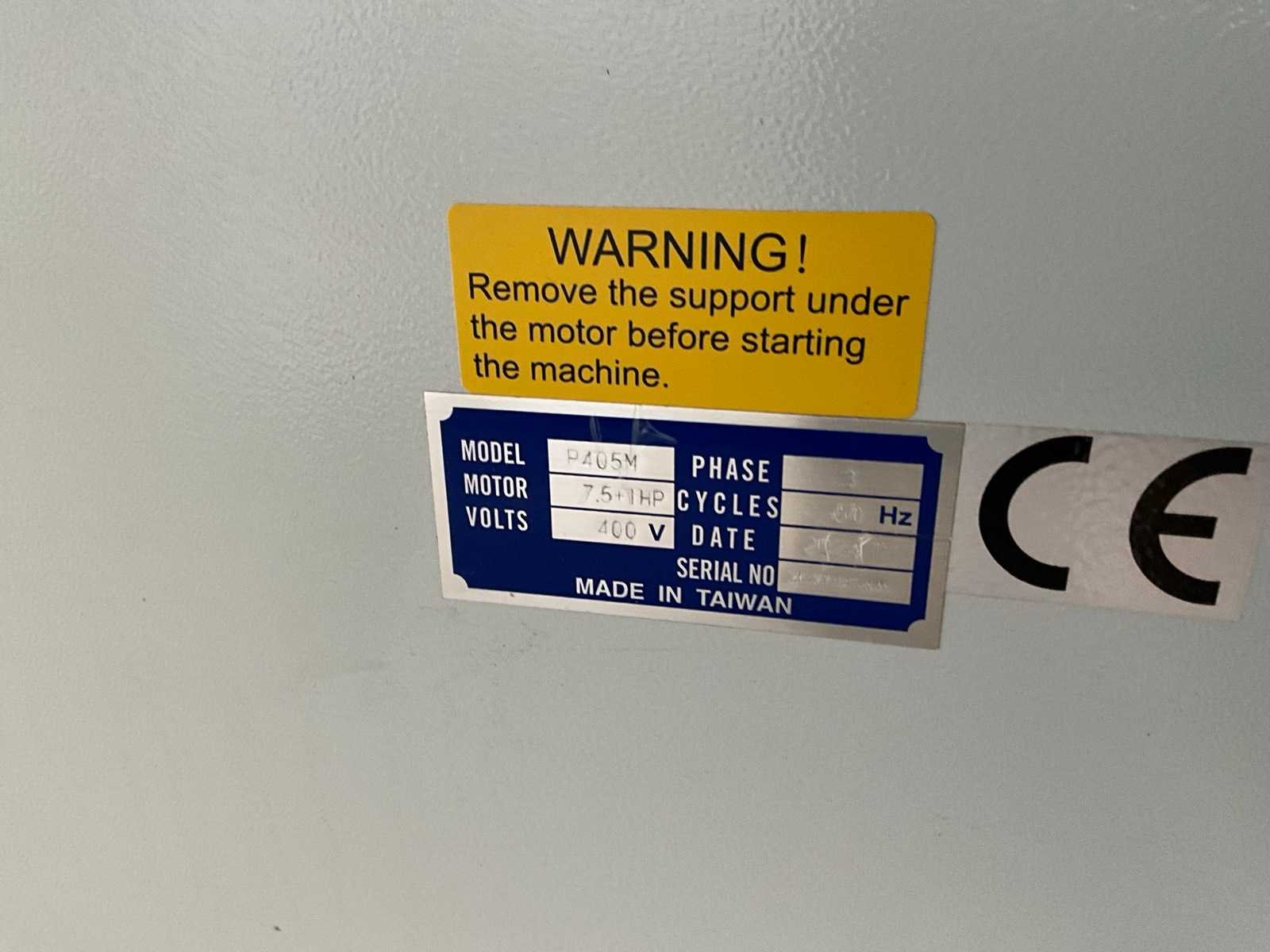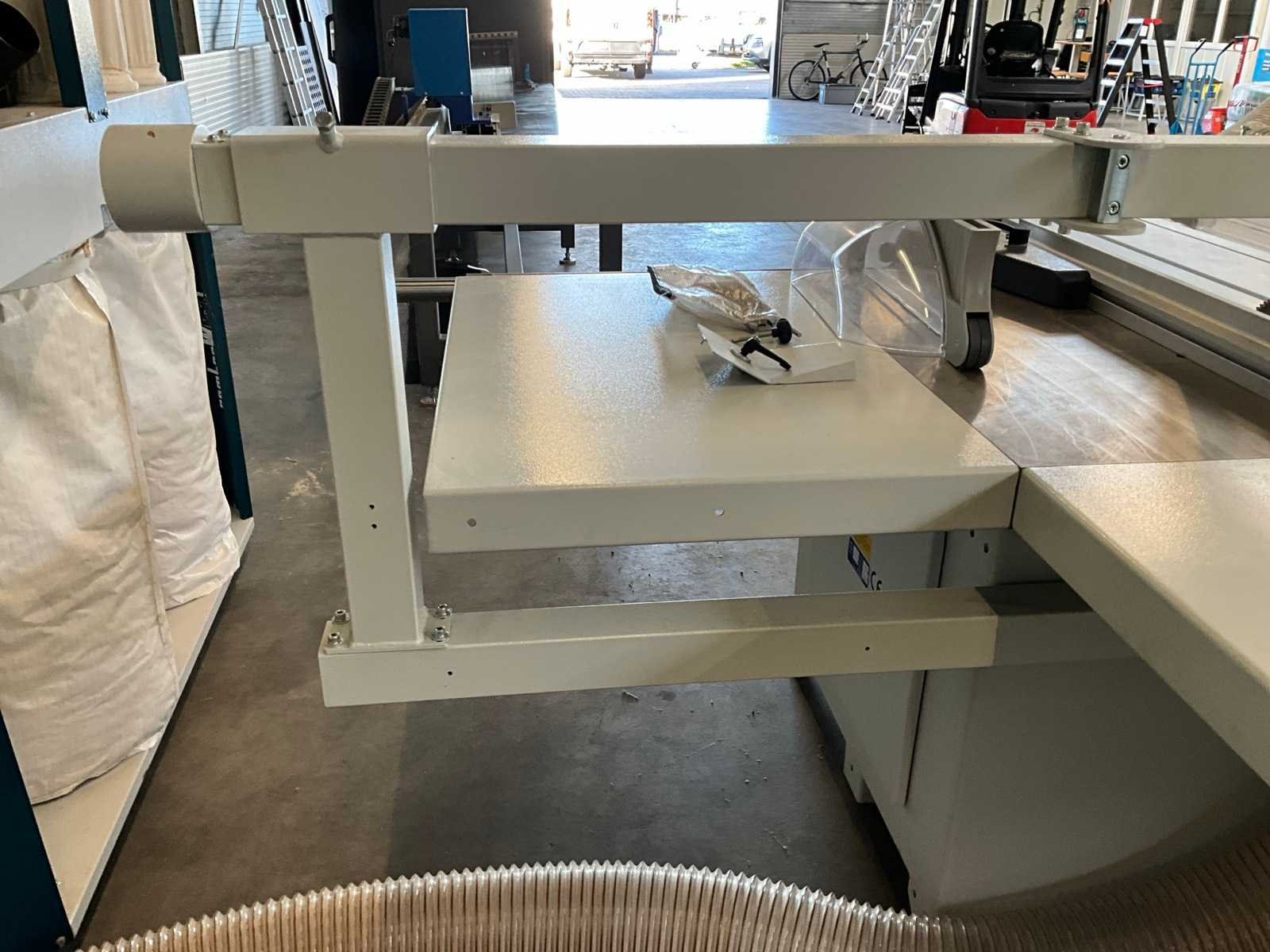 Voorzien van TSUN MG10L digitale lengte uitleesapparaat, stof afzuig kappen, inclusief flexibele stof afzuigslang, Merk: OAV Type: P405M Bouwjaar: 2024 Serienummer: 2401001PS4EM Lengte geleidetafel: 3200mm Zaagblad Ø: 300mm Schuinstelbereik max.: 45° Aantal snelheden: 3 Snelheid van n =: 3000rpm Snelheid tot n =: 5000rpm Motorvermogen (kW): 5.5kW Aansluiting: 400V Afmeting l: 3200mm Afmeting b: 3700mm Afmeting h: 1500mm