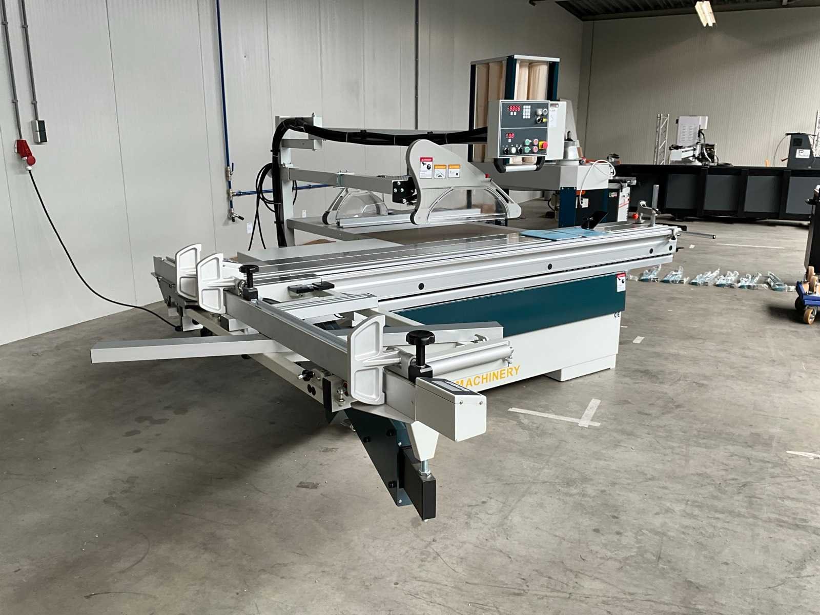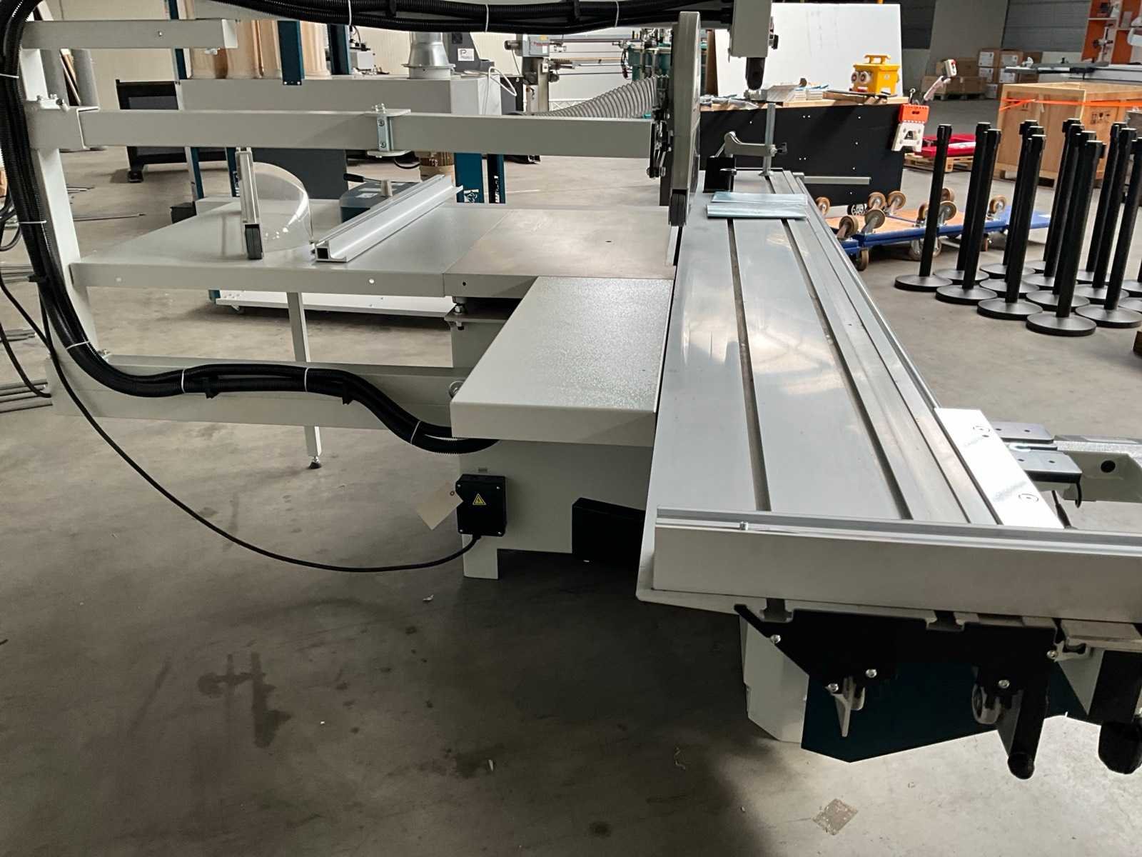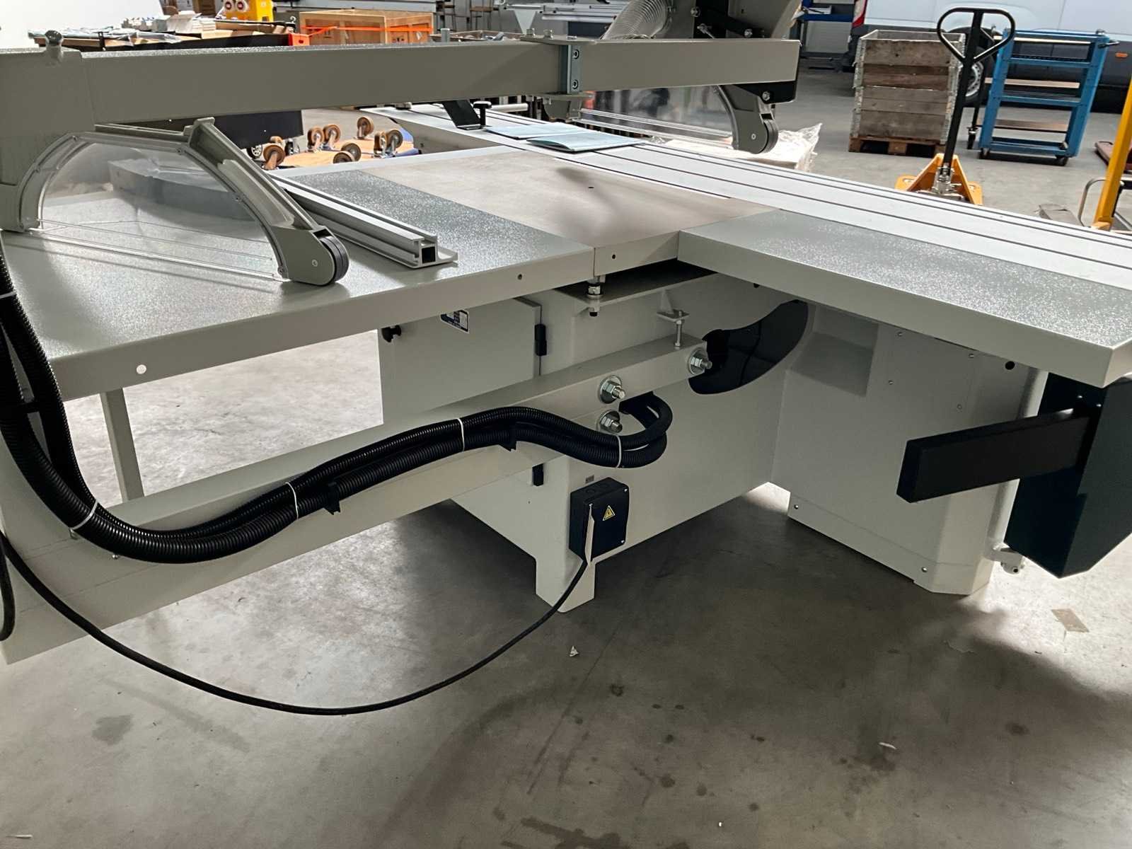 Glijtafel 3200x395 mm, voorzien van bedieningspaneel, handleiding, digitale maat aanduiding, elektrische verstelbare achter aanslag, Merk: OAV Type: A405A/NC Bouwjaar: 2023 Serienummer: 2309467A5A5 Schuinstelbereik max.: 45° Aantal snelheden: 3 Snelheid van n =: 3000rpm Snelheid tot n =: 5000rpm Voorritser: true Motorvermogen (kW): 5.6kW Aansluiting: 400V