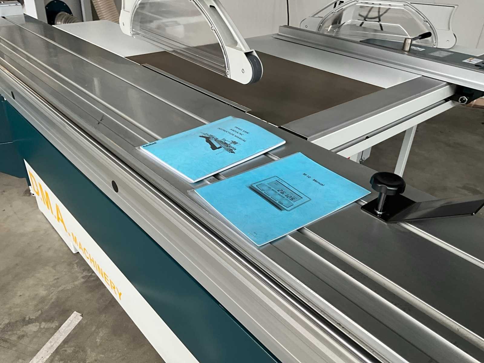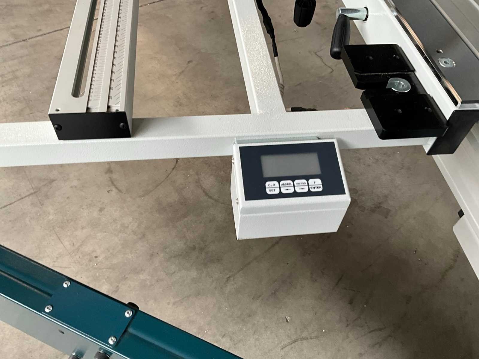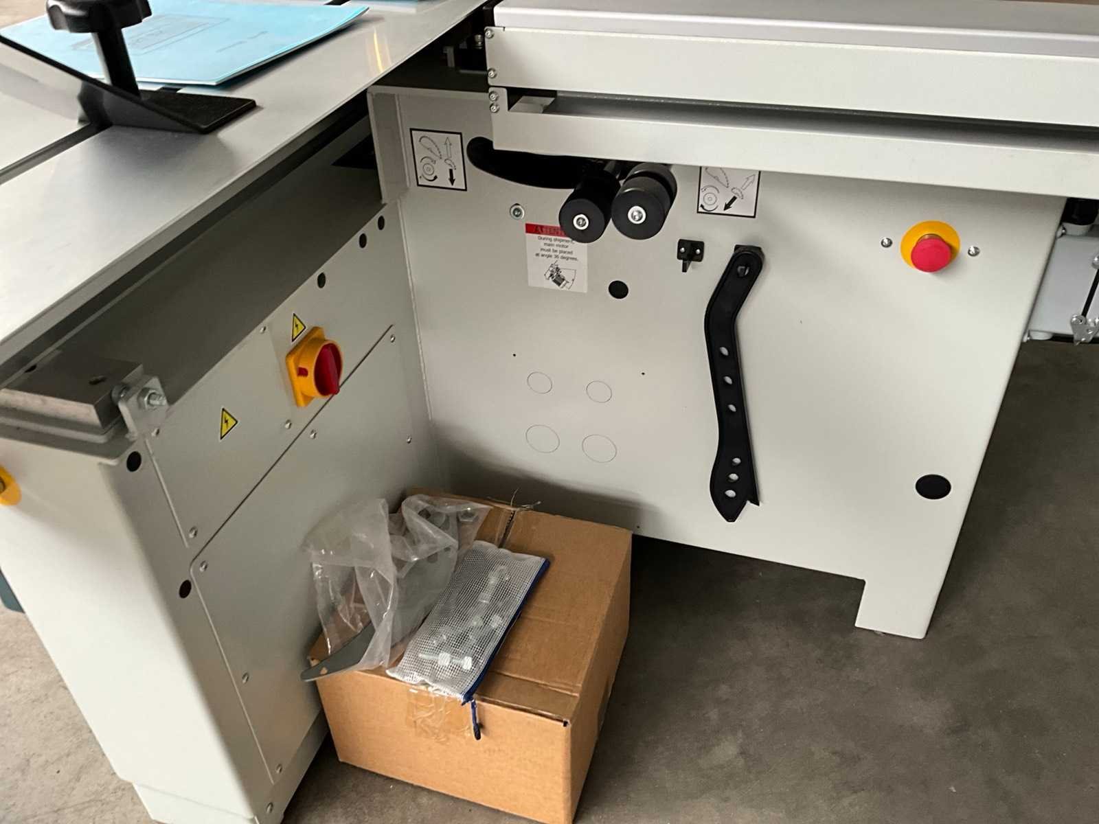 Glijtafel 3200x395 mm, voorzien van bedieningspaneel, handleiding, digitale maat aanduiding, elektrische verstelbare achter aanslag, Merk: OAV Type: A405A/NC Bouwjaar: 2023 Serienummer: 2309467A5A5 Schuinstelbereik max.: 45° Aantal snelheden: 3 Snelheid van n =: 3000rpm Snelheid tot n =: 5000rpm Voorritser: true Motorvermogen (kW): 5.6kW Aansluiting: 400V