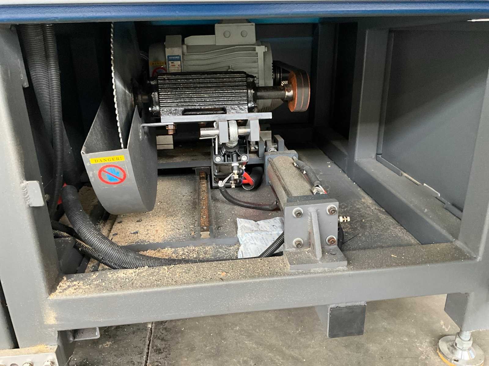 Voorzien van automatische aanvoer aanslag, pneumatisch en elektrisch aangestuurd / aangedreven, behuizing, Type: CS-450 Zaagblad Ø: 400mm Onderliggende afkortzaag: true Lengte aanvoerrollenbaan: 5000mm Lengte uitvoerrollenbaan: 1800mm Afmeting l: 9000mm Afmeting b: 1400mm Afmeting h: 1900mm Aansluiting: 400V
