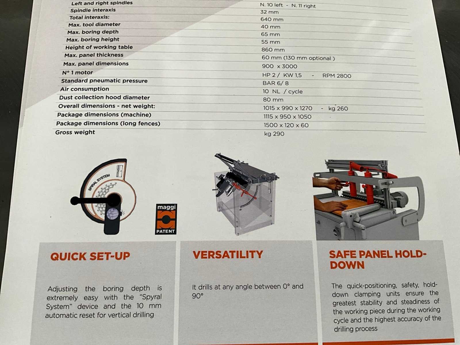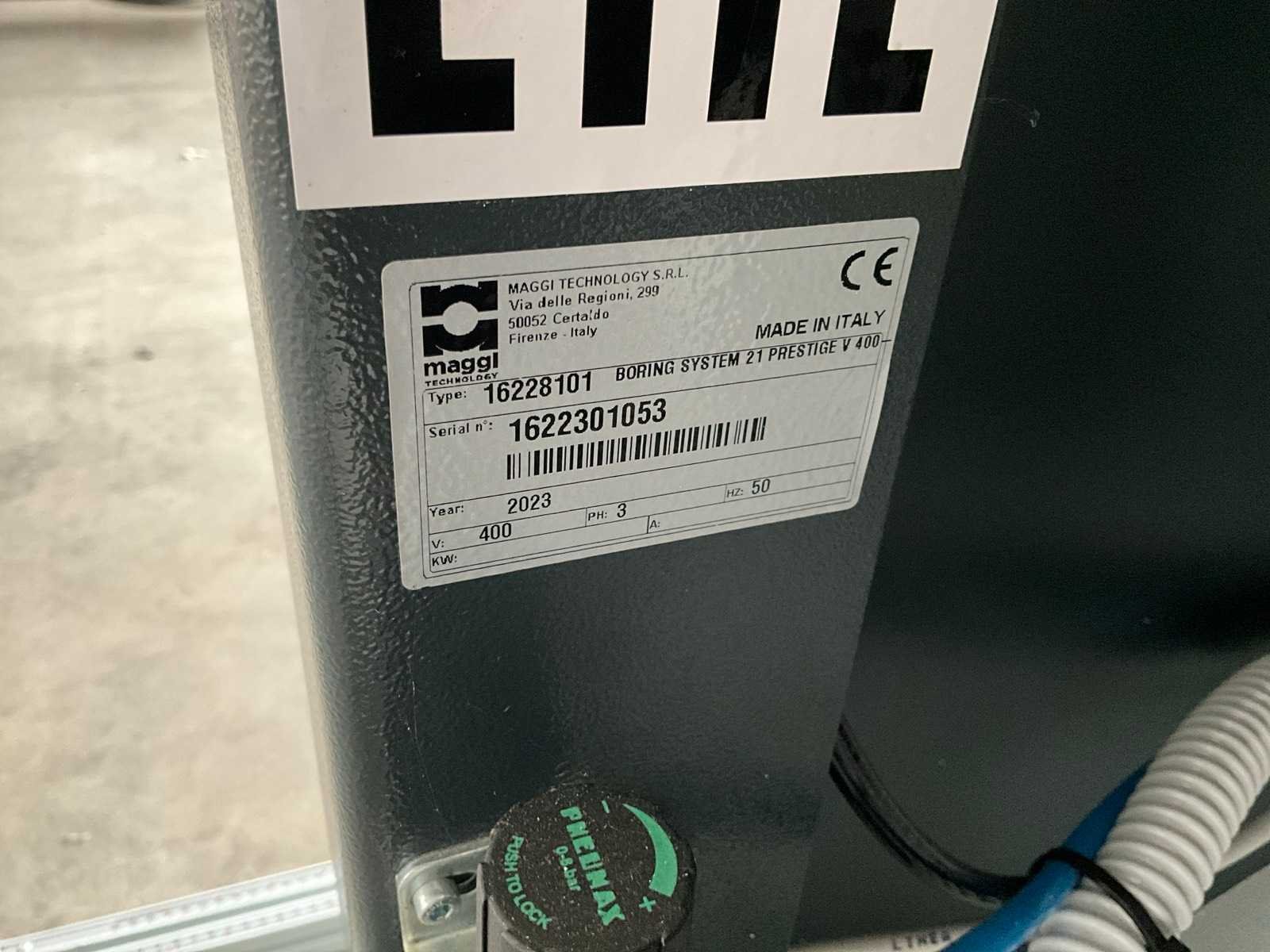 Spindel afstand 32 mm, voorzien van voetbediening, materiaal klemmen Merk: Maggi Type: 21 Prestige Bouwjaar: 2023 Aantal spindels: 21 Boordiepte: 65mm Aansluiting: 400V Afmeting l: 115mm Afmeting b: 990mm Afmeting h: 1270mm
