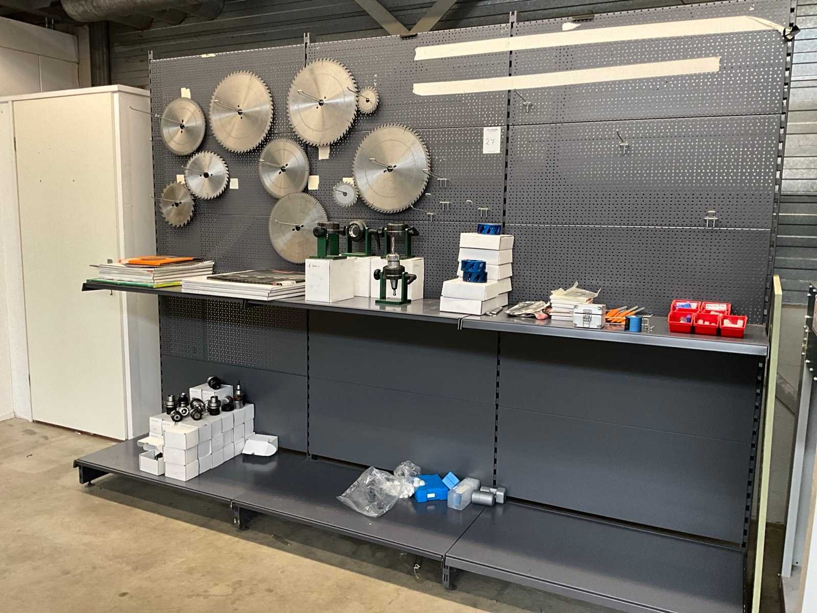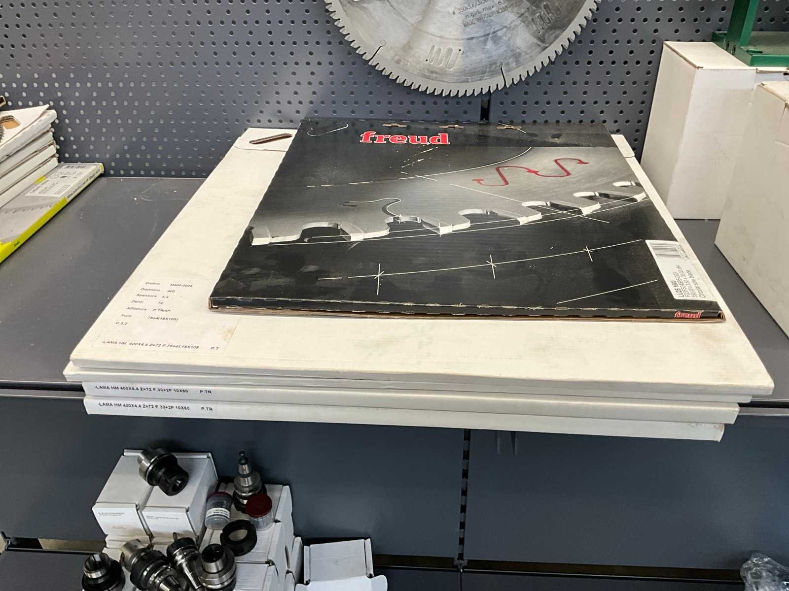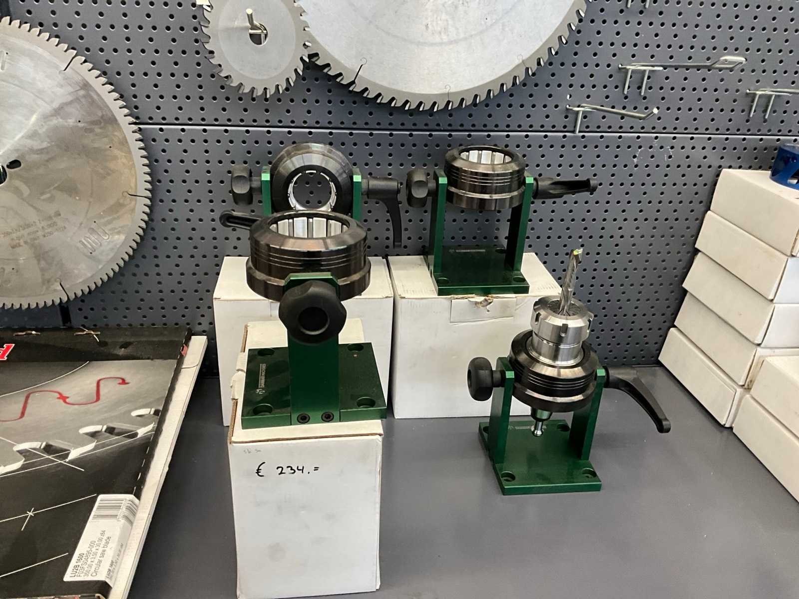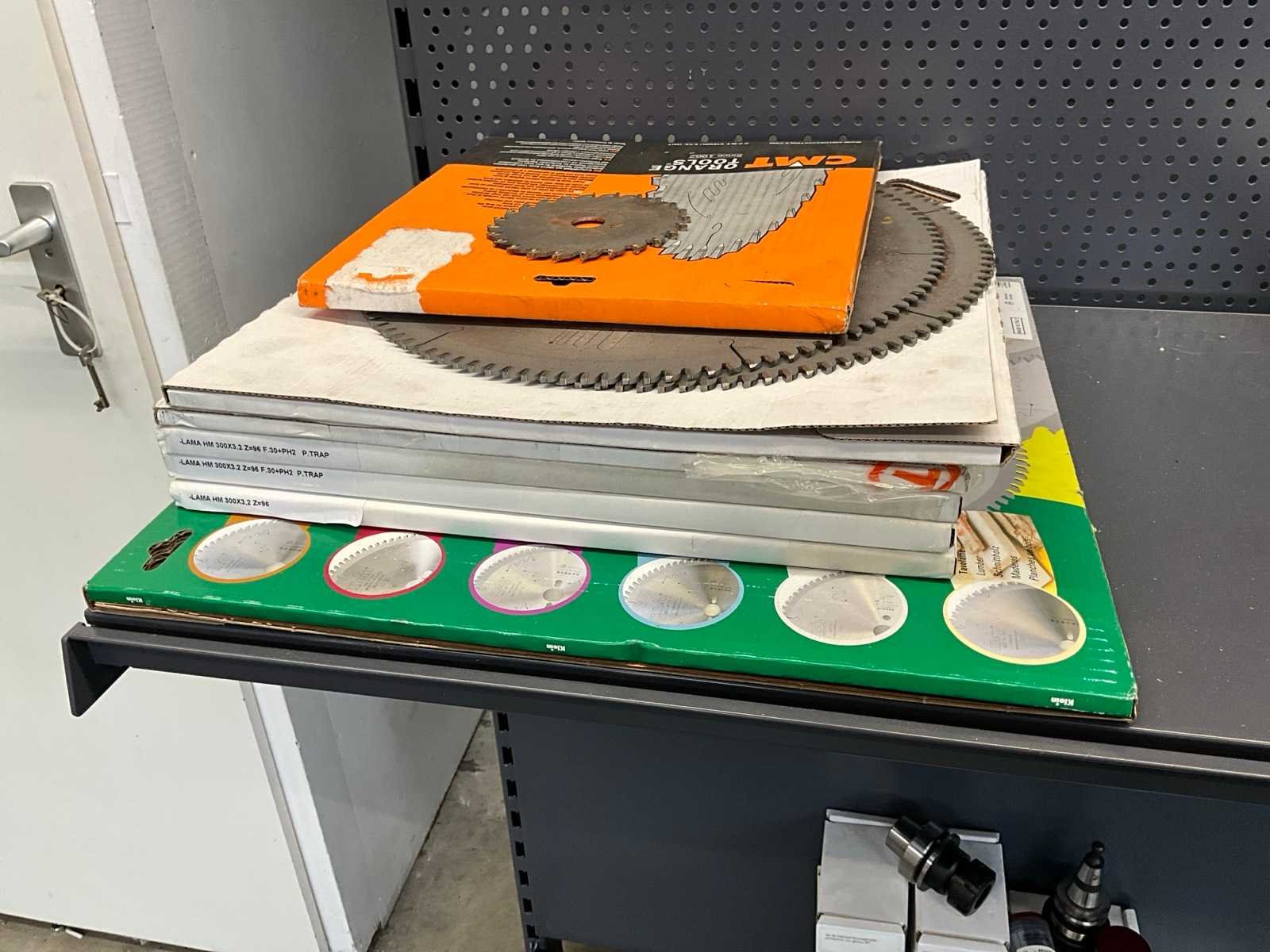 Diverse soorten en maten gereedschap, onder andere zaagblad ø 120/250/300/350/400 mm, gereedschaphouders, spaan geleider blokken, boor gereedschappen, alles in en met 3 mtr winkelstelling,