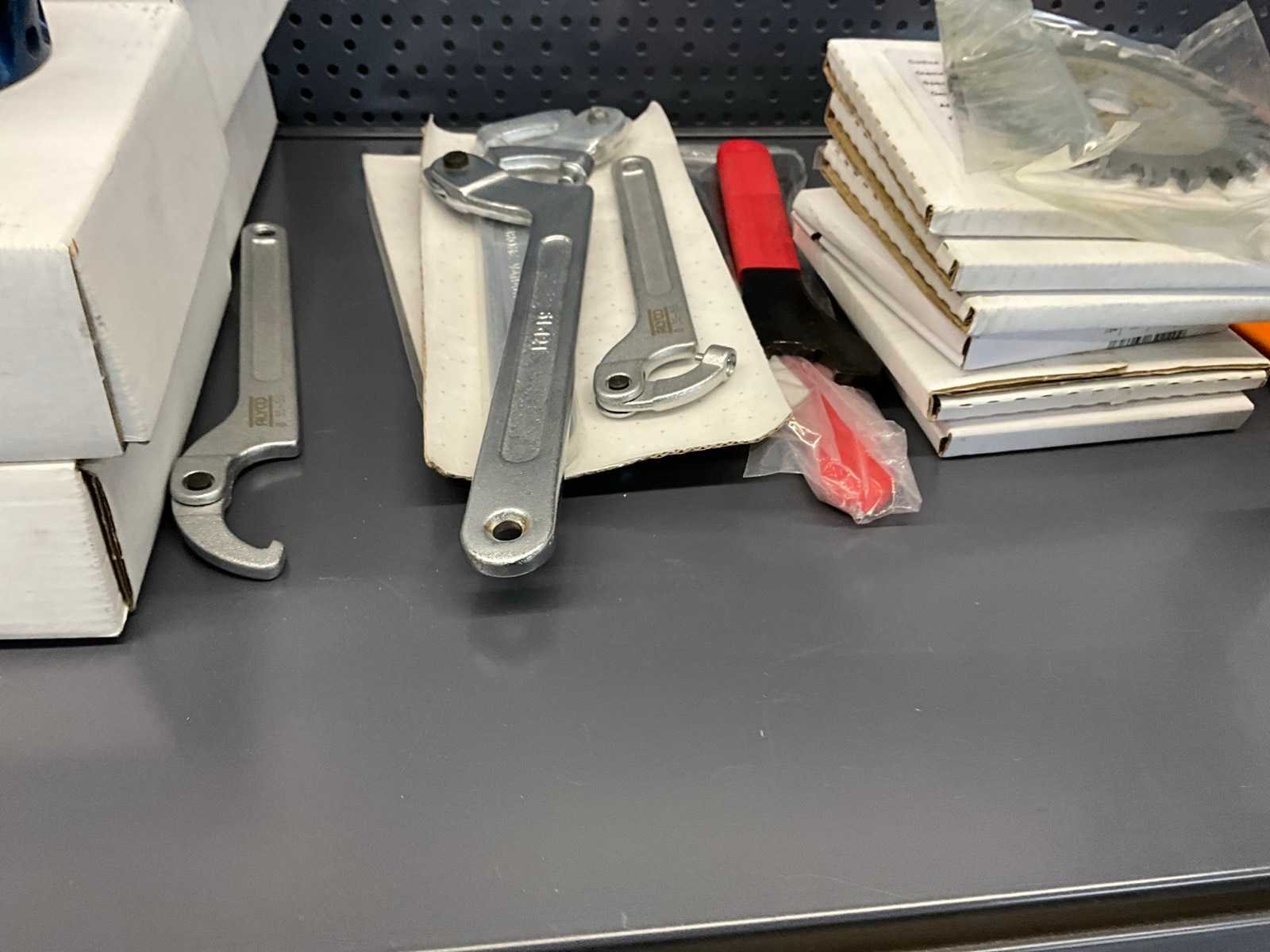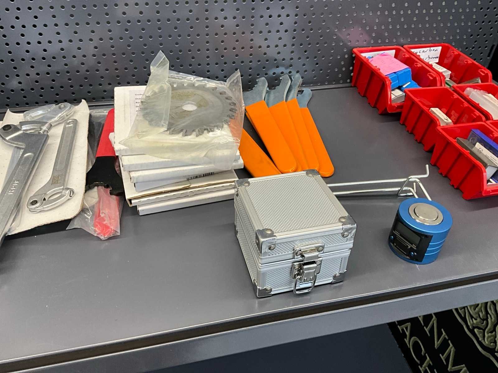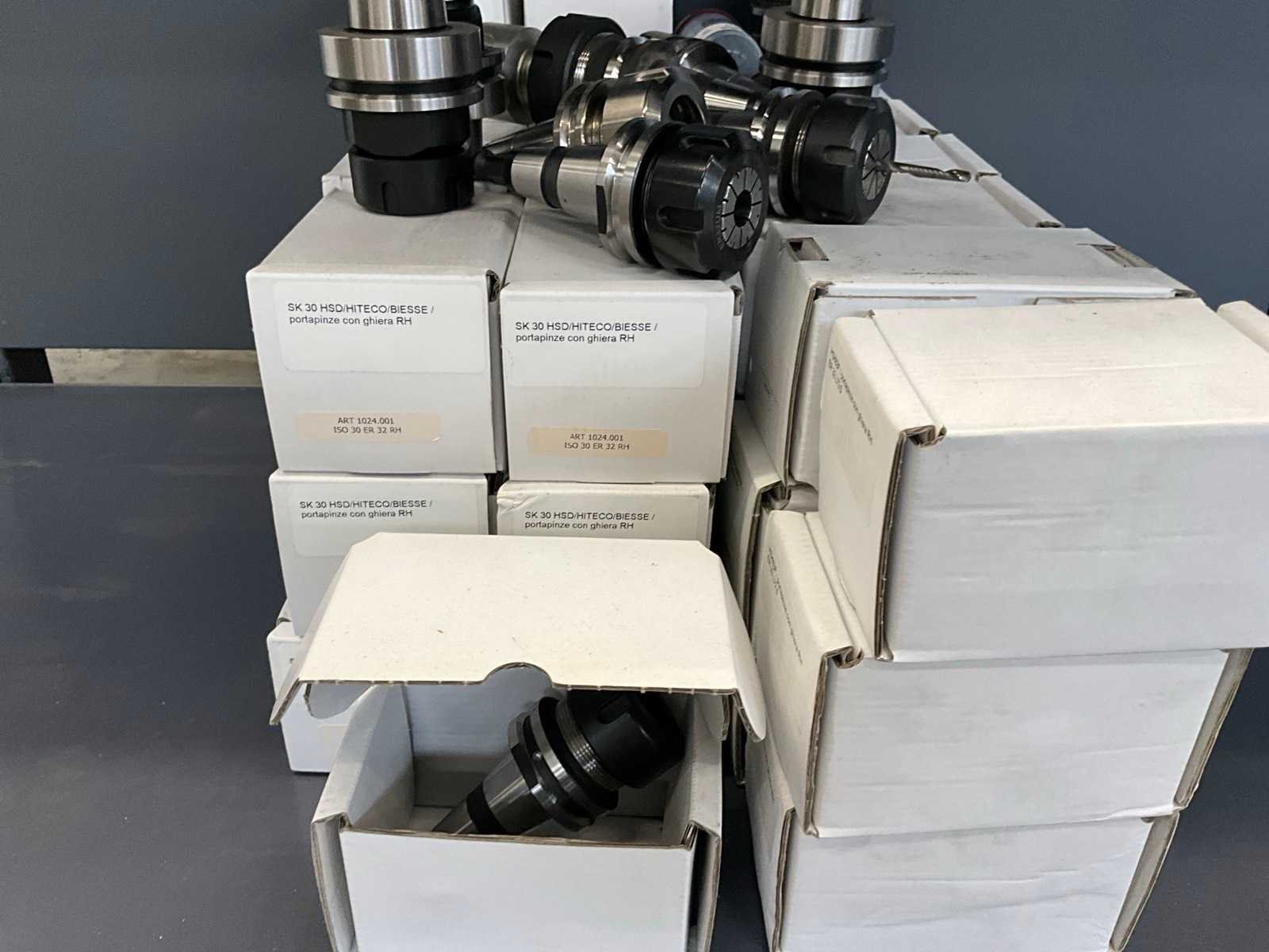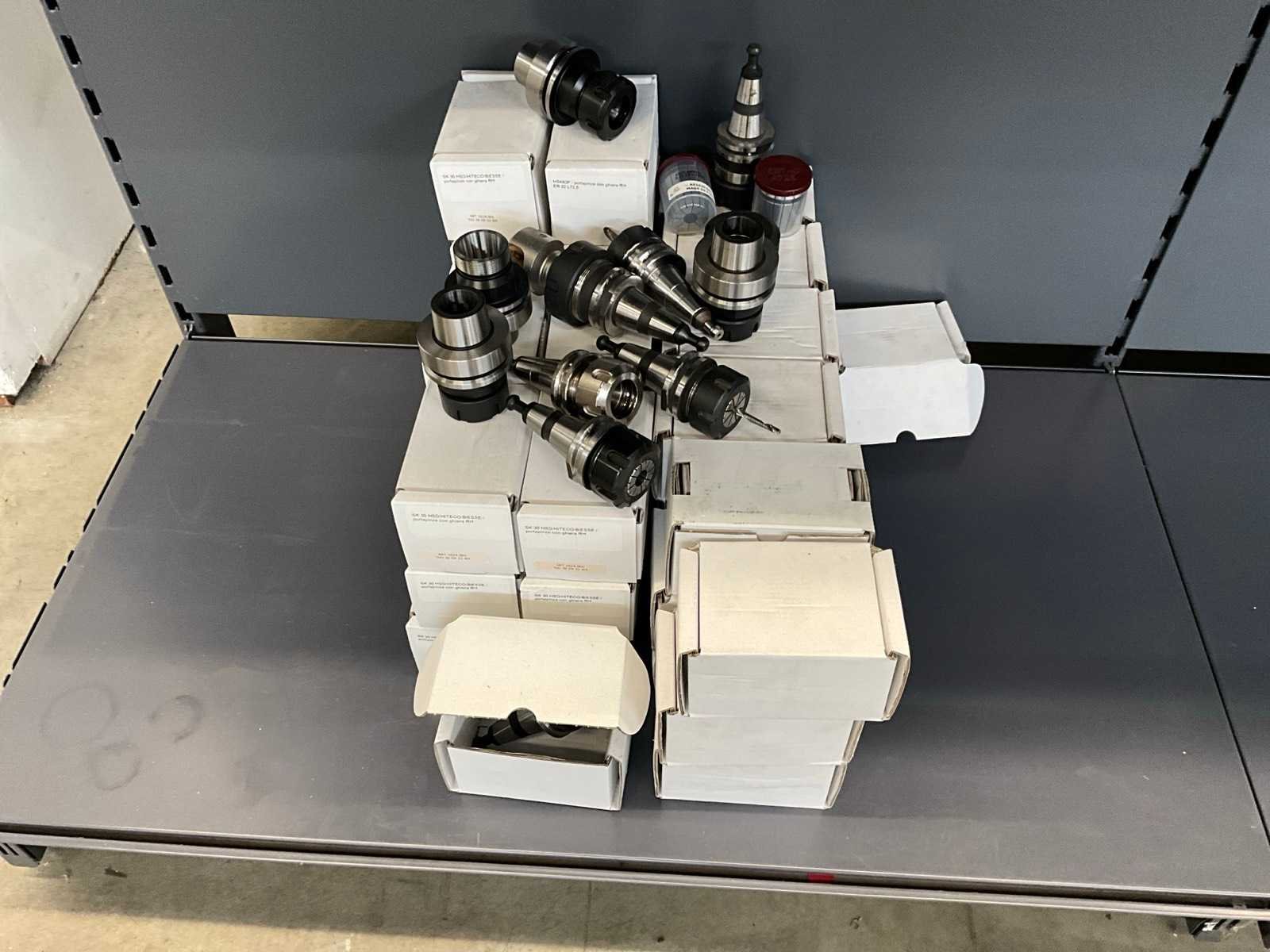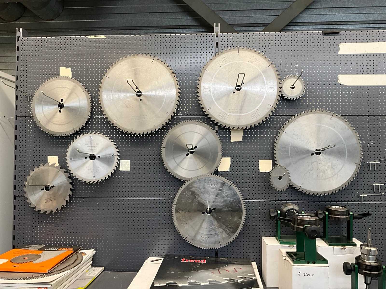 Diverse soorten en maten gereedschap, onder andere zaagblad ø 120/250/300/350/400 mm, gereedschaphouders, spaan geleider blokken, boor gereedschappen, alles in en met 3 mtr winkelstelling,