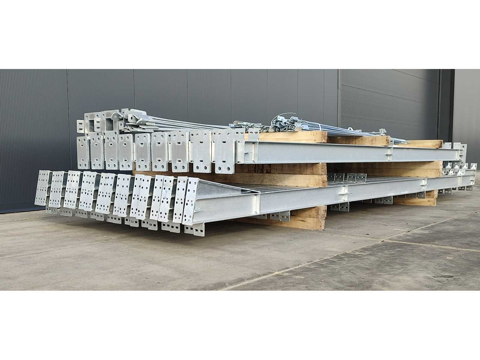 Ongebruikte staalconstructie; gegalvaniseerd staal; volblad verzinkt; IPE 160 onderbouw; constructie bestaat uit staanders en spanten; inclusief windverbanden/schoren; loods is transport klaar gemaakt Materiaal: Staal Bouwjaar: 2023 Totaal oppervlakte: 384m² Goot hoogte: 5000mm Totale afmeting L: 32000mm Totale afmeting Breedte: 12000mm