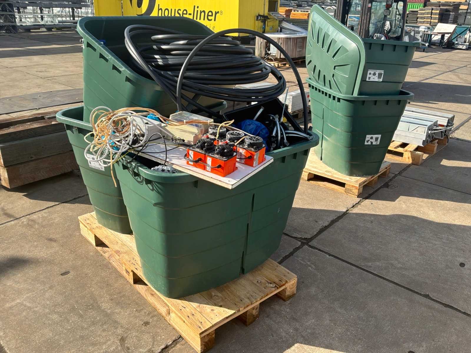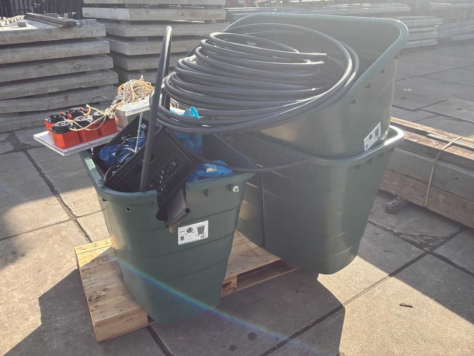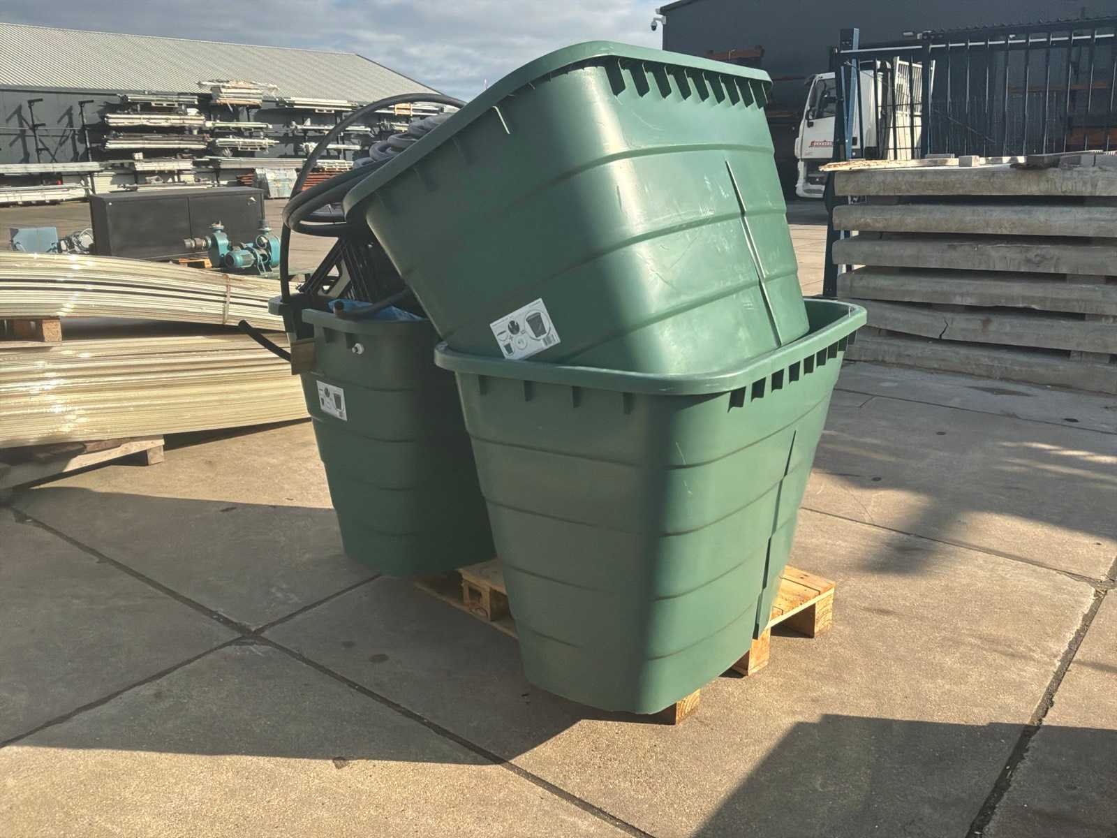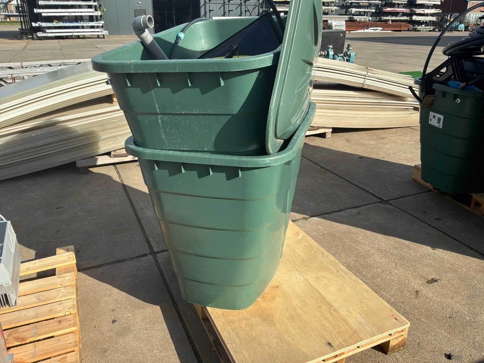 Liter inhoud van een bak is 520ltr; inclusief afgebeelde inhoud waaronder paneel met pulspomp e.d.; Merk: Garantia Kunststof: true