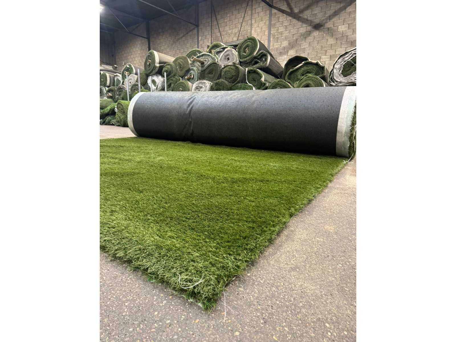 Gebruikt kunstgras; voorheen sportvelden; nette staat; kan belijning bevatten; bevat geen rubber en zand meer; op rol geleverd; breedte van de rol ca 3500mm breed; lengte ca 50000mm Lengte: 5000cm Breedte: 350cm