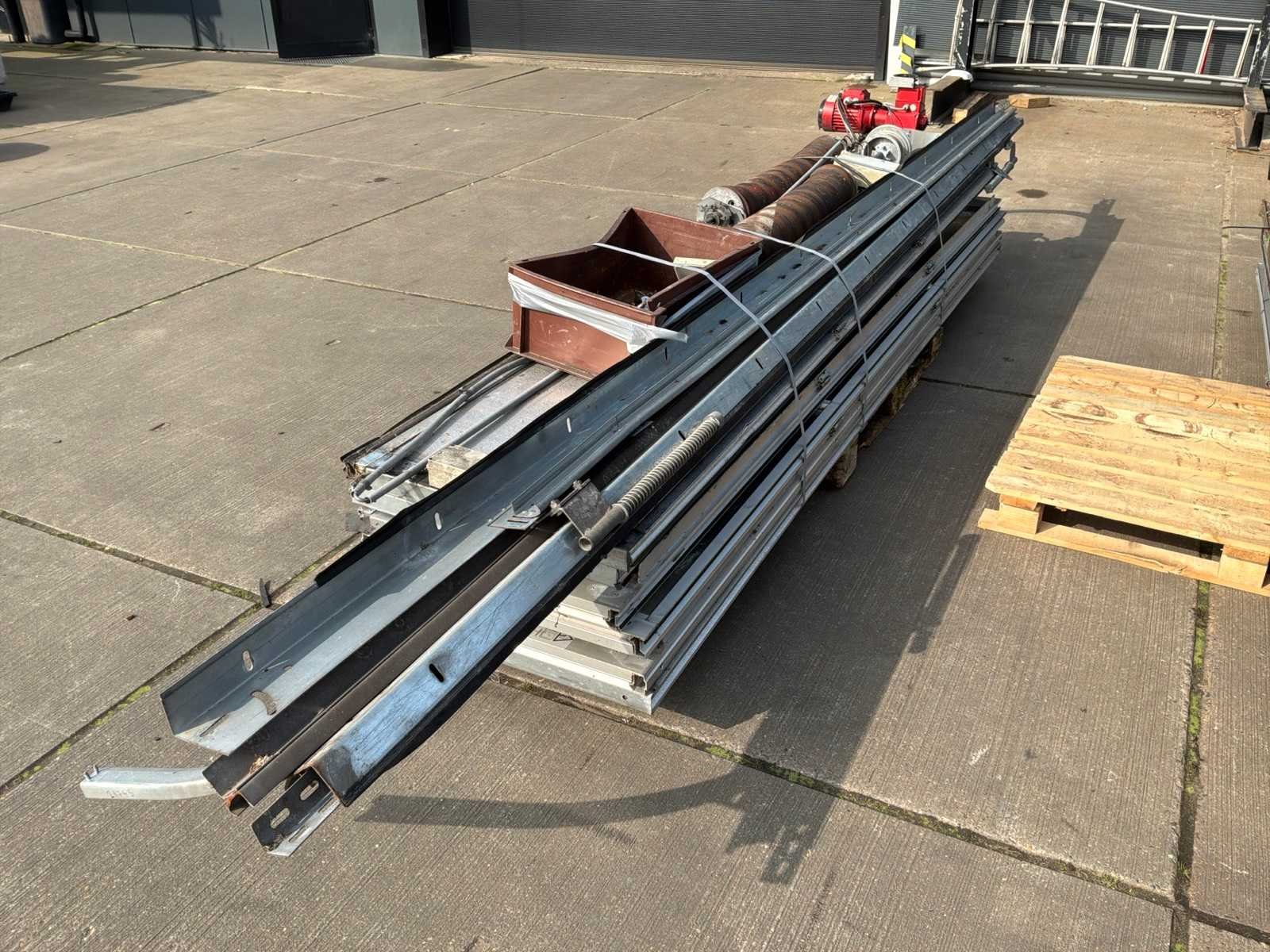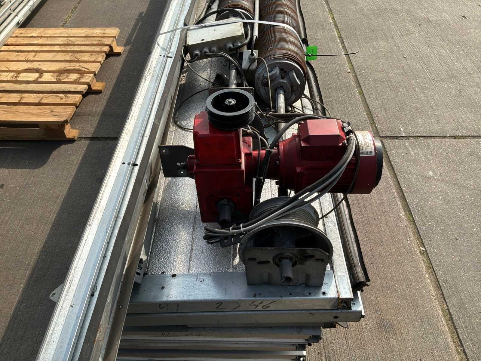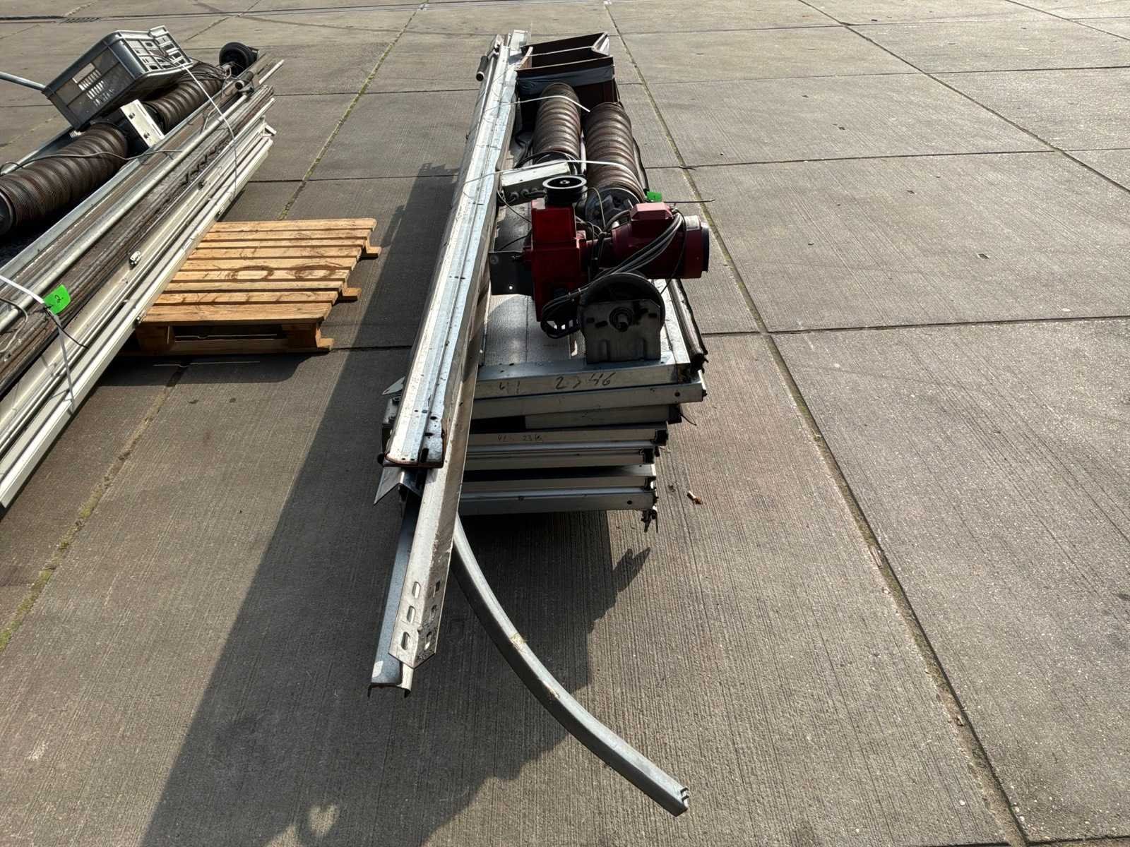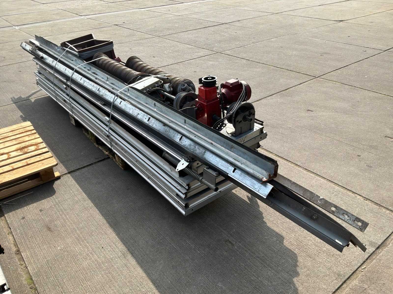 Breedte ca 3250mm; hoogte ca ca 4000mm; inclusief railsen; motor; spanveer; kleinmateriaal