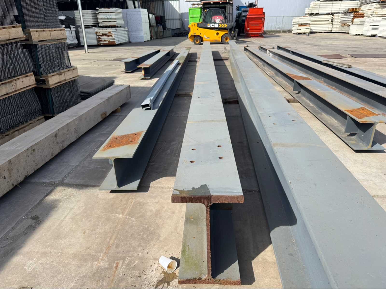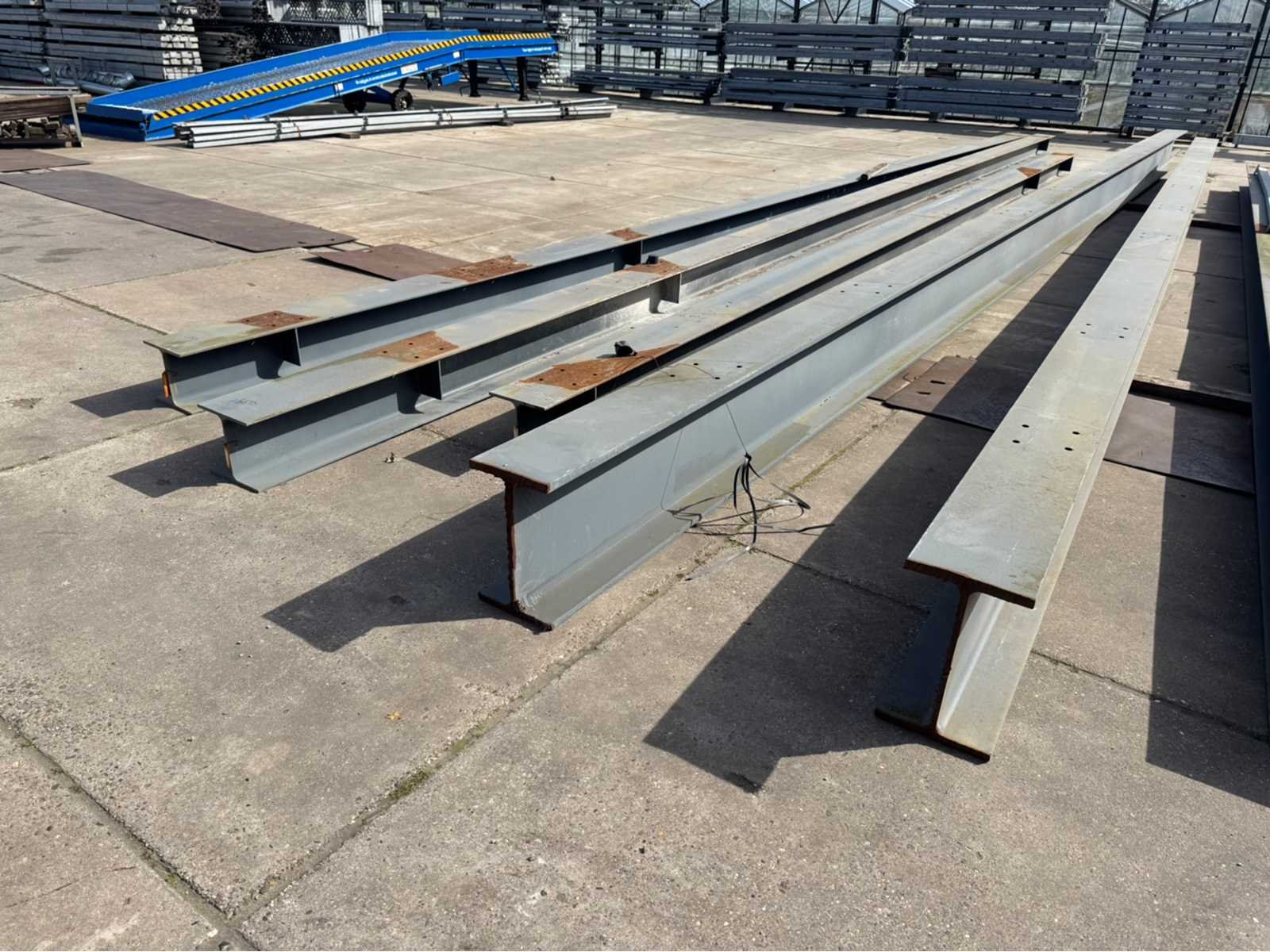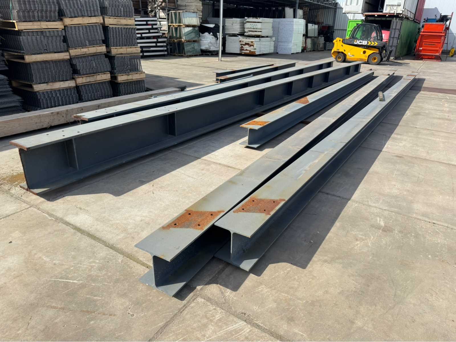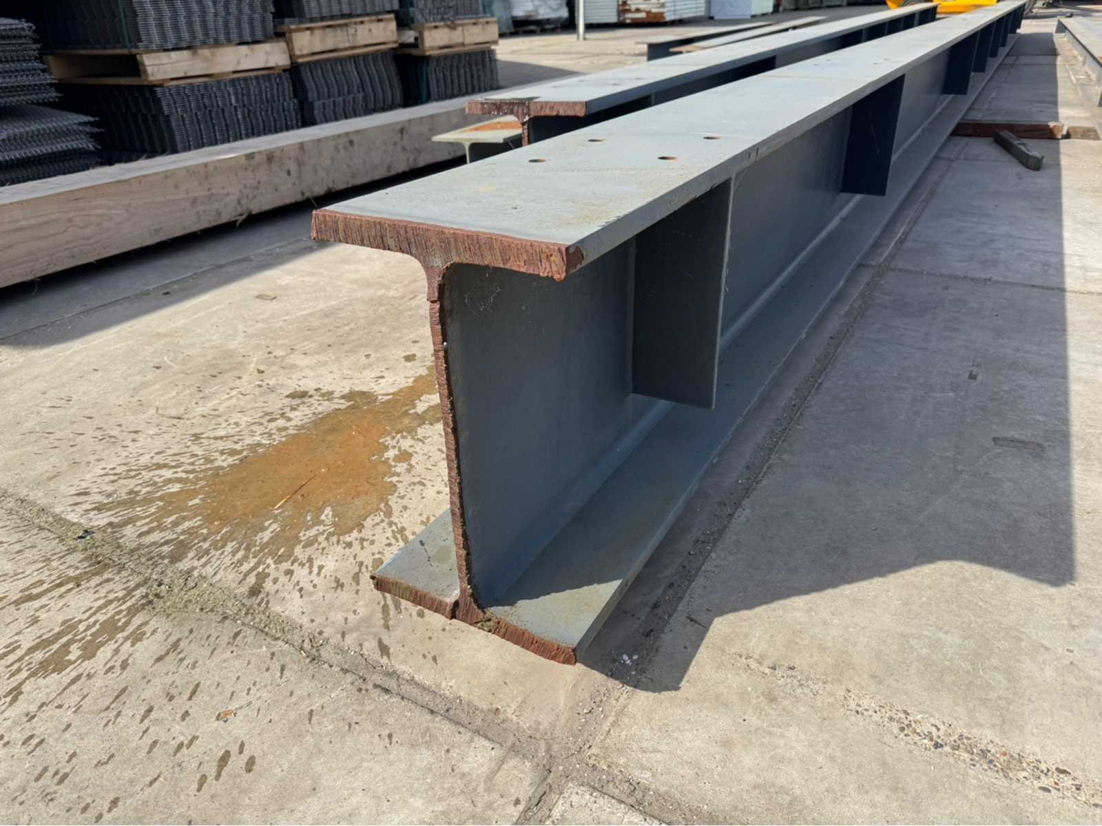2 stuks IPE 500 met een lengte van ca 15000mm; de rest van de balken hebben dezelfde maat ca 300mm x 300mm; 6 lengtes totaal diverse lengtes, langste lengte is ca 15000mm; en de kortste lengte is ca 4600mm