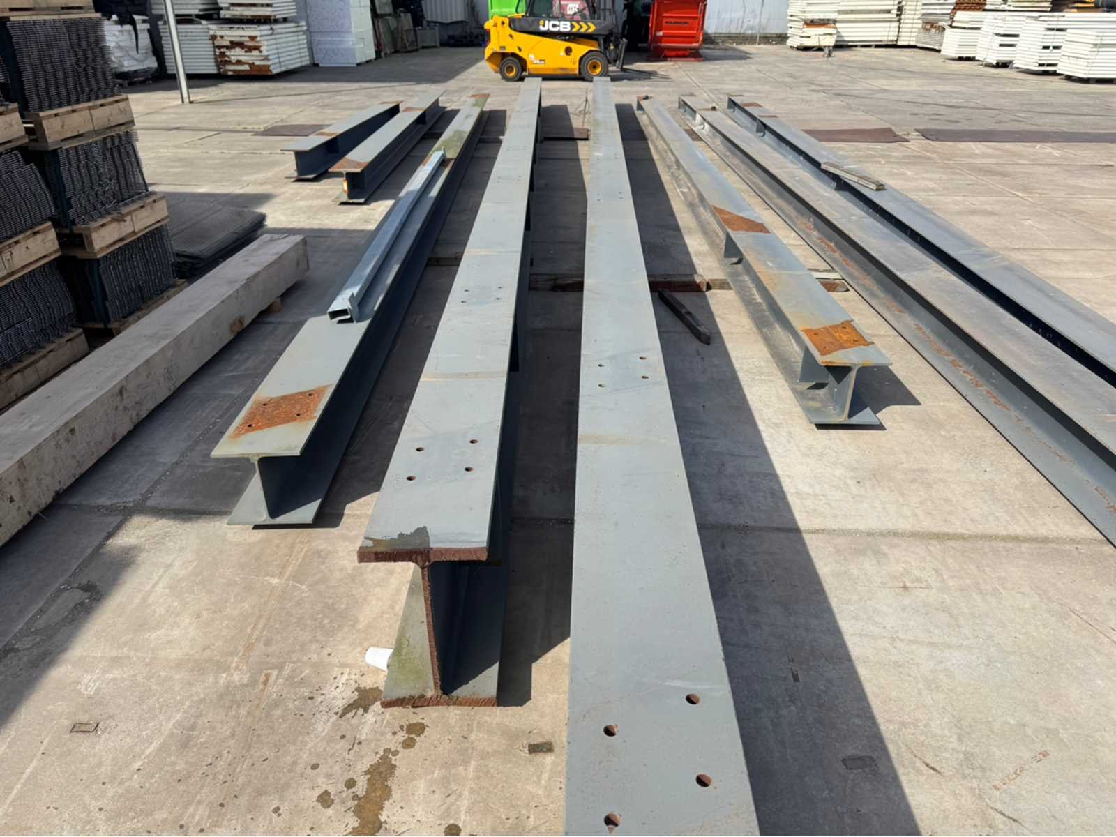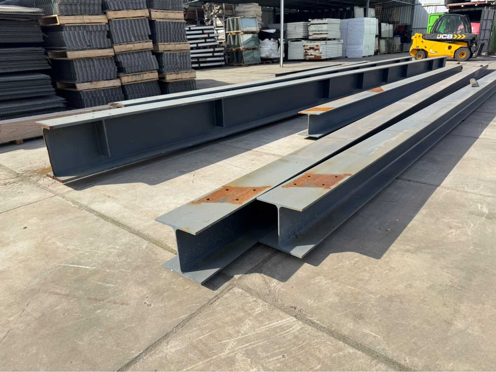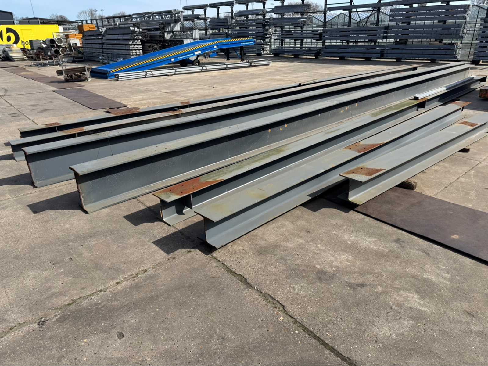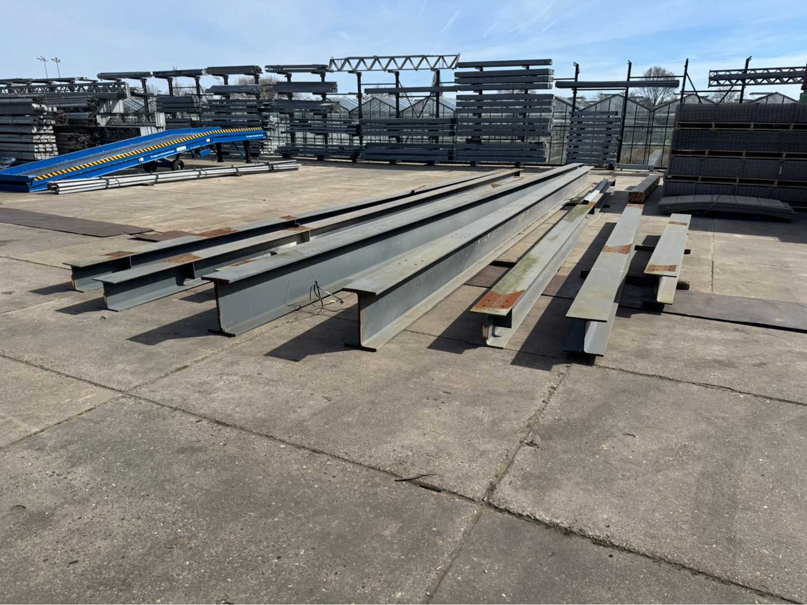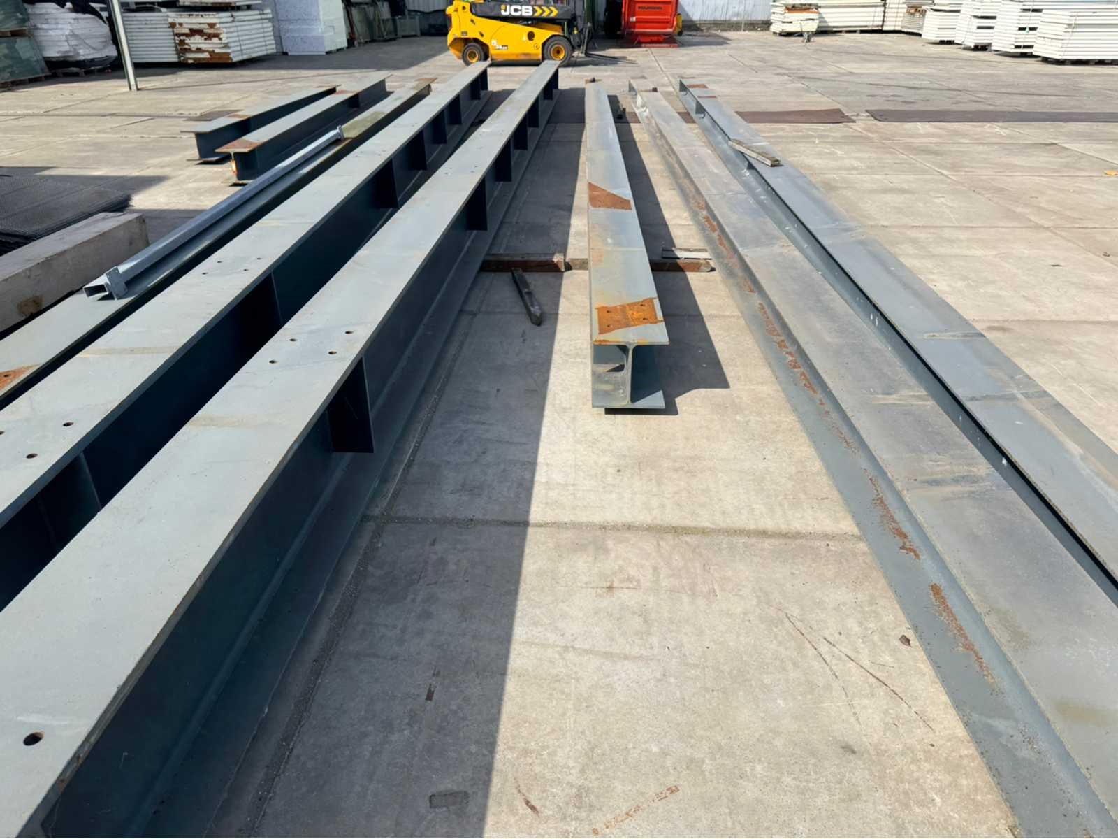 2 stuks IPE 500 met een lengte van ca 15000mm; de rest van de balken hebben dezelfde maat ca 300mm x 300mm; 6 lengtes totaal diverse lengtes, langste lengte is ca 15000mm; en de kortste lengte is ca 4600mm