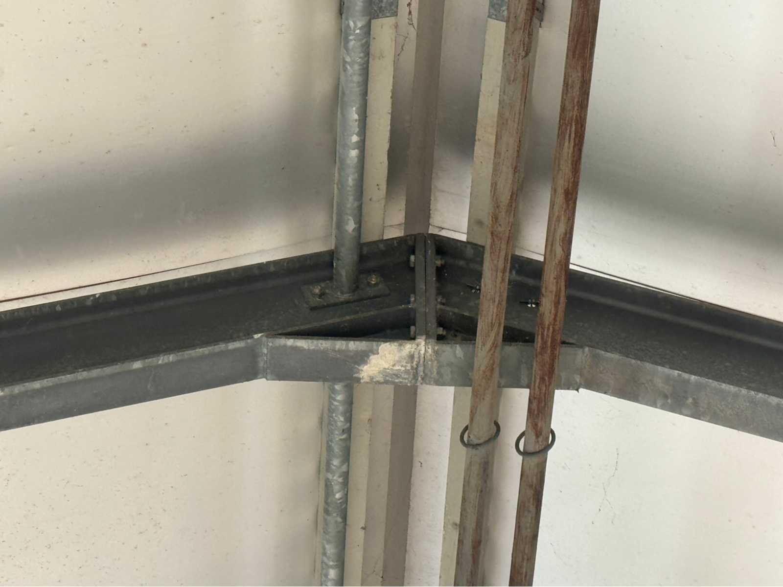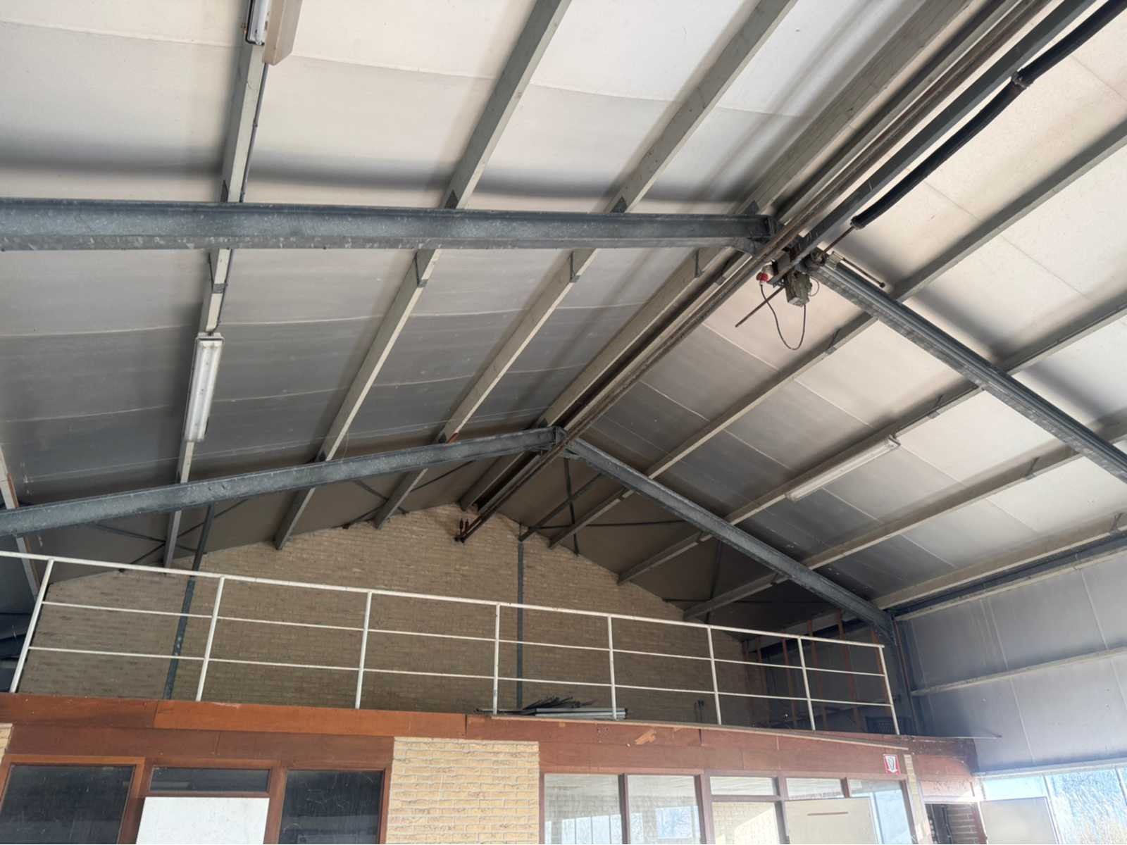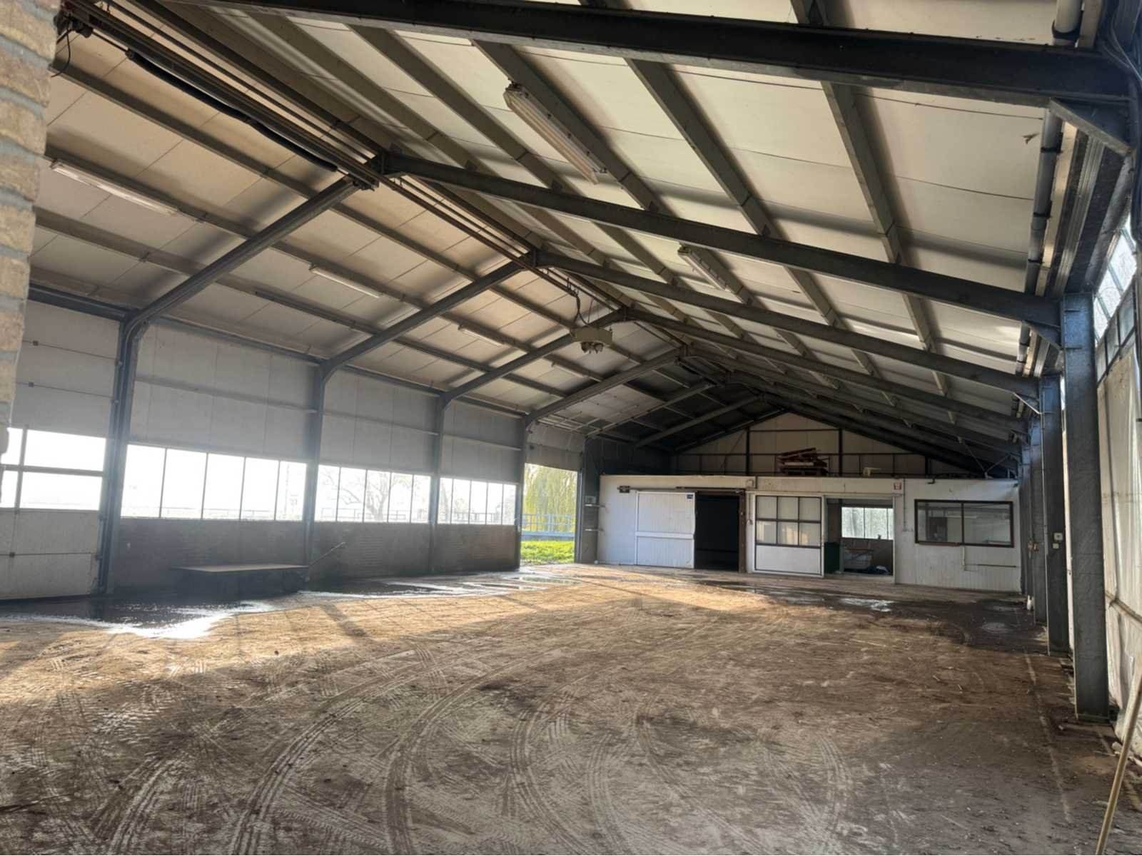 Volblad verzinkte staalconstructie; Vrije overspanning van 12800 mm; vakmaat is 4000 mm; totaal 10 vakken; totale lengte is 40000 mm; poothoogte voorzijde 4500 mm; poothoogte achterzijde 3460 mm; nokhoogte is ca. 6200 mm; staanders van IPE 220; spantbenen van IPE 220; met houten dakgordingen; dak van isolatie met stalen buiten beplating; zonder gevels; gemonteerd middels bout-moer verbindingen; 2 overheaddeuren van 3750 mm breed en 4250 mm hoog; wordt gedemonteerd en transport klaargemaakt door verkoper; let op medio mei / juni leverbaar!; kijkdag en afhalen geheel op afspraak; Leveringsvoorwaarden: Geladen op vrachtwagen