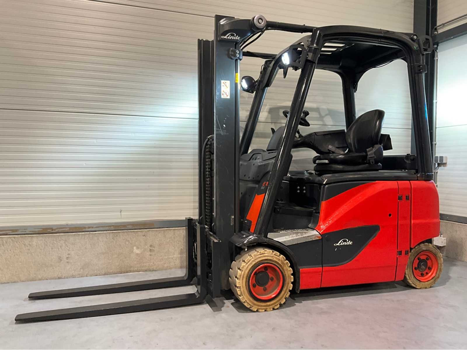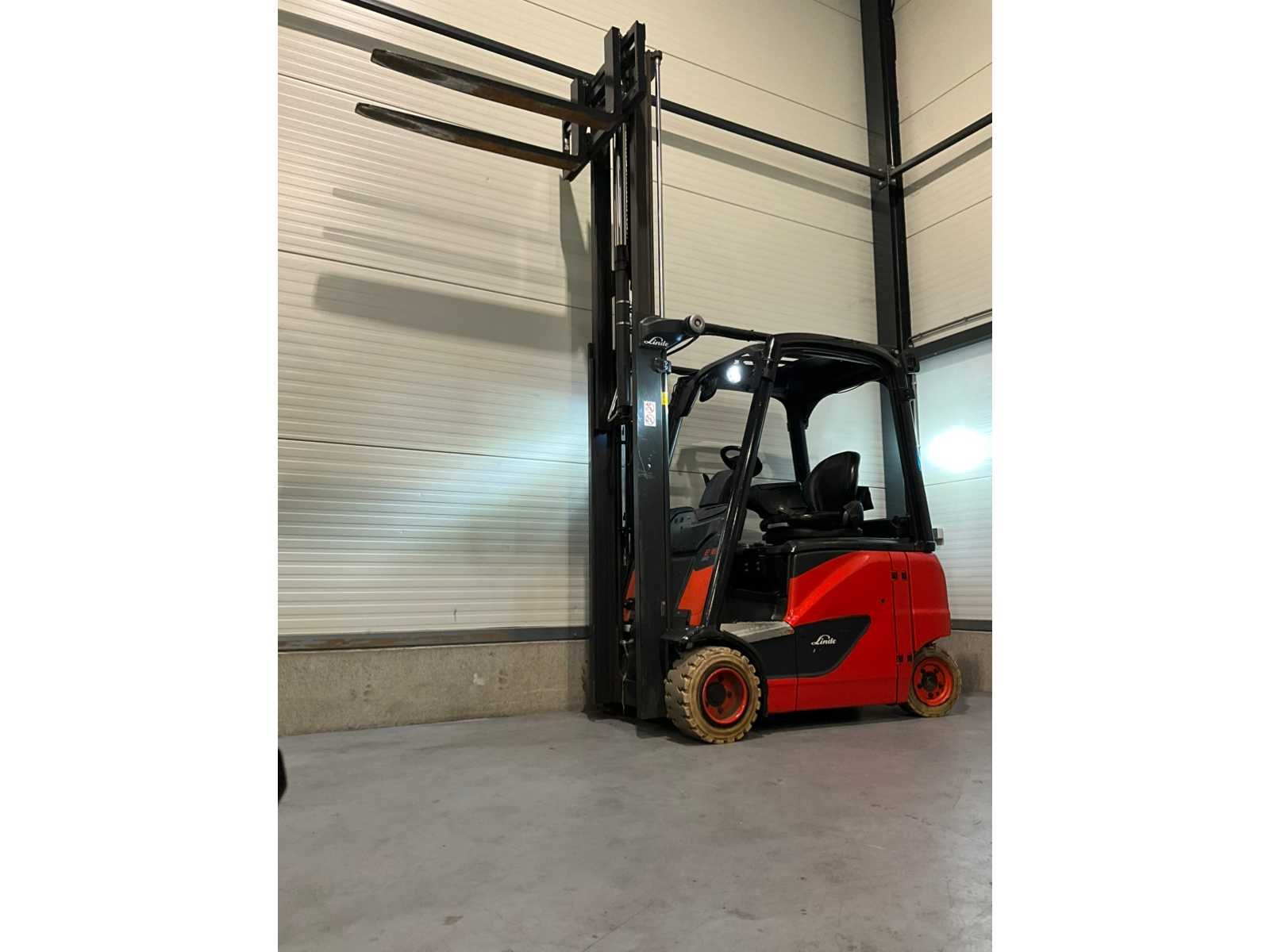 Extra opties : Rondom Led verlichting , Blue spot , Joystick , Elektrische handrem , Non-marking banden Merk: Linde Type: E18PH-02 Bouwjaar: 2019 Serienummer: H2X386V06179 Aantal wielen: 4 Free-lift: true Side-shift: true Hydraulisch verstelbare lepels: true Hefvermogen: 1800kg Hefhoogte: 3140mm Vol rubber banden: true Totale afmeting L: 3340mm Totale afmeting Breedte: 1010mm Totale afmeting Hoogte: 2130mm