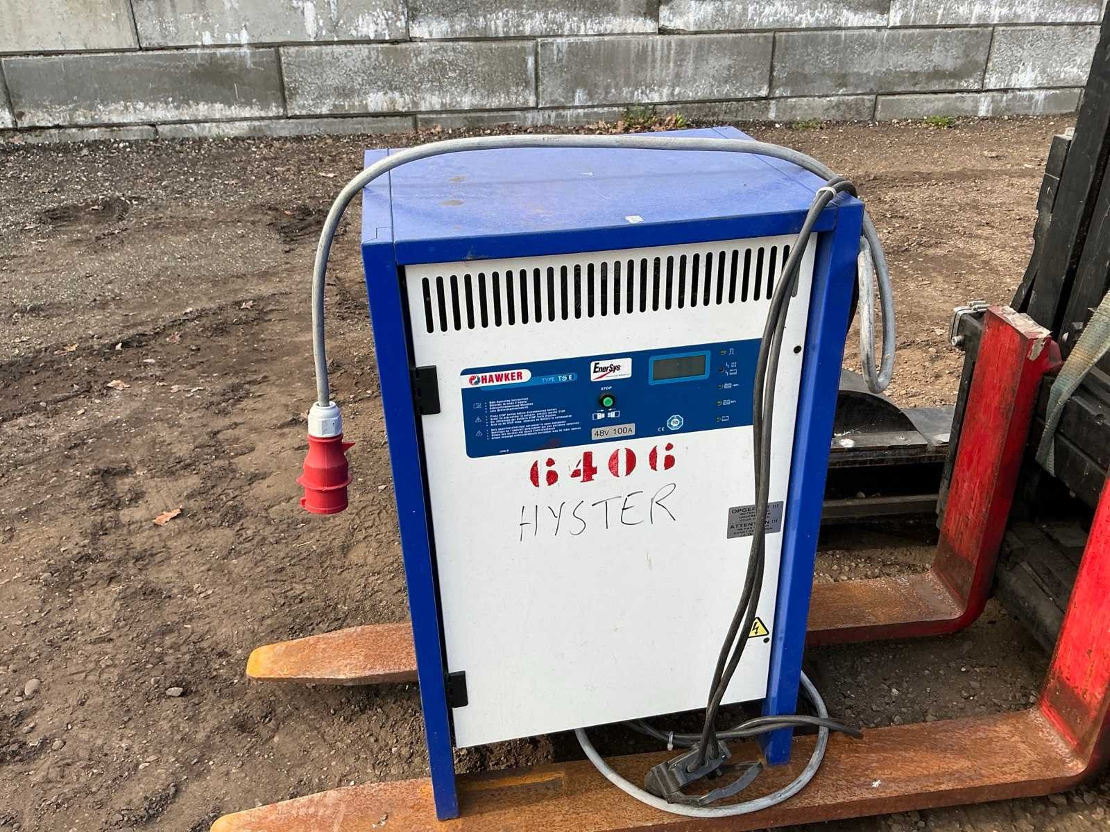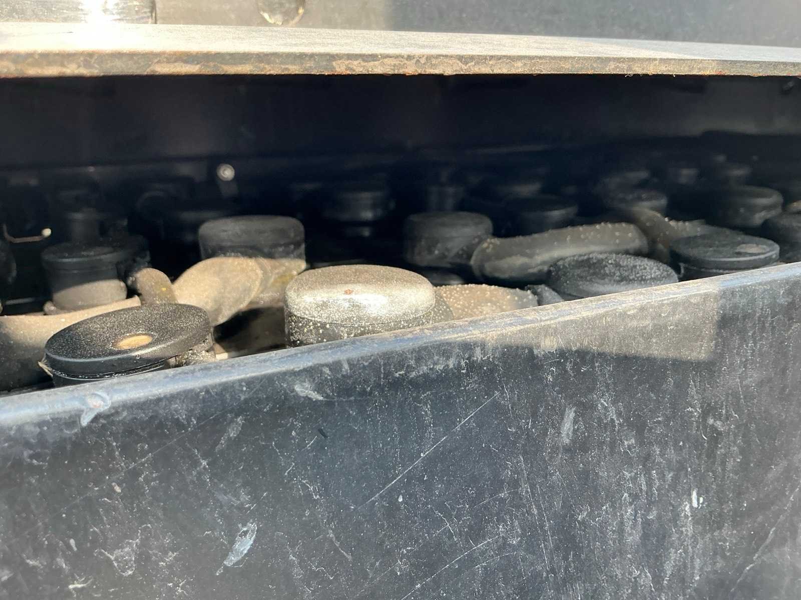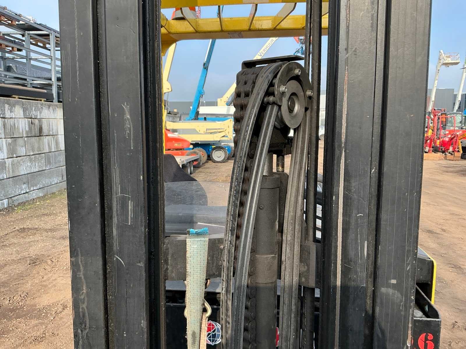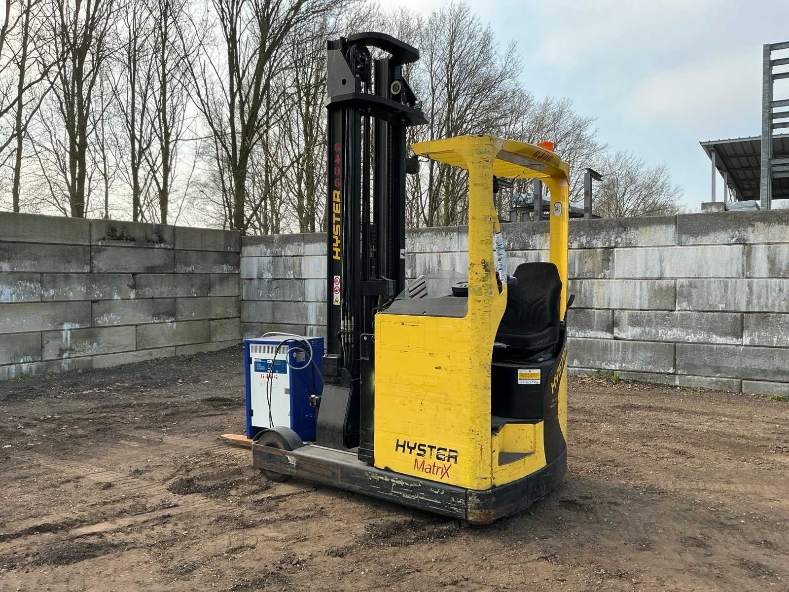Inclusief lader 48V, 380V 16A stekker, 48V accupakket, Lepels 1200mm, lepelbord 800mm, triplex mast, uitschuifbare mast, werkverlichting, max hefhoogte 6700mm, max hefvermogen 1600kg Merk: Hyster Type: R1.6H Bouwjaar: 2006 Serienummer: C435T04528D Brandstof: Elektrisch Mast: Triple Soort band: Volrubber banden Aantal wielen: 3 Eigen gewicht: 3910kg Hefvermogen: 1600kg Lepellengte: 1200mm Max. hefhoogte: 6700mm Minimale doorrijhoogte: 3100mm Totale afmeting L: 2800mm Totale afmeting Breedte: 1300mm Totale afmeting Hoogte: 3000mm