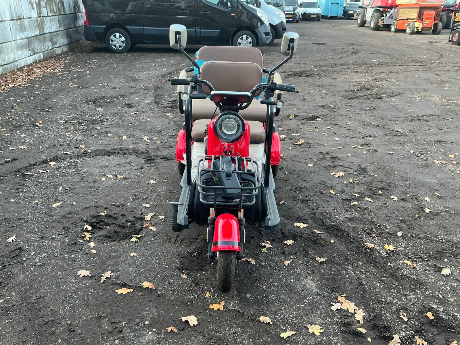 Inclusief lader 110V, 60V accupakket, bagage rekjes, 3 zitplaatsen, led verlichting Merk: RC-car Industry Model: RC-G3.0 Kleur: Rood Bouwjaar: 2024 Serienummer: RC2413080500 Gewicht: 140 Lengte: 2100 Breedte: 850 Hoogte: 1250