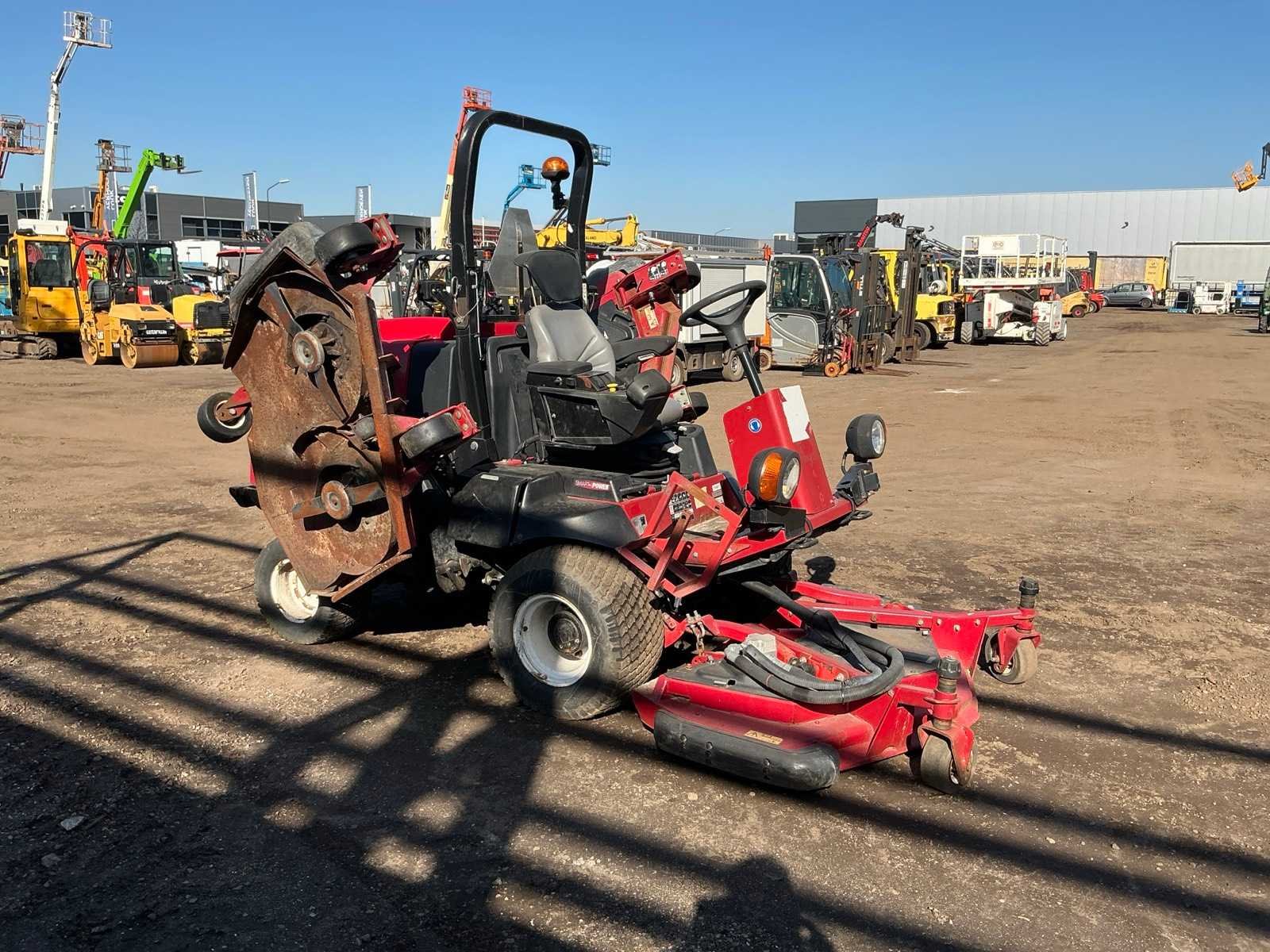 Triple maaidek, Front 1500mm, 2x side 1200mm, hydrostatische aandrijving werkverlichting, neerklapbare beugel Merk: Toro Type: Groundmaster 4000D Bouwjaar: 2005 Serienummer: 30605-314000185 Werkbreedte: 3900mm Zitmaaier: true Brandstof: Diesel Motorvermogen (kW): 35kW Eigen gewicht: 1856kg Totale afmeting L: 3500mm Totale afmeting Breedte: 2300mm Totale afmeting Hoogte: 2200mm