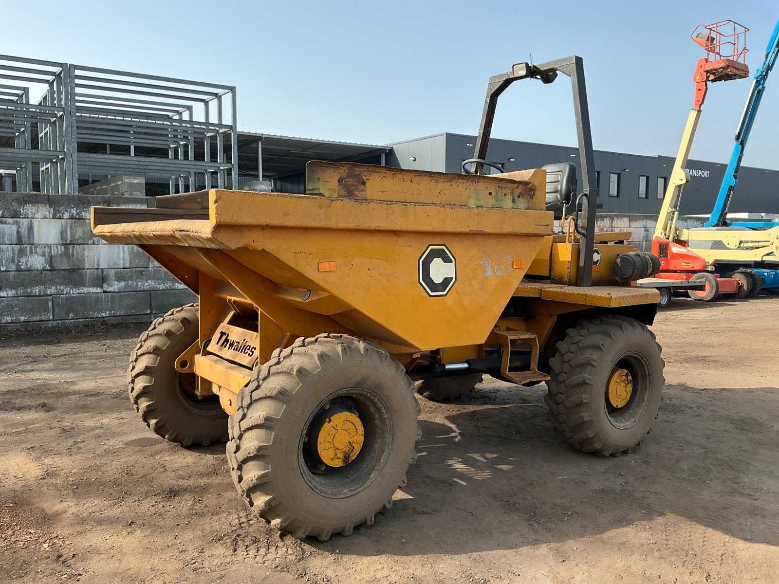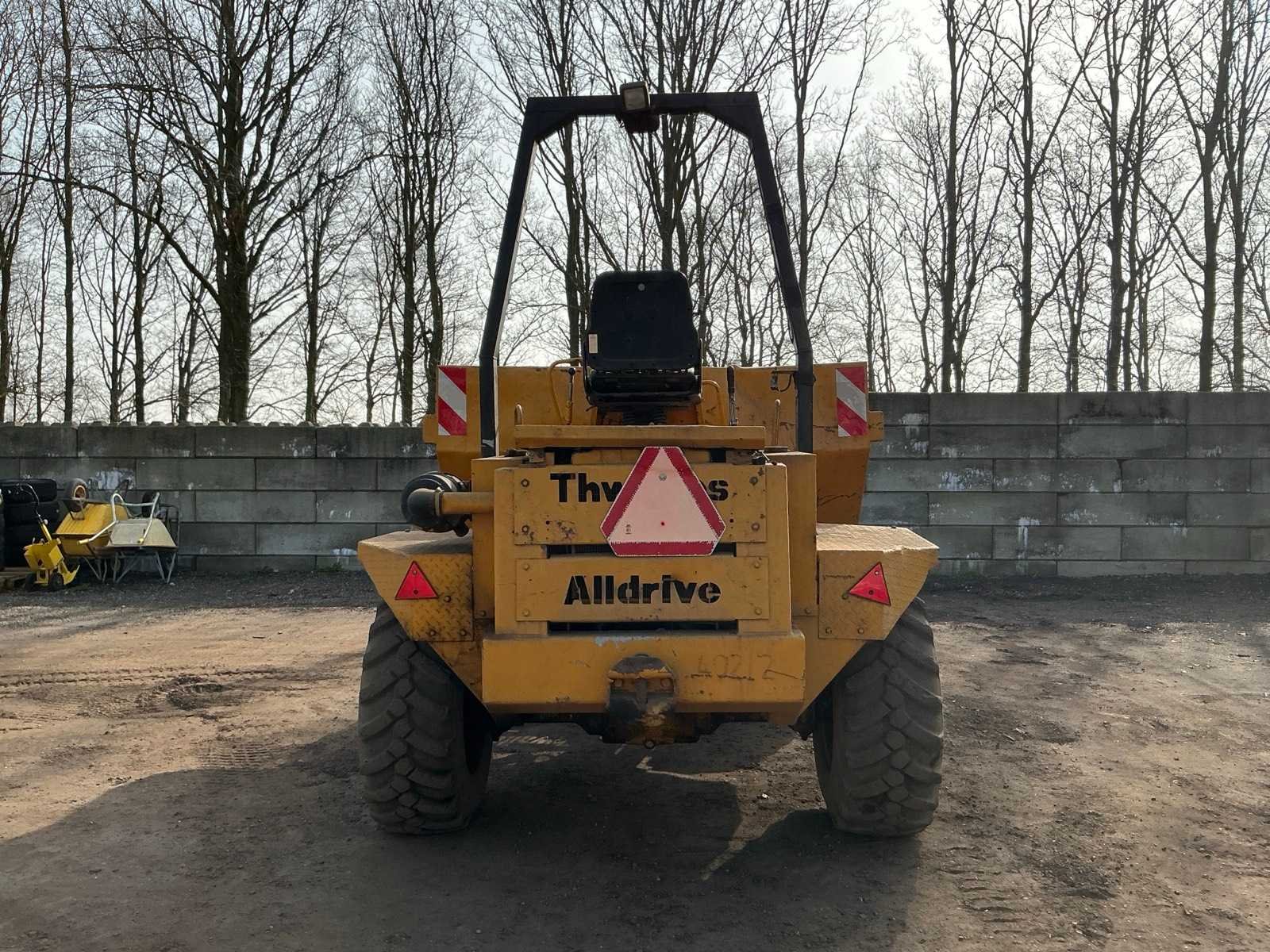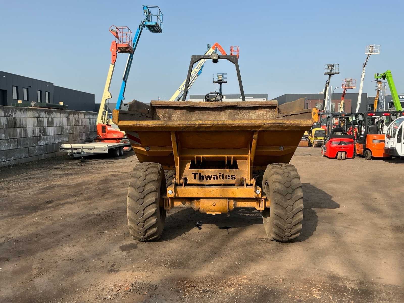 Let op; lekt olie op kiep cilinder, 4WD, 4 rijsnelheden, trekoog met pin 30mm, werkverlichting, Merk: Thwaites Type: 6T Serienummer: R01598 Merk motor: Deutz Motorvermogen (kW): 55kW Aantal cilinders: 4 Brandstof: Diesel Bedrijfsgewicht: 4350kg Laadvermogen: 6000kg Bandenmaat: 16/70 R20 Eigen gewicht: 4350kg Totale afmeting L: 4300mm Totale afmeting Breedte: 2350mm Totale afmeting Hoogte: 3050mm