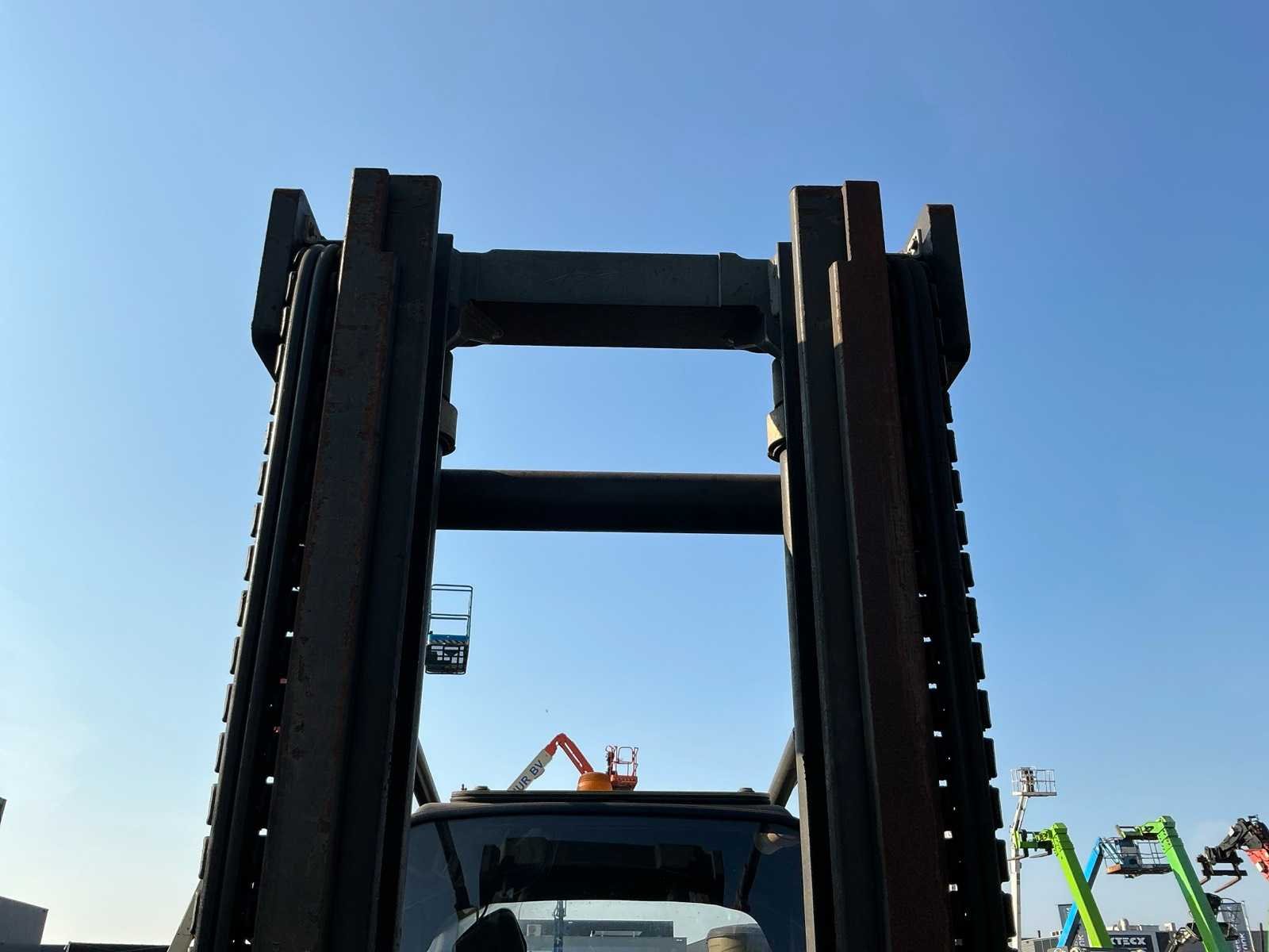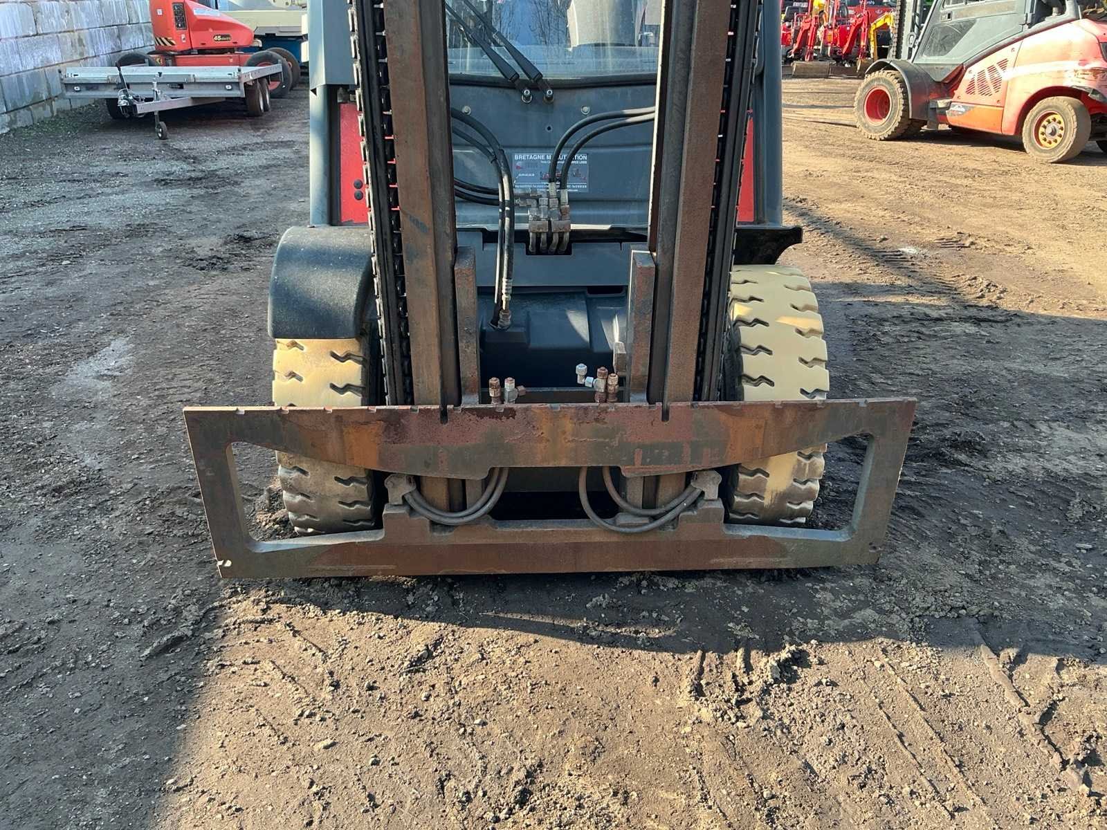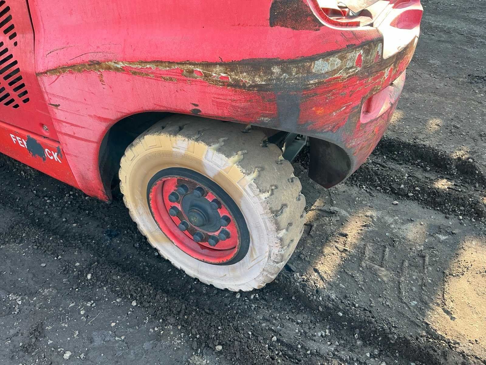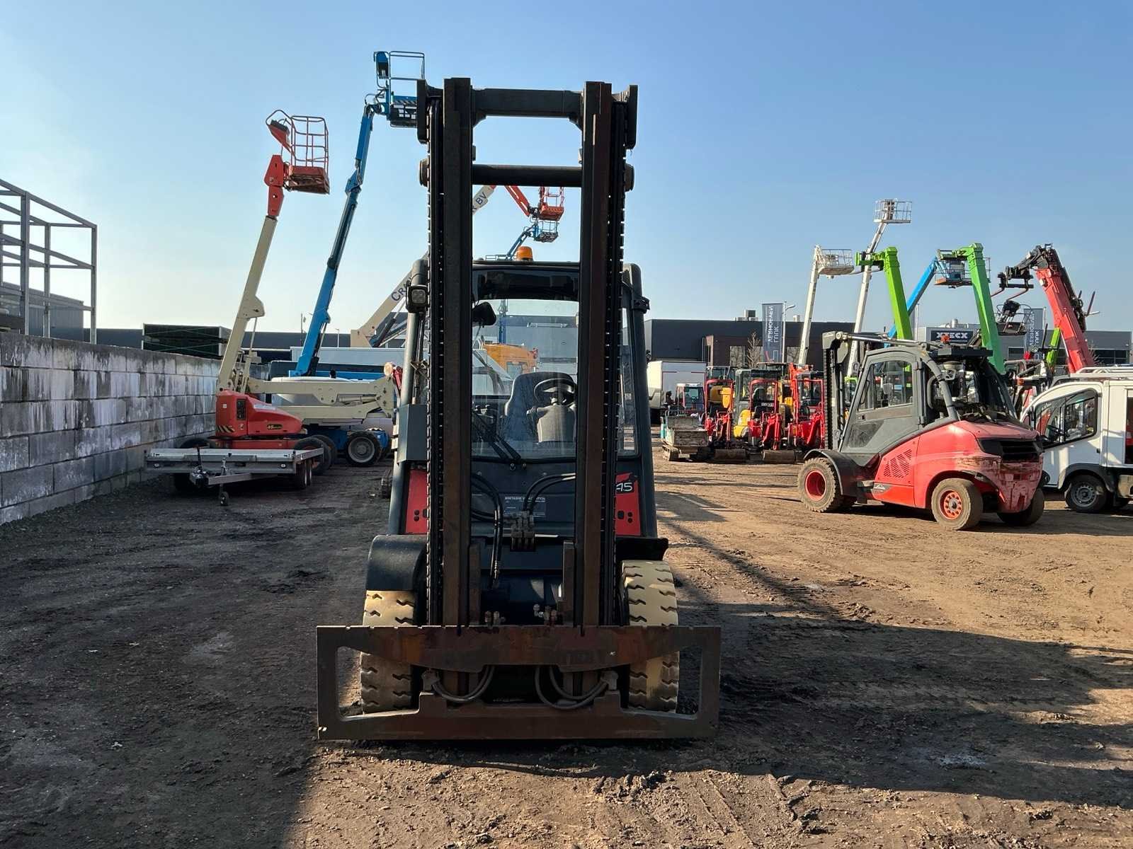 Lepelbord 1750 mm, 3+4 functie voorbereid, werkverlichting, trekoog, max hefhoogte 5000mm, max hefvermogen 4500 kg Merk: Linde Type: H45D-01 Bouwjaar: 2010 Serienummer: H2X394A02121 Brandstof: Diesel Mast: Duplex Soort band: Volrubber banden Aantal wielen: 4 Afgelezen urenstand: 14999.7 Eigen gewicht: 6970kg Hefvermogen: 4500kg Max. hefhoogte: 5000mm Vol rubber banden: true Minimale doorrijhoogte: 3000mm Totale afmeting L: 3100mm Totale afmeting Breedte: 1750mm Totale afmeting Hoogte: 2950mm