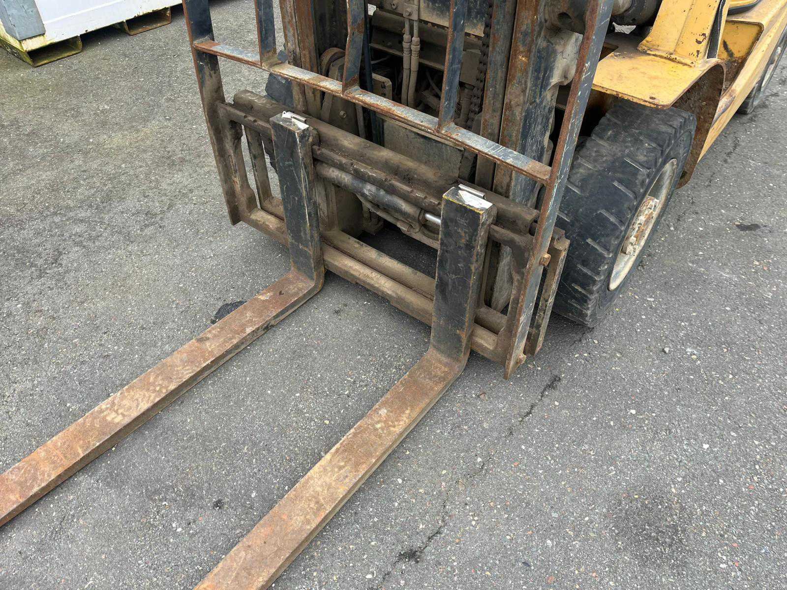 Werking onbekend, sleutel ontbreekt, max hefvermogen 2500kg Merk: Caterpillar Type: 2500kg Brandstof: LPG Aantal wielen: 4 Afgelezen urenstand: 6650 Eigen gewicht: 4060kg Hefvermogen: 2500kg Lepellengte: 1000mm Vol rubber banden: true