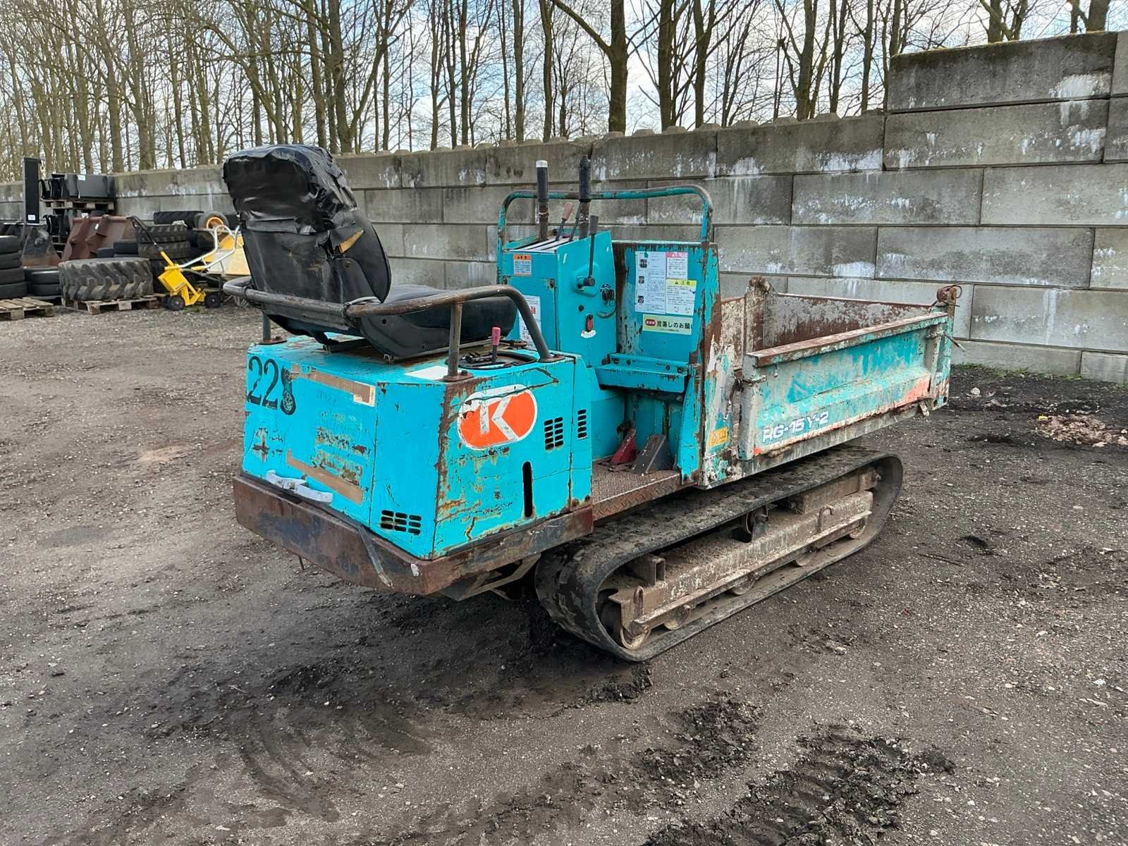 Bak maat 1500x850mm, neerklapbare schotten, laadvermogen 990kg, 3 rijsnelheden Merk: Kubota Type: RG-15Y-2 Serienummer: 51017 Merk motor: Kubota Motorvermogen (kW): 9.5kW Aantal cilinders: 2 Brandstof: Diesel Bedrijfsgewicht: 1855kg Laadvermogen: 990kg Eigen gewicht: 1855kg Totale afmeting L: 2650mm Totale afmeting Breedte: 970mm Totale afmeting Hoogte: 1400mm