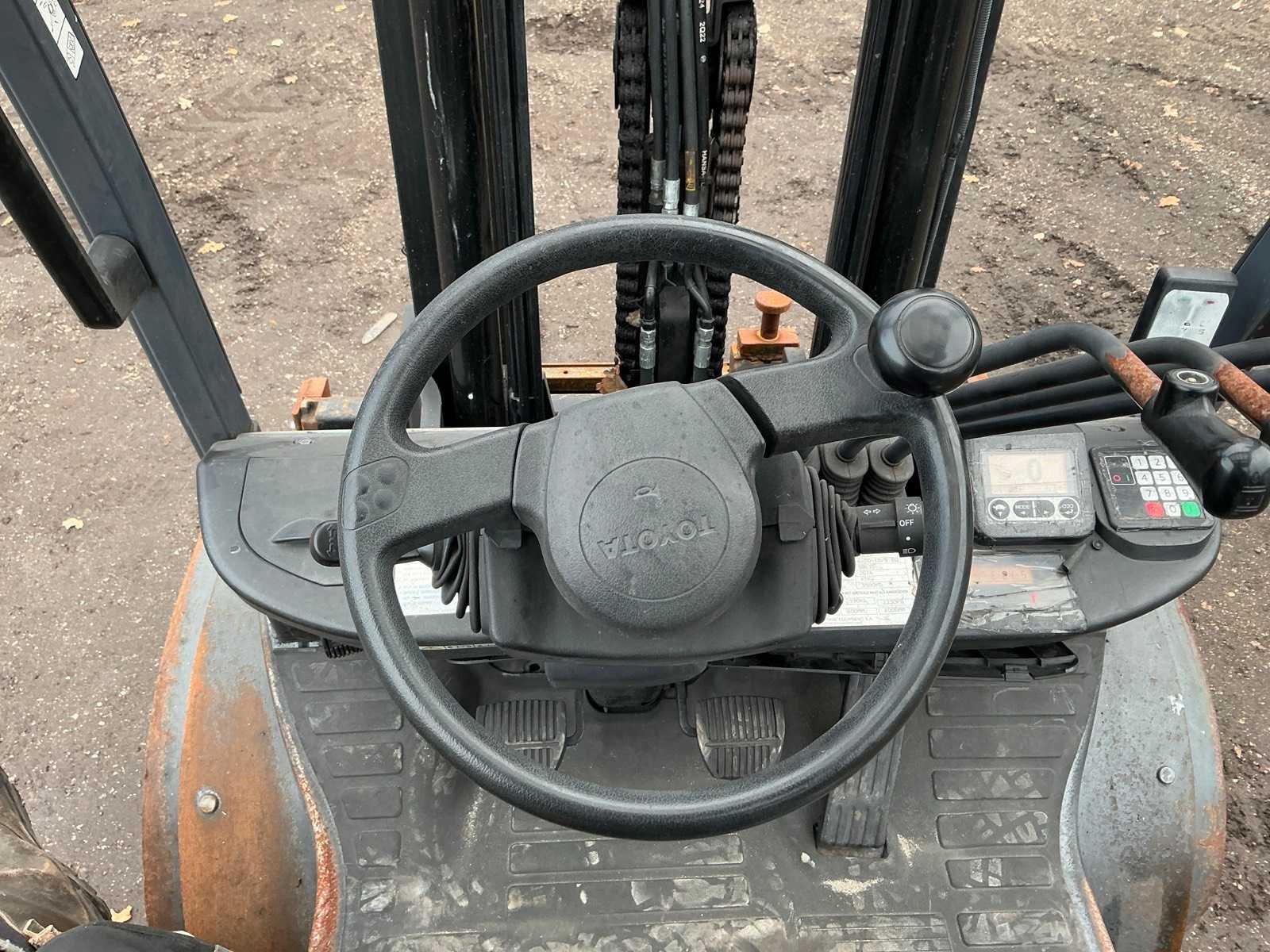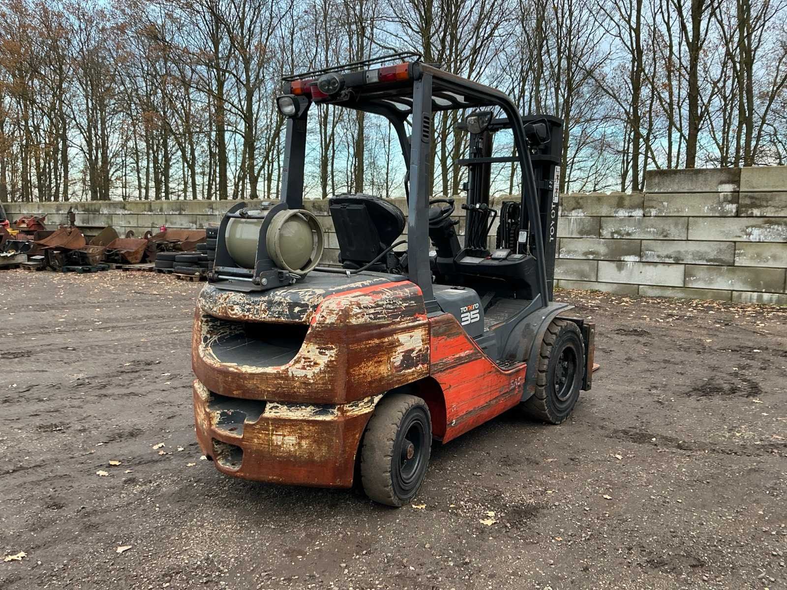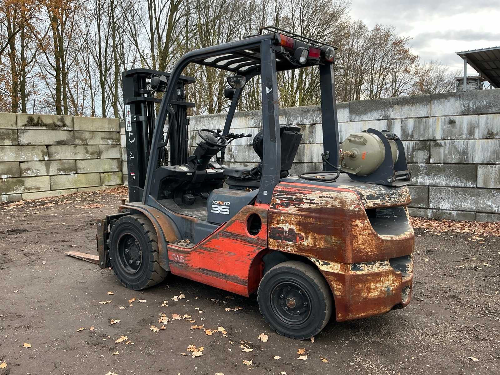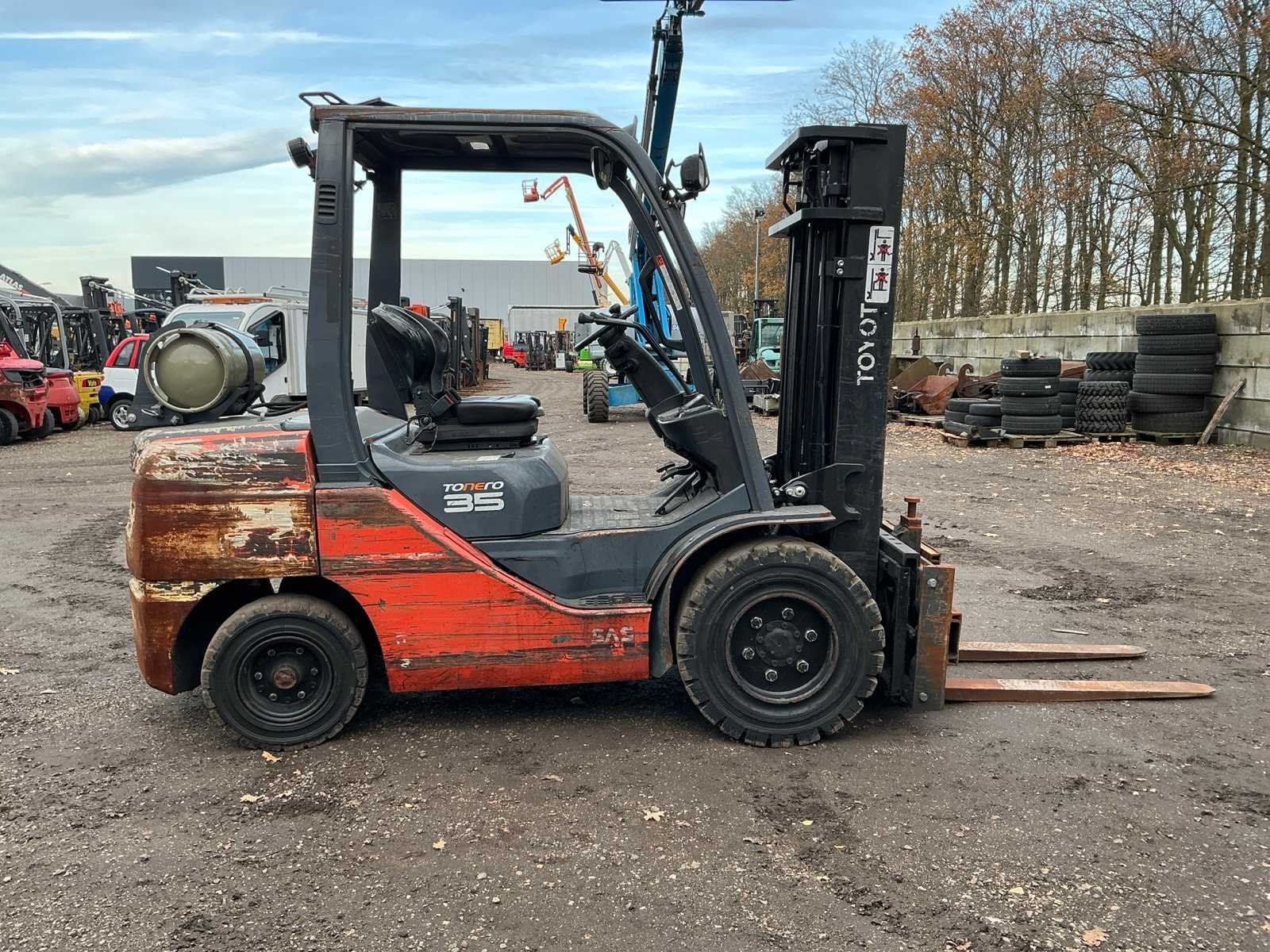 Lepels 1200mm, lepelbord 1200mm, free lift, Side shift, triplex mast, werkverlichting trekoog, max hefhoogte 3000mm, max hefvermogen 3500kg Merk: Toyota Type: 02-8FGJF35 Bouwjaar: 2016 Serienummer: 8FGJF3560976 Brandstof: LPG Mast: Duplex Soort band: Volrubber banden Aantal wielen: 4 Afgelezen urenstand: 10927 Free-lift: true Side-shift: true Hydraulisch verstelbare lepels: true Triple mast: true Eigen gewicht: 5080kg Hefvermogen: 3500kg Lepellengte: 1200mm Max. hefhoogte: 3000mm Vol rubber banden: true Minimale doorrijhoogte: 2200mm Totale afmeting L: 4150mm Totale afmeting Breedte: 1270mm Totale afmeting Hoogte: 2200mm LPG: true