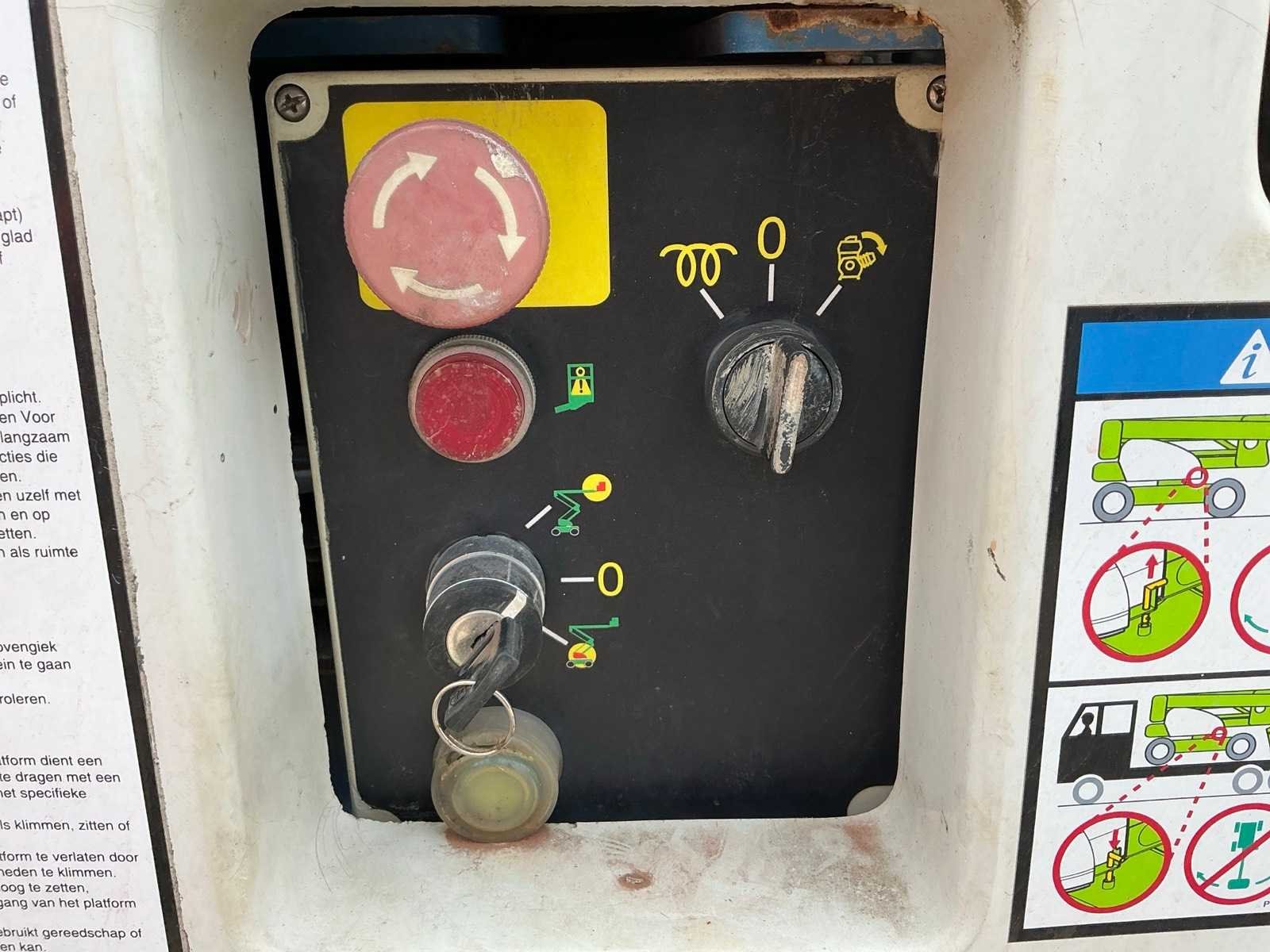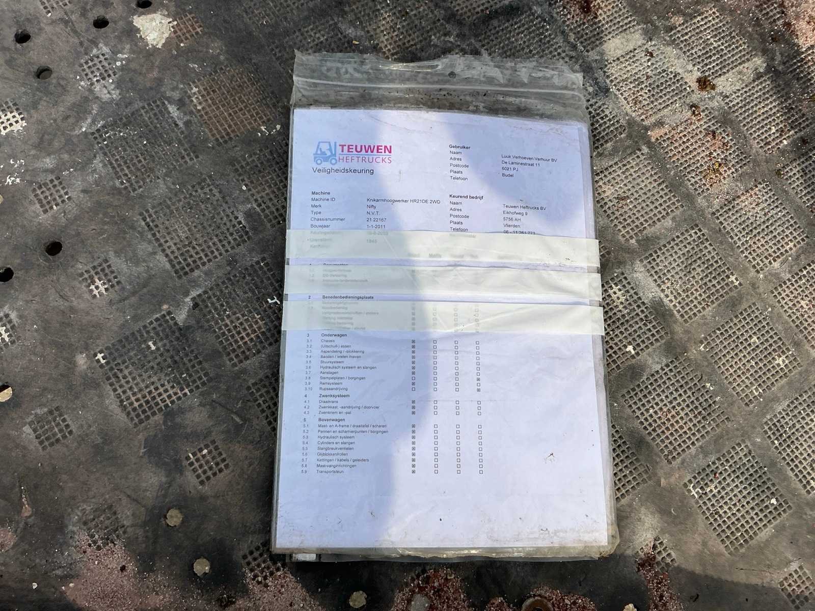 Let op; stickers worden verwijderd bij verkoop, 4WD, asstabilisatie, roterende opbouw, roterende werkbak, 3 delige telescoop mast, ingebouwde lader, 48V accupakket, max hefhoogte 20800mm, max hefvermogen 225kg Merk: Nifty Type: HR21 hybride Bouwjaar: 2011 Serienummer: 21 22167 Diesel: true Elektrisch: true Knikarm hoogwerker: true Werkhoogte: 20800mm Horizontale rijkwijdte: 13000mm Plateau afm. l: 850mm Plateau afm. b: 1760mm Platform capaciteit: 225kg Afgelezen urenstand: 2045 Eigen gewicht: 6660kg Totale afmeting L: 6350mm Totale afmeting Breedte: 2270mm Totale afmeting Hoogte: 2200mm