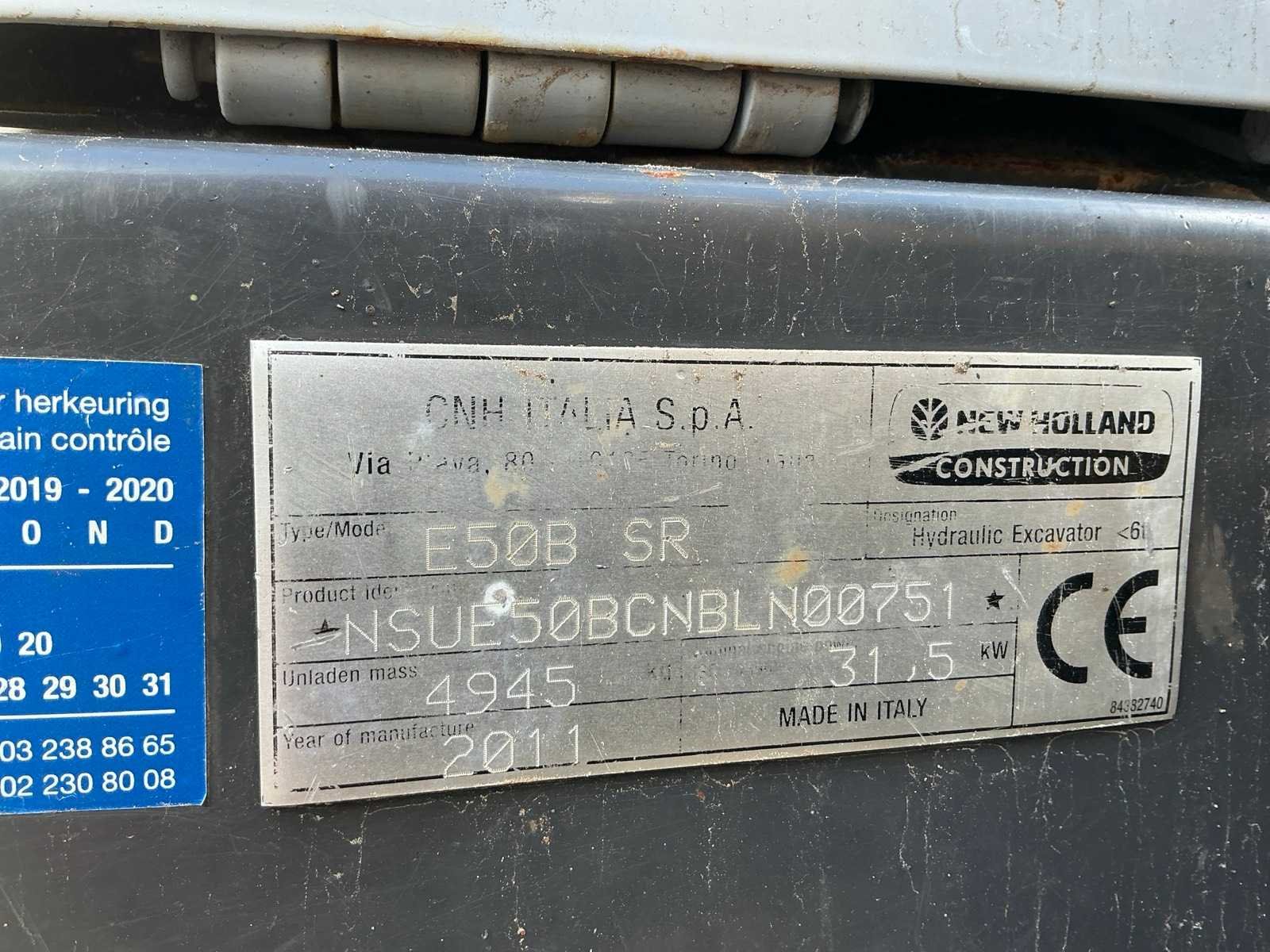 Let op accu slecht, dient opgestart te worden, 2e rijsnelheid werkt niet, 3e+4e functie voorbereid, werkverlichting, blad 1960mm, auto idle, verwarming, radio, Merk: New Holland Type: E50B SR Bouwjaar: 2011 Serienummer: NSUE50BCNBLN00751 Merk motor: Yanmar Motorvermogen (kW): 31.5kW Aantal cilinders: 4 Brandstof: Diesel Bedrijfsgewicht: 4945kg Rups breedte: 400mm Cabine: true Afgelezen urenstand: 6054 Eigen gewicht: 4945kg Totale afmeting L: 5200mm Totale afmeting Breedte: 1960mm Totale afmeting Hoogte: 2600mm