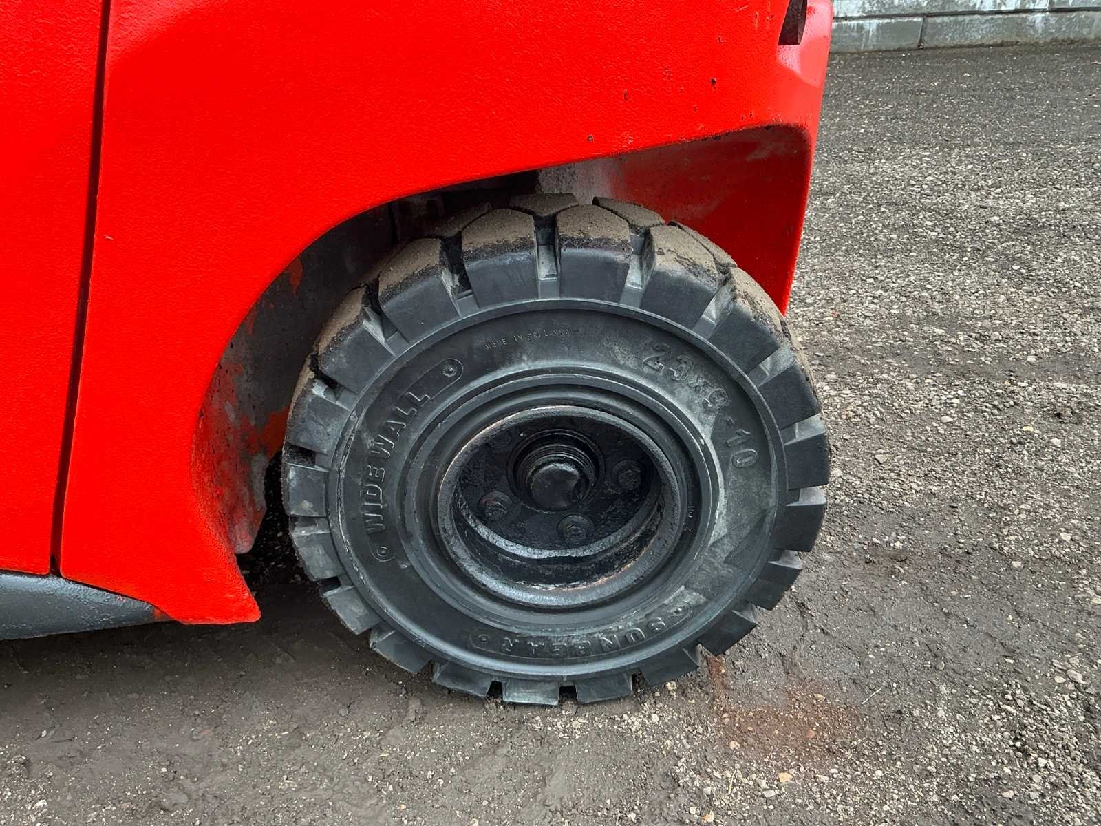 Lepels 1400mm, lepelbord met lastrek 1100mm, triplex mast, free lift, side shift, trekoog met pin 25mm, werkverlichting, max hefhoogte 4500mm, max hefvermogen 2000kg Merk: Linde Type: H20D-01/600 Bouwjaar: 2020 Serienummer: H21202X04142 Brandstof: Diesel Mast: Triple Soort band: Volrubber banden Aantal wielen: 4 Afgelezen urenstand: 2587 Free-lift: true Side-shift: true Triple mast: true Eigen gewicht: 4050kg Hefvermogen: 2000kg Lepellengte: 1400mm Max. hefhoogte: 4500mm Vol rubber banden: true Minimale doorrijhoogte: 2300mm Totale afmeting L: 4150mm Totale afmeting Breedte: 1200mm Totale afmeting Hoogte: 2200mm Diesel: true