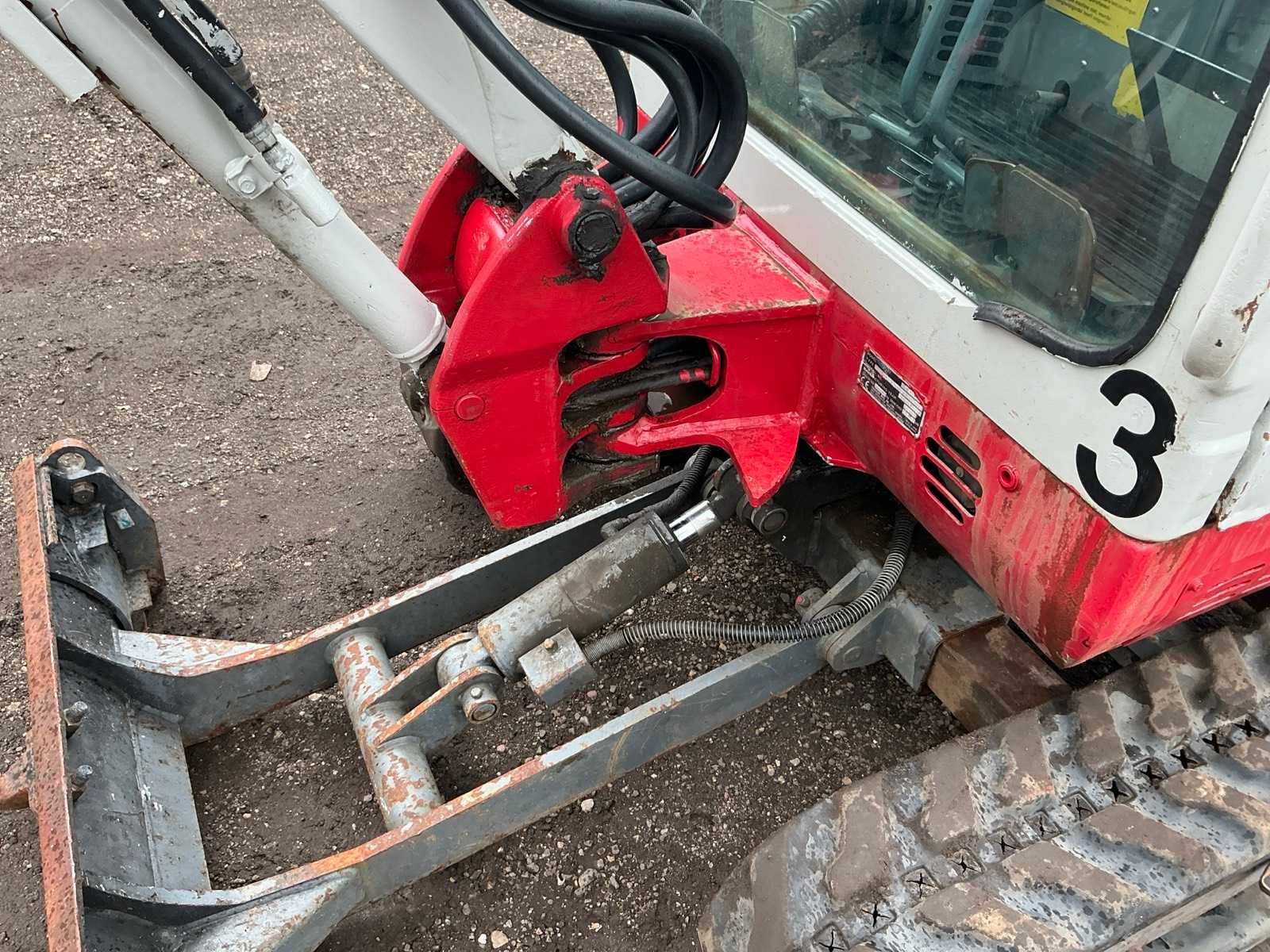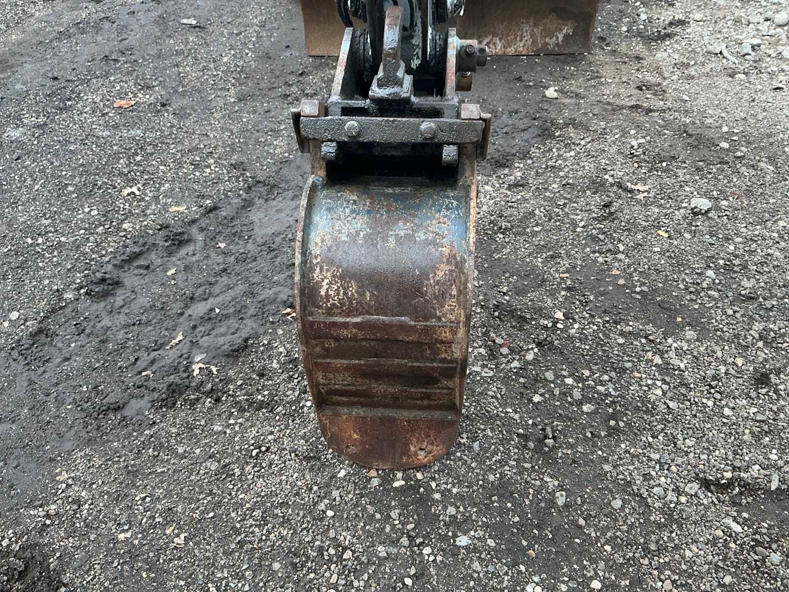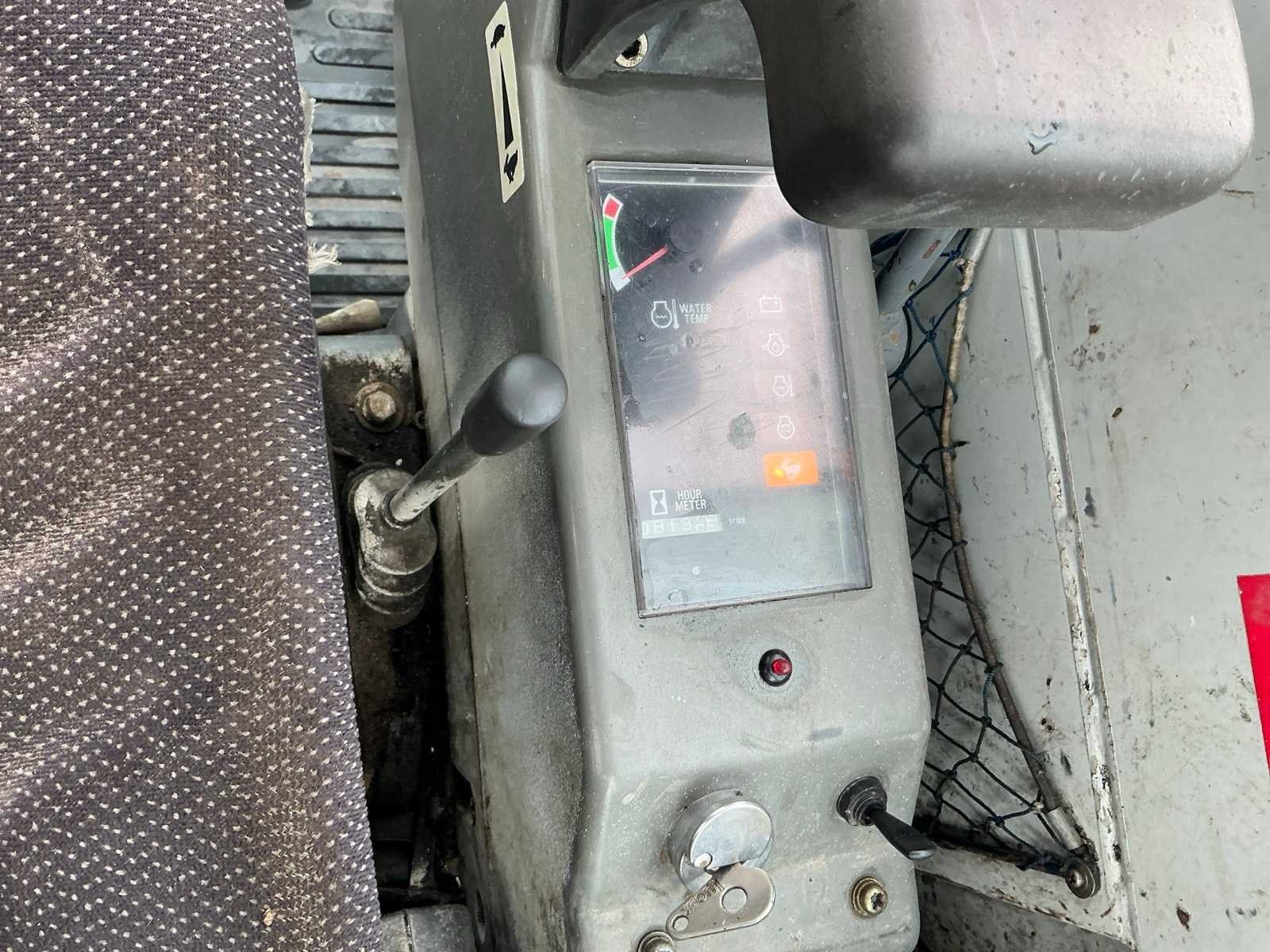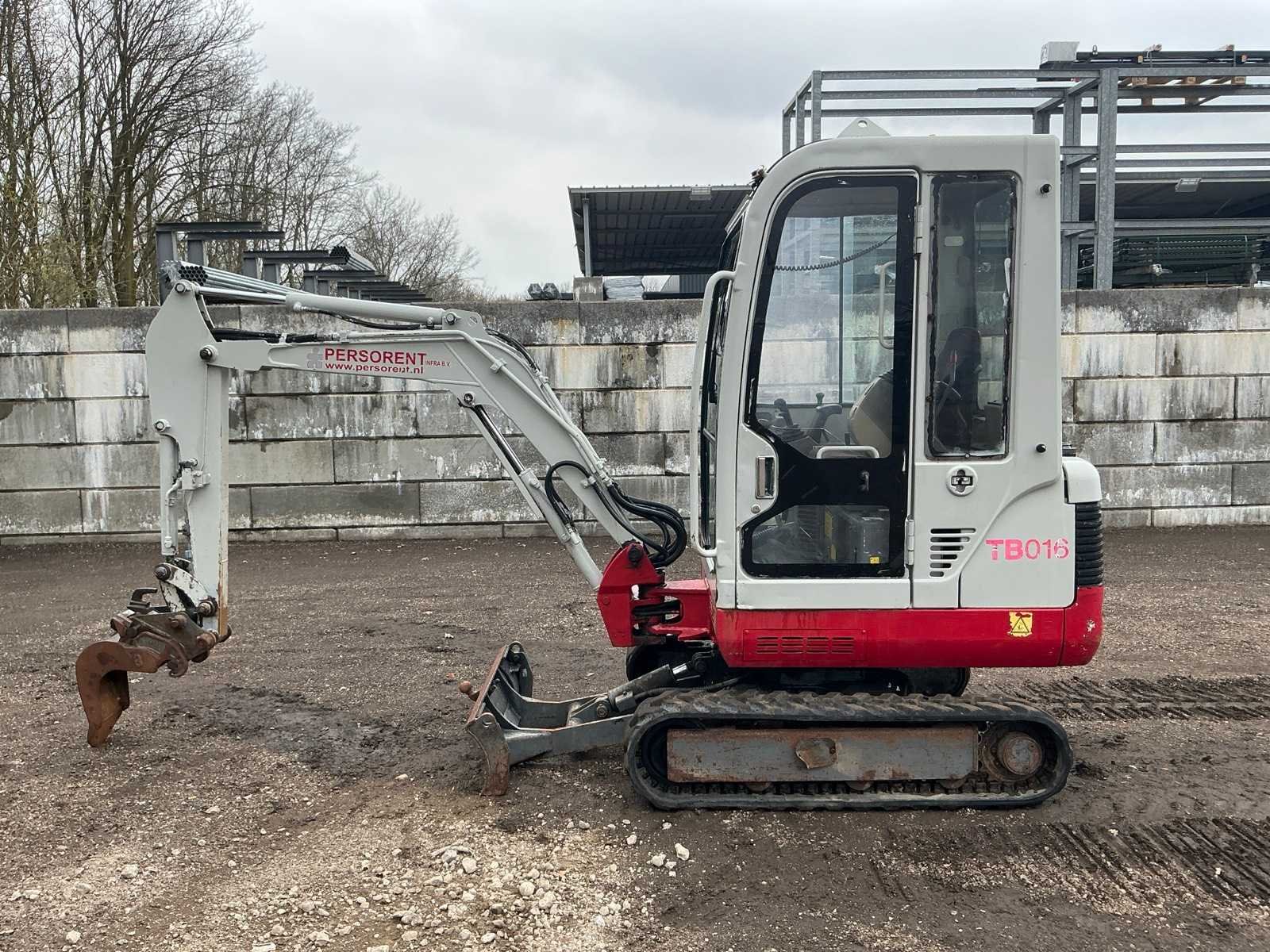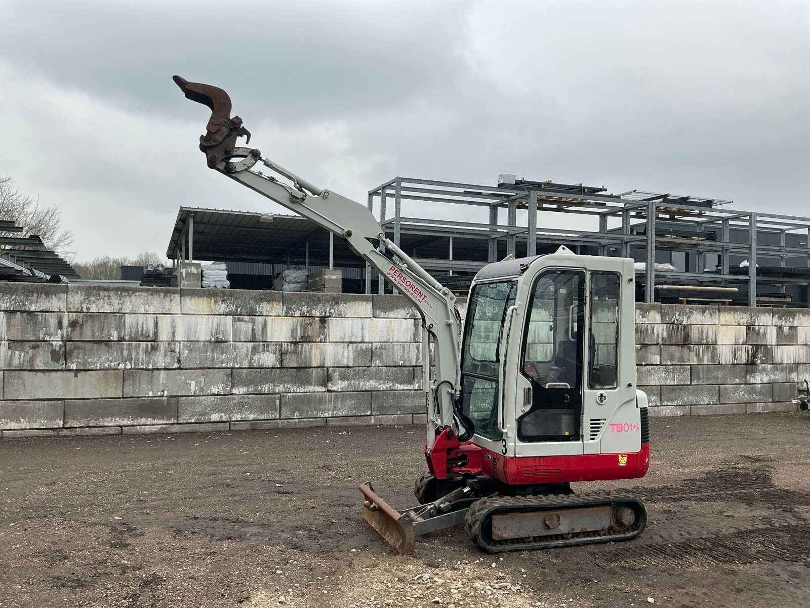 Banaan bak 230mm, hydraulische wissel, 3e functie voorbereid, blad 980mm met trekhaak , verstelbaar rijwerk 1000/1300mm, 2e rijsnelheid, verwarming, radio, Merk: Takeuchi Type: TB016 Bouwjaar: 2012 Serienummer: 116114390 Merk motor: Yanmar Motorvermogen (kW): 10.3kW Aantal cilinders: 3 Brandstof: Diesel Bedrijfsgewicht: 1770kg Inclusief graafbak: Yes Graafbak afm. b: 230mm Rups breedte: 230mm Afgelezen urenstand: 8137 Eigen gewicht: 1770kg Totale afmeting L: 3500mm Totale afmeting Breedte: 1300mm Totale afmeting Hoogte: 2400mm