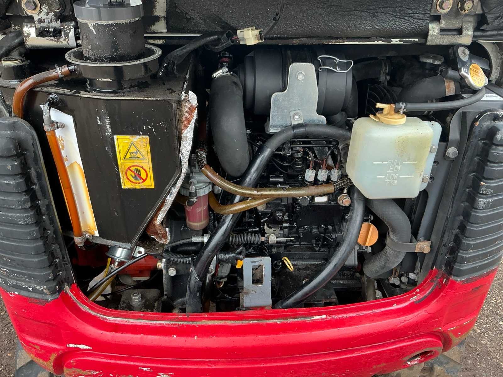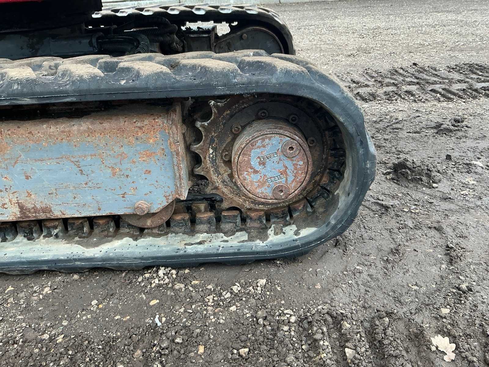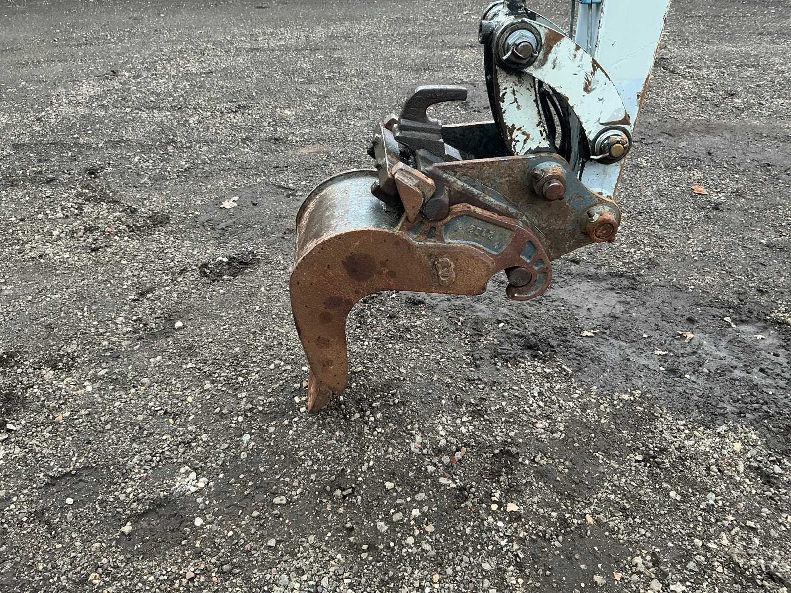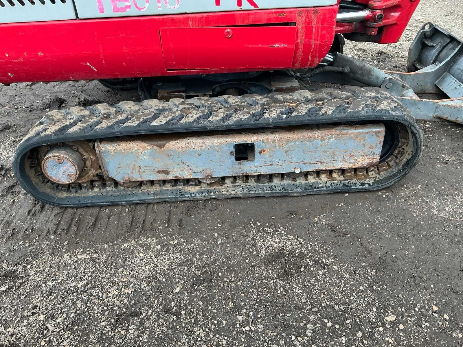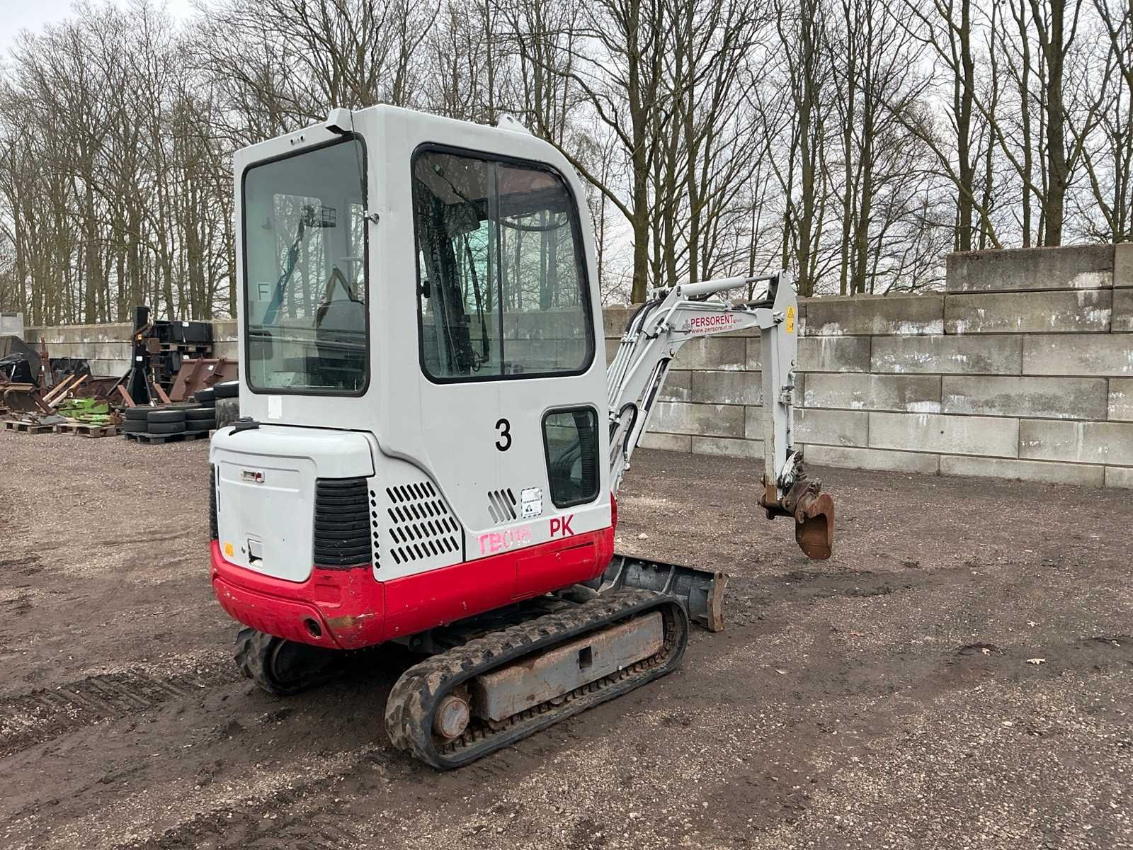 Banaan bak 230mm, hydraulische wissel, 3e functie voorbereid, blad 980mm met trekhaak , verstelbaar rijwerk 1000/1300mm, 2e rijsnelheid, verwarming, radio, Merk: Takeuchi Type: TB016 Bouwjaar: 2012 Serienummer: 116114390 Merk motor: Yanmar Motorvermogen (kW): 10.3kW Aantal cilinders: 3 Brandstof: Diesel Bedrijfsgewicht: 1770kg Inclusief graafbak: Yes Graafbak afm. b: 230mm Rups breedte: 230mm Afgelezen urenstand: 8137 Eigen gewicht: 1770kg Totale afmeting L: 3500mm Totale afmeting Breedte: 1300mm Totale afmeting Hoogte: 2400mm