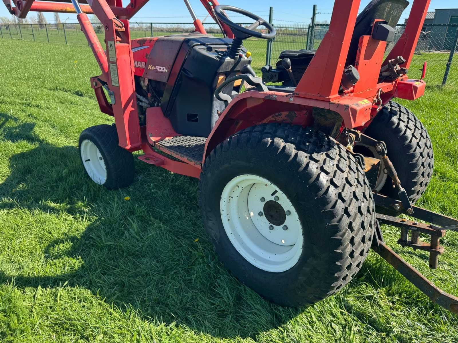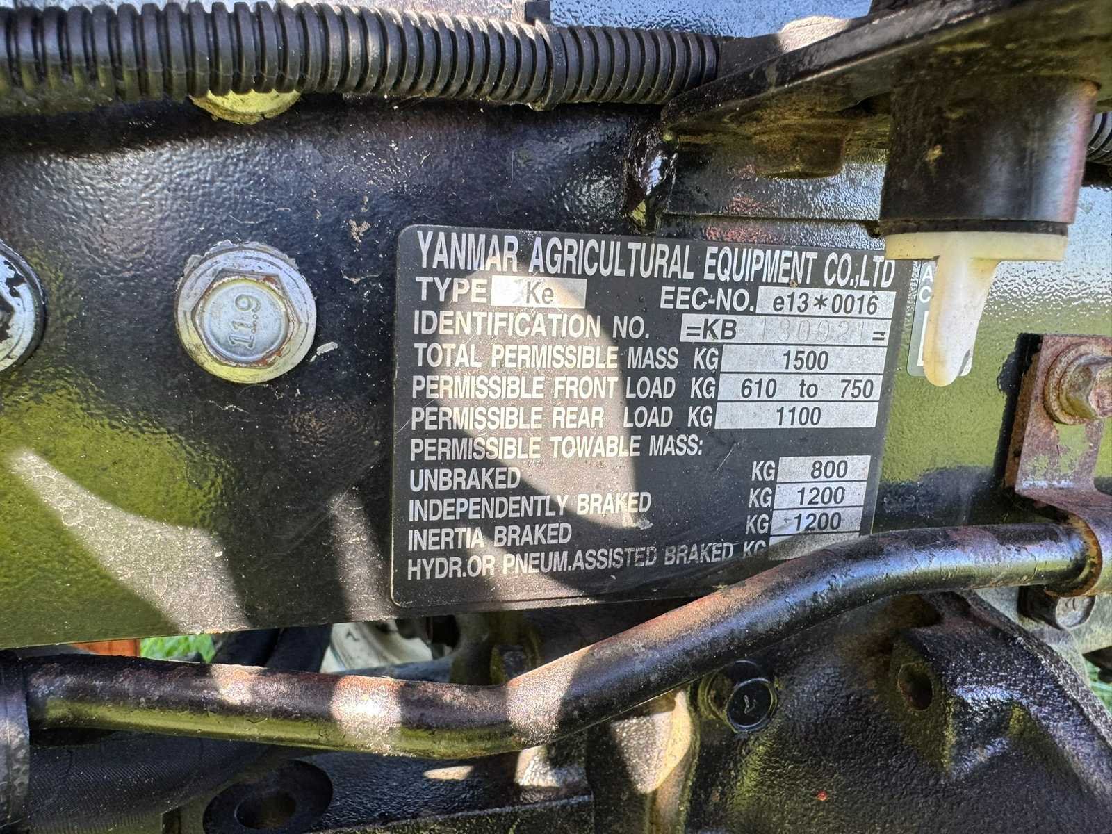 Frontlader, dichte bak, aftakas, 3 punt hef, hydrostaat, 7 polige stekker, neerklapbare beugel Merk: Yanmar Type: KE 200H Serienummer: 180921 Motorvermogen (kW): 16kW Afgelezen urenstand: 2486 Versnellingsbaktype: Hydrostaat Voorlader: true Chassisnummer: 180921
