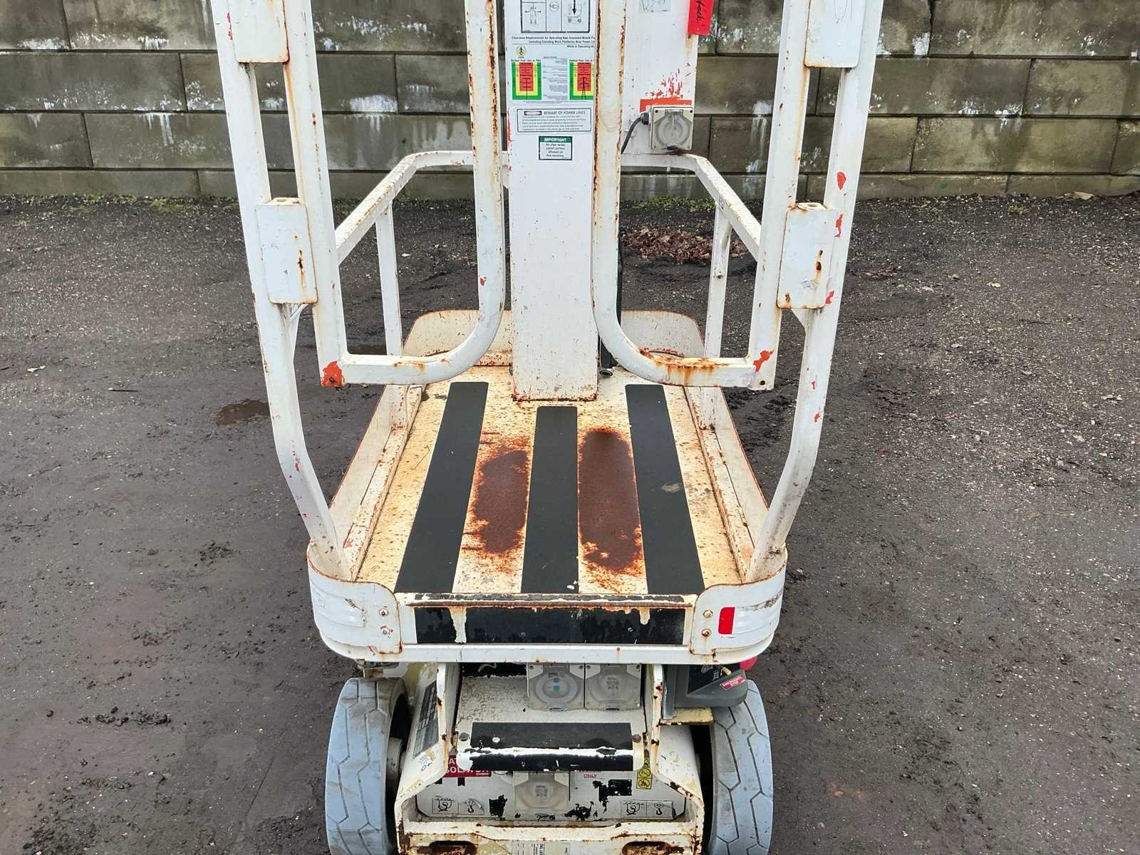 Ingebouwde lader, 110V stekker, max hefhoogte 3660mm, max hefvermogen 230kg Merk: Jlg Type: 1230ES Bouwjaar: 2013 Serienummer: 0200215905 Elektrisch: true Masthoogwerker: true Werkhoogte: 3660mm Plateau afm. l: 1350mm Plateau afm. b: 750mm Platform capaciteit: 230kg Accu lader: true Afgelezen urenstand: 453 Eigen gewicht: 790kg Totale afmeting L: 1350mm Totale afmeting Breedte: 750mm Totale afmeting Hoogte: 1630mm