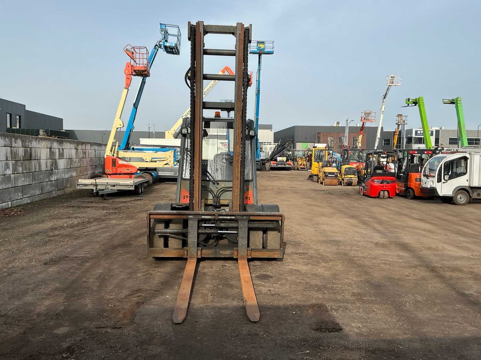Let op; afdekplaat achter ontbreekt, Lepels 2000mm, lepelbord 2000mm, duplex mast, side shift, lepel spreider, dubbel wiel voor, werkverlichting, trekoog met pin 25mm, verwarming, max hefhoogte 5460mm, max hefvermogen 5000kg Merk: Linde Type: H50D-02 Bouwjaar: 2015 Serienummer: H2X394F00984 Brandstof: Diesel Mast: Duplex Soort band: Volrubber banden Aantal wielen: 4 Afgelezen urenstand: 12815 Side-shift: true Hydraulisch verstelbare lepels: true Duplex mast: true Eigen gewicht: 7565kg Hefvermogen: 5000kg Lepellengte: 2000mm Max. hefhoogte: 5460mm Vol rubber banden: true Minimale doorrijhoogte: 3600mm Totale afmeting L: 5150mm Totale afmeting Breedte: 2030mm Totale afmeting Hoogte: 3520mm