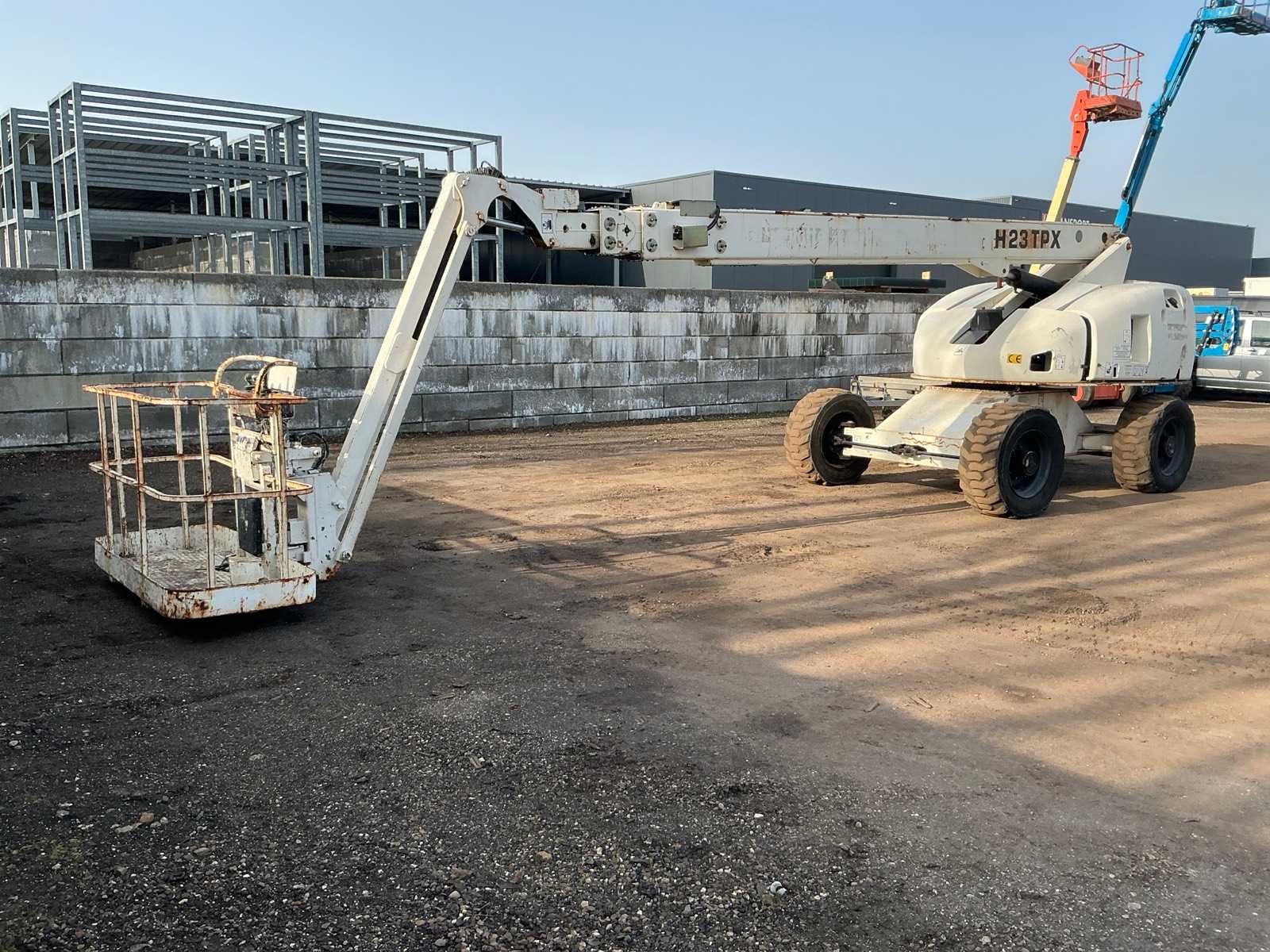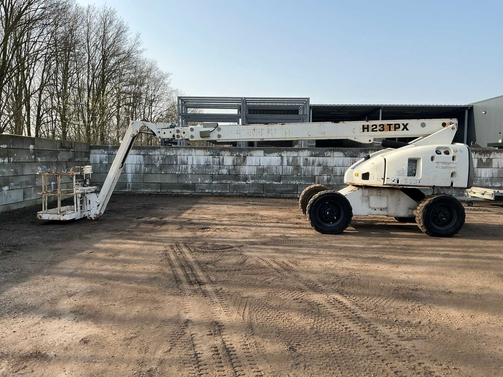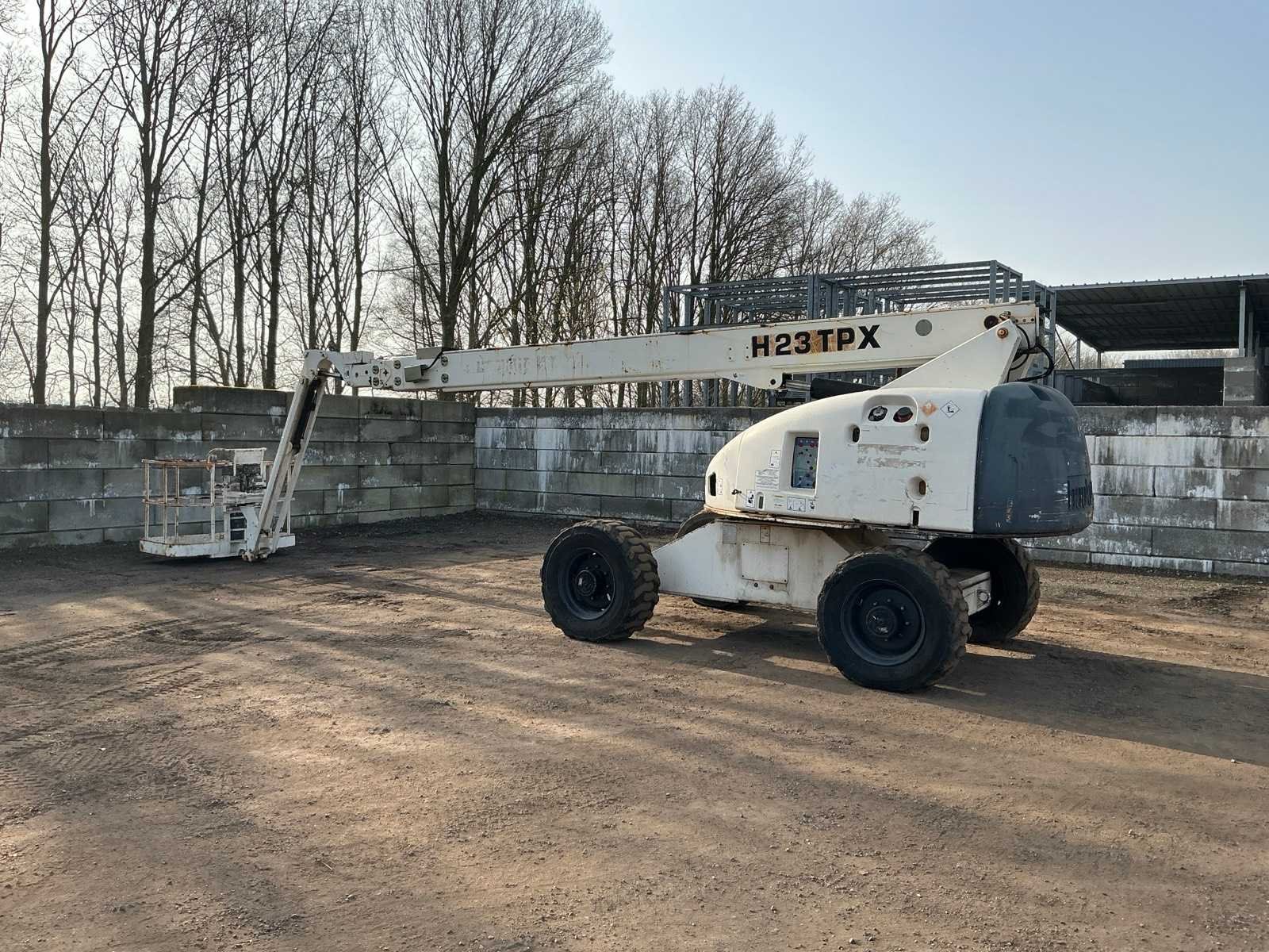 Let op; lekt wat olie op de Jip cilinder, 4WD, asstabilisatie, roterende opbouw, zwenkt niet, roterende werkbak, 3 delige telescopische mast, max hefhoogte 22600mm, max hefvermogen 250kg Merk: Houlotte Type: H23TPX Bouwjaar: 2005 Serienummer: TD103596 Diesel: true Motorvermogen (kW): 32.1kW Telescoop hoogwerker: true Werkhoogte: 22600mm Horizontale rijkwijdte: 19600mm Plateau afm. l: 800mm Plateau afm. b: 1800mm Platform capaciteit: 250kg Afgelezen urenstand: 1032 Eigen gewicht: 13110kg Totale afmeting L: 10600mm Totale afmeting Breedte: 2500mm Totale afmeting Hoogte: 3000mm
