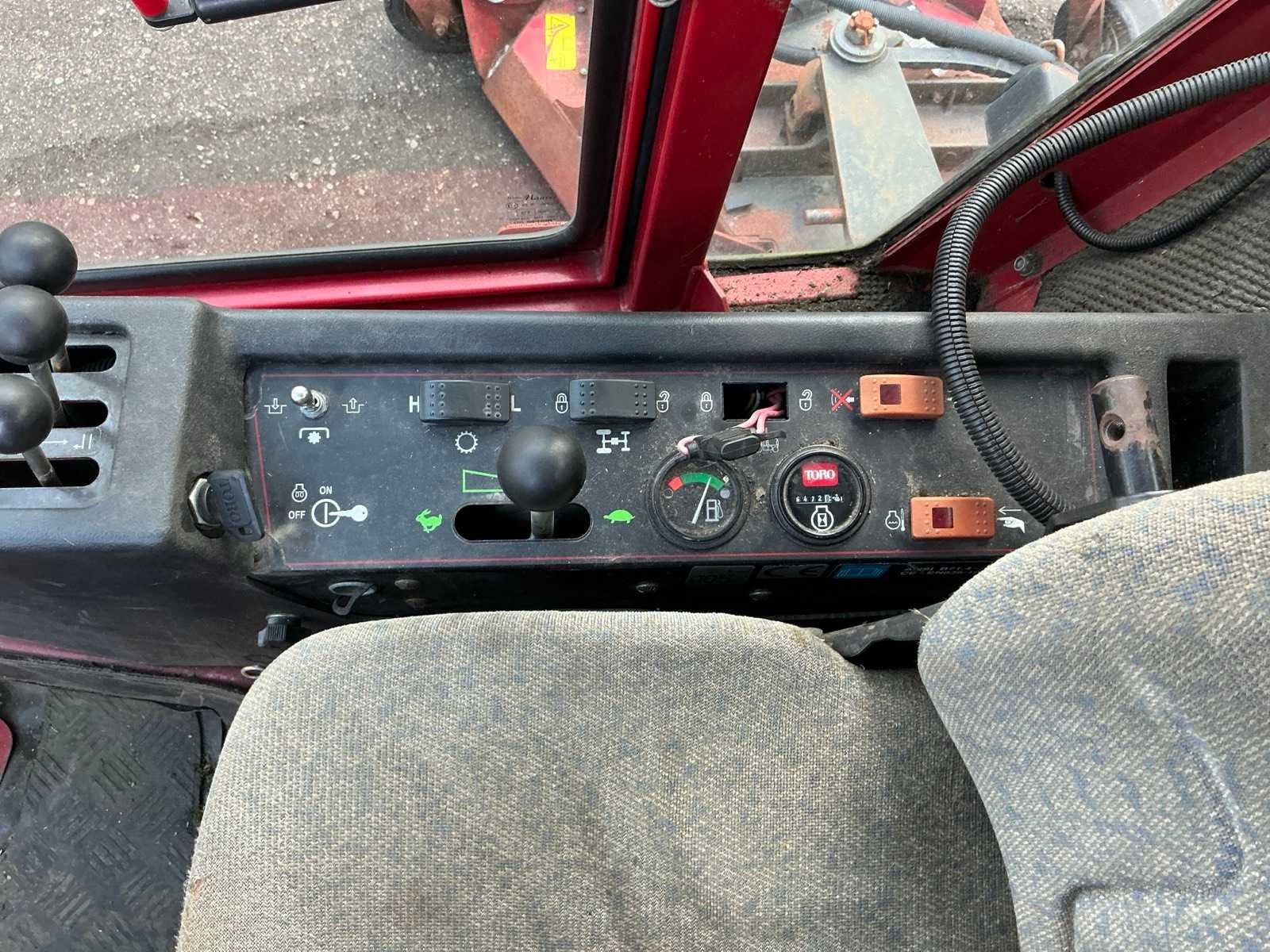 Triple maaidek, Front 1500mm, 2x side 1200mm, hydrostatische aandrijving, werkverlichting, gesloten cabine, radio, verwarming, airco Merk: Toro Type: Groundmaster 4000D Bouwjaar: 2007 Serienummer: 30410-270000820 Werkbreedte: 3900mm Zelfrijdend: true Zitmaaier: true Brandstof: Diesel Motorvermogen (kW): 35kW Eigen gewicht: 1856kg Totale afmeting L: 3500mm Totale afmeting Breedte: 2300mm Totale afmeting Hoogte: 2150mm
