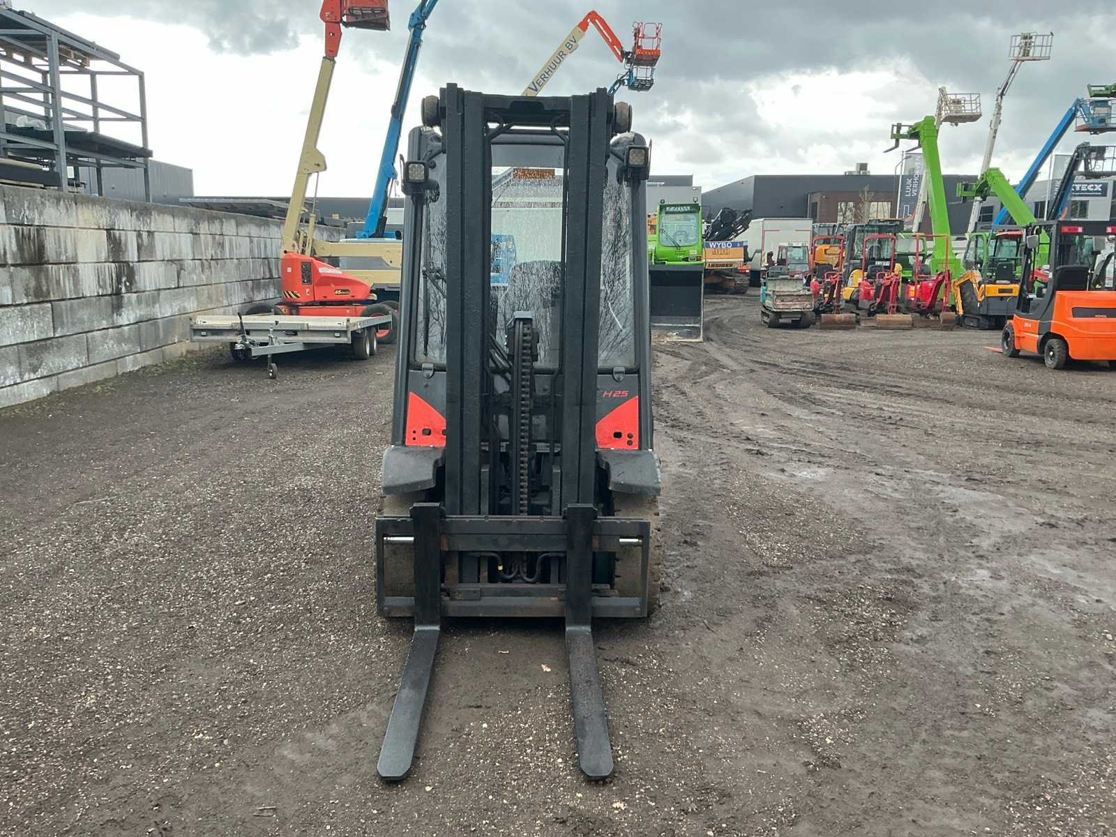Lepels 1000mm, lepelbord 1070mm, triplex mast, side shift, led werkverlichting, trekoog met pin 25mm, Merk: Linde Type: H25D-02 Bouwjaar: 2017 Serienummer: H2X392H01822 Brandstof: Diesel Mast: Triple Soort band: Volrubber banden Aantal wielen: 4 Afgelezen urenstand: 4703 Eigen gewicht: 3885kg Hefvermogen: 2500kg Lepellengte: 1000mm Max. hefhoogte: 4400mm Vol rubber banden: true Minimale doorrijhoogte: 230mm Totale afmeting L: 3700mm Totale afmeting Breedte: 1180mm Totale afmeting Hoogte: 2200mm Diesel: true