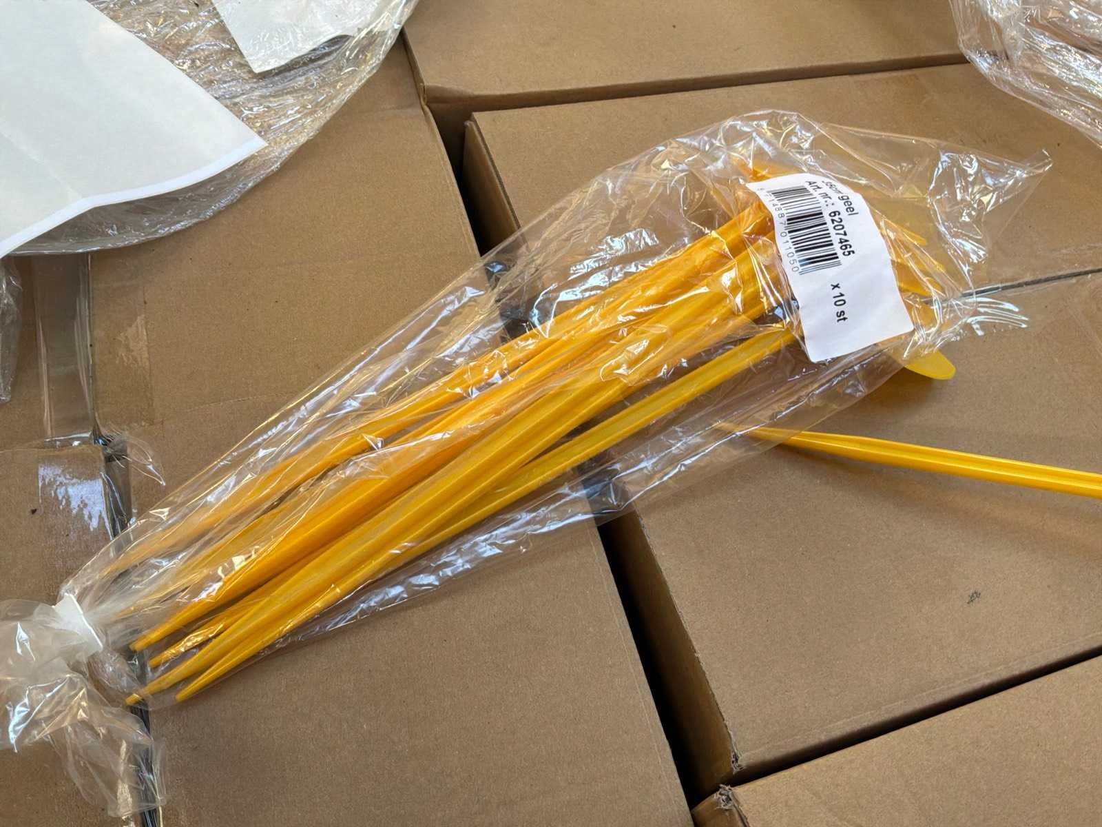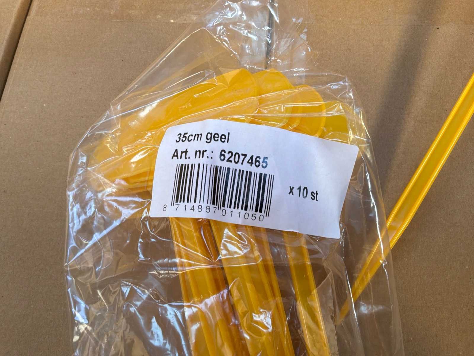 Verpakt per 10 stuks, op 2 pallets. Kleur: Geel Hoogte: 35cm Materiaal: Plastic