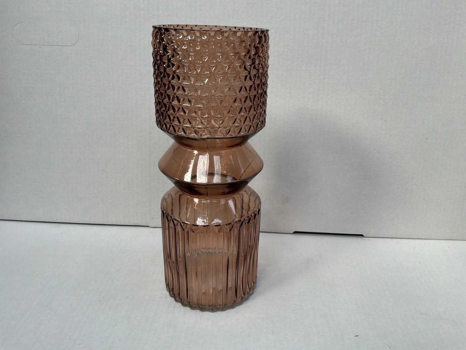 Per 12 stuks verpakt in doos, 22 dozen op pallet. Breedte: 12cm Hoogte: 30cm Materiaal: Bruin glas