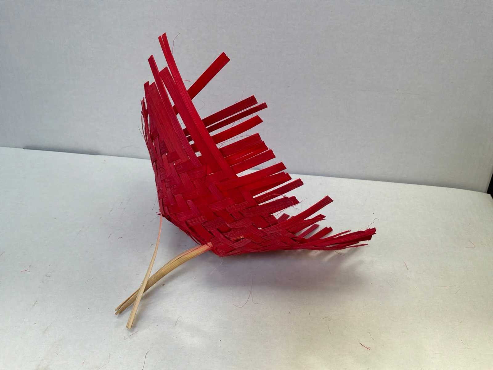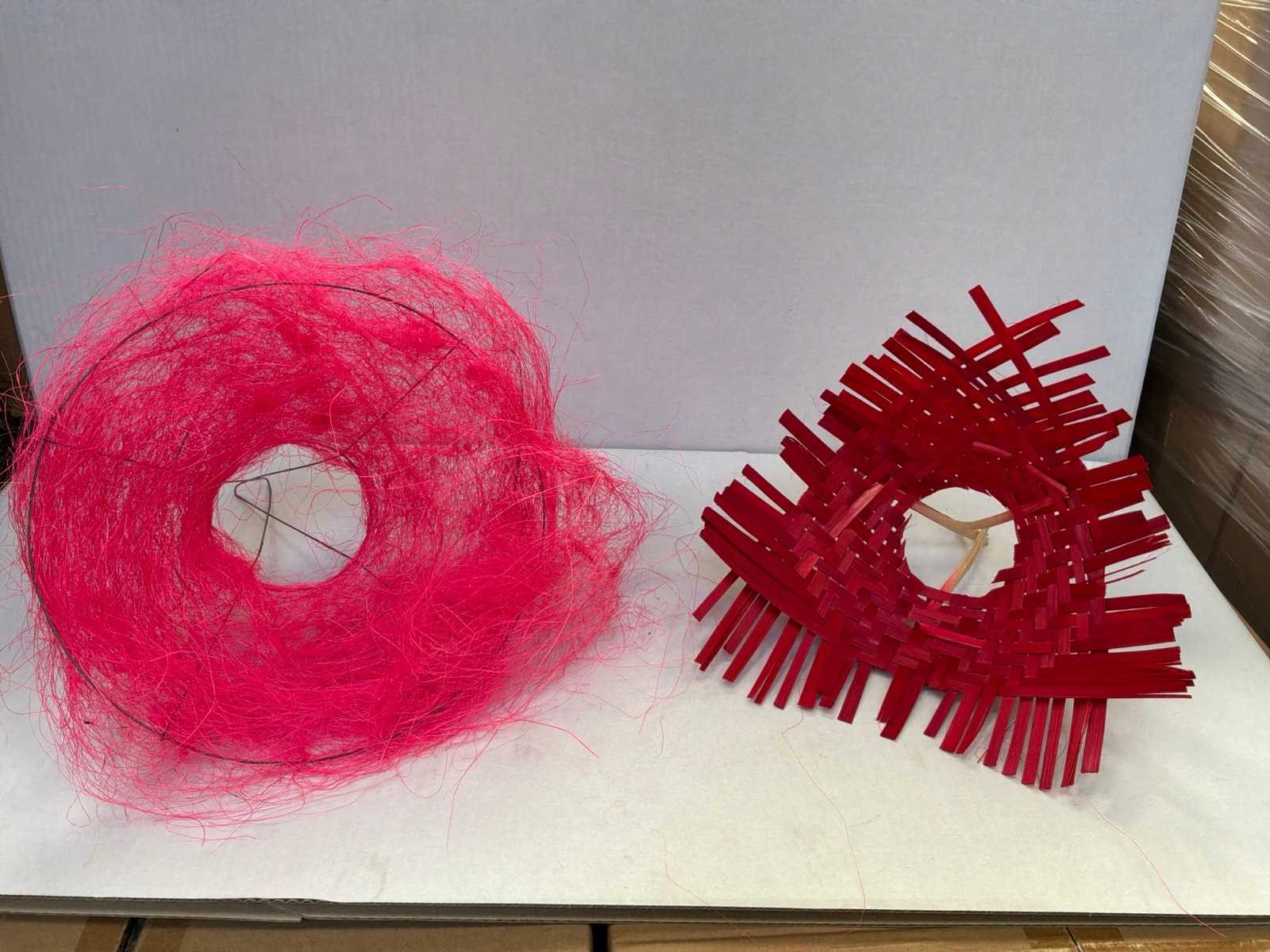 168 stuks gevlochten bamboe, 1500 stuks sisal fuchsia, op 1 pallet. Kleur: Fuchsia / rood Hoogte: 250cm