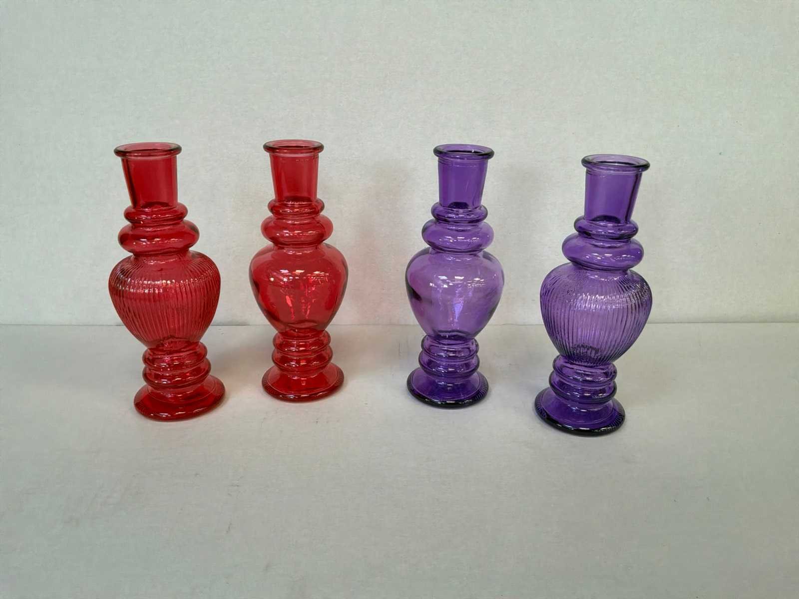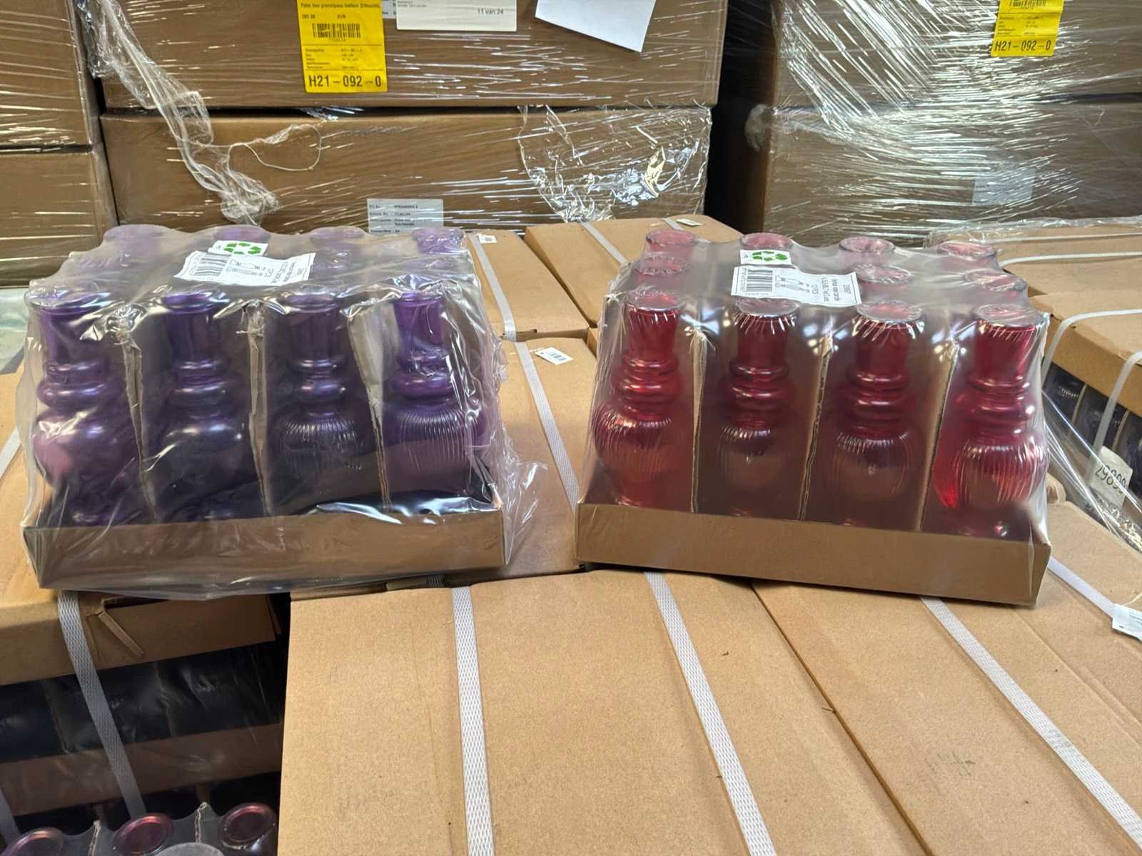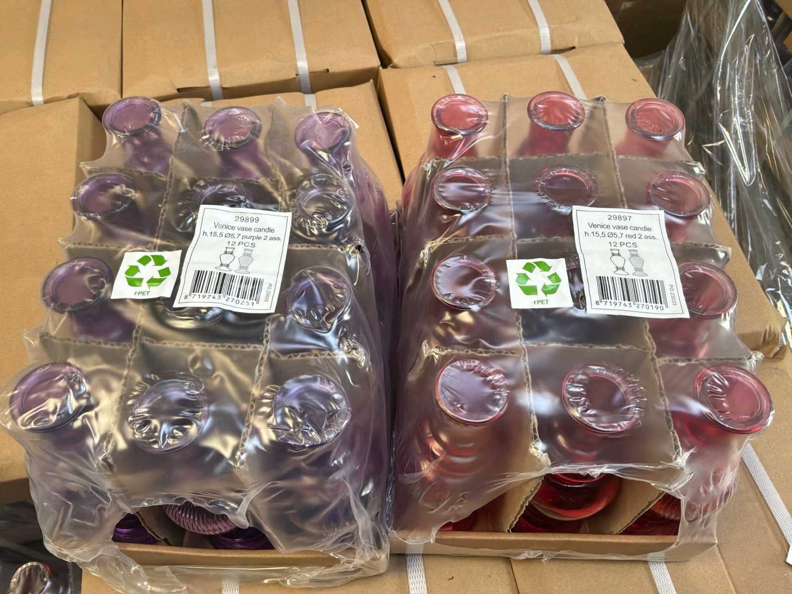 2 verschillende soorten en kleuren, per 12 stuks verpakt, Model: Venice Kleur: Paars / rood Hoogte: 15.5cm Materiaal: Glas