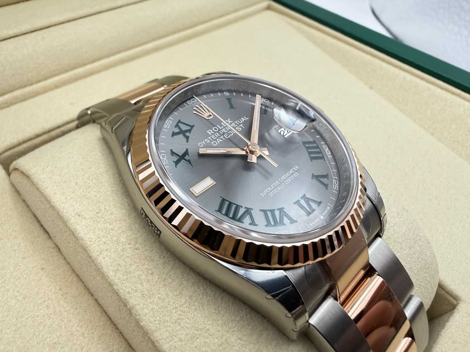 Key Features – Rolex Datejust 36 126231 Wimbledon Dial (Oyster, Unworn 2026) ⌚ Model: Rolex Datejust 36 – Ref. 126231 Year: 2026 Condition: Unworn Case Size: 36 mm Case Material: Oystersteel & 18k Everose Gold (Rolesor) Bezel: 18k Everose Gold fluted bezel Dial: Iconic Wimbledon dial (rhodium with green Roman numerals) Crystal: Scratch-resistant sapphire crystal with Cyclops date magnifier Movement: Rolex Caliber 3235 (automatic, COSC-certified chronometer) Power Reserve: Approx. 70 hours Water Resistance: 100 meters / 330 ft Bracelet: Oyster bracelet (sporty and robust) Clasp: Oysterclasp with Easylink comfort extension Functions: Hours, minutes, seconds, date Bezorgtermijn 14 dagen Merk: Rolex Model: Datejust 36 Bouwjaar: 2026 Referentienummer: 126231 Materiaal kast: Steel / Rose Materiaal horlogeband: Steel / Rose Oyster Fluted Materiaal sluiting: Steel / Rose Wijzerplaat: Wimbledon Kastmaat: 36 MM